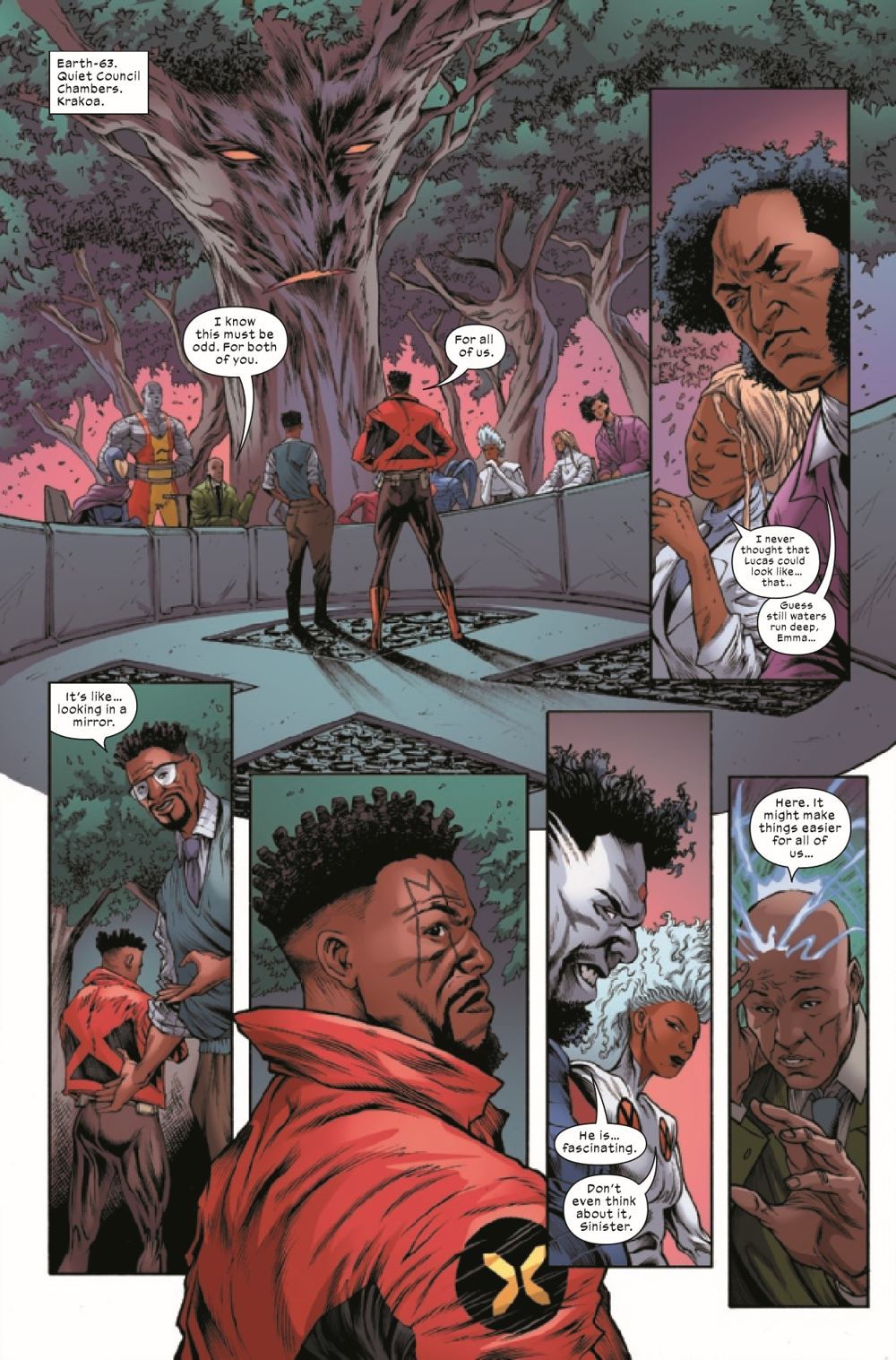 TWO BISHOPS, TWO PASTS — AND ONLY ONE LEADS TO THE FUTURE! • Back on Krakoa, Blightswill is sweeping the island, poisoning mutantkind's sentient paradise. • The trainees Bishop left behind are outnumbered and outpowered. Trapped underground and leaderless, can they band together to save their home, or is Orchis' long game finally about to pay off?