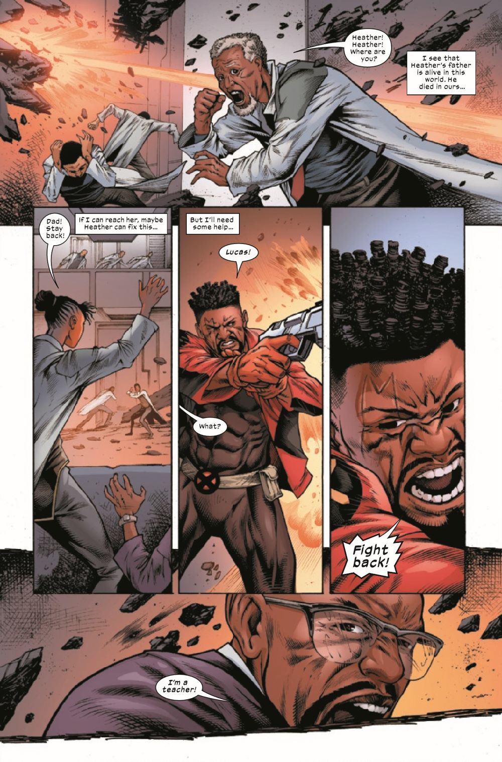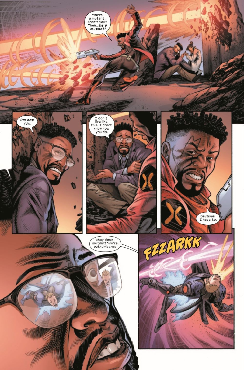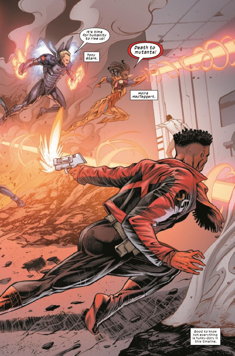 NEW FUTURE…SAME PROBLEMS! When the two Bishops arrive at the Tucker Institute to search for Tempo, they find the facility under attack by the Human Liberation Front - an anti-mutant extremist group made up of this alternate future Earth's versions of MOIRA MacTAGGERT, FEILONG, TONY STARK and SIMON TRASK. When the fight hits a critical point, a familiar face comes to the Bishop's aid. Meanwhile, back on Earth-616, Armor, Surge, Cam Long, Aura Charles and Amass are embroiled in battle against Orchis and the Struckers. Blood will be shed and truths will be revealed in this penultimate issue of BISHOP: WAR COLLEGE!