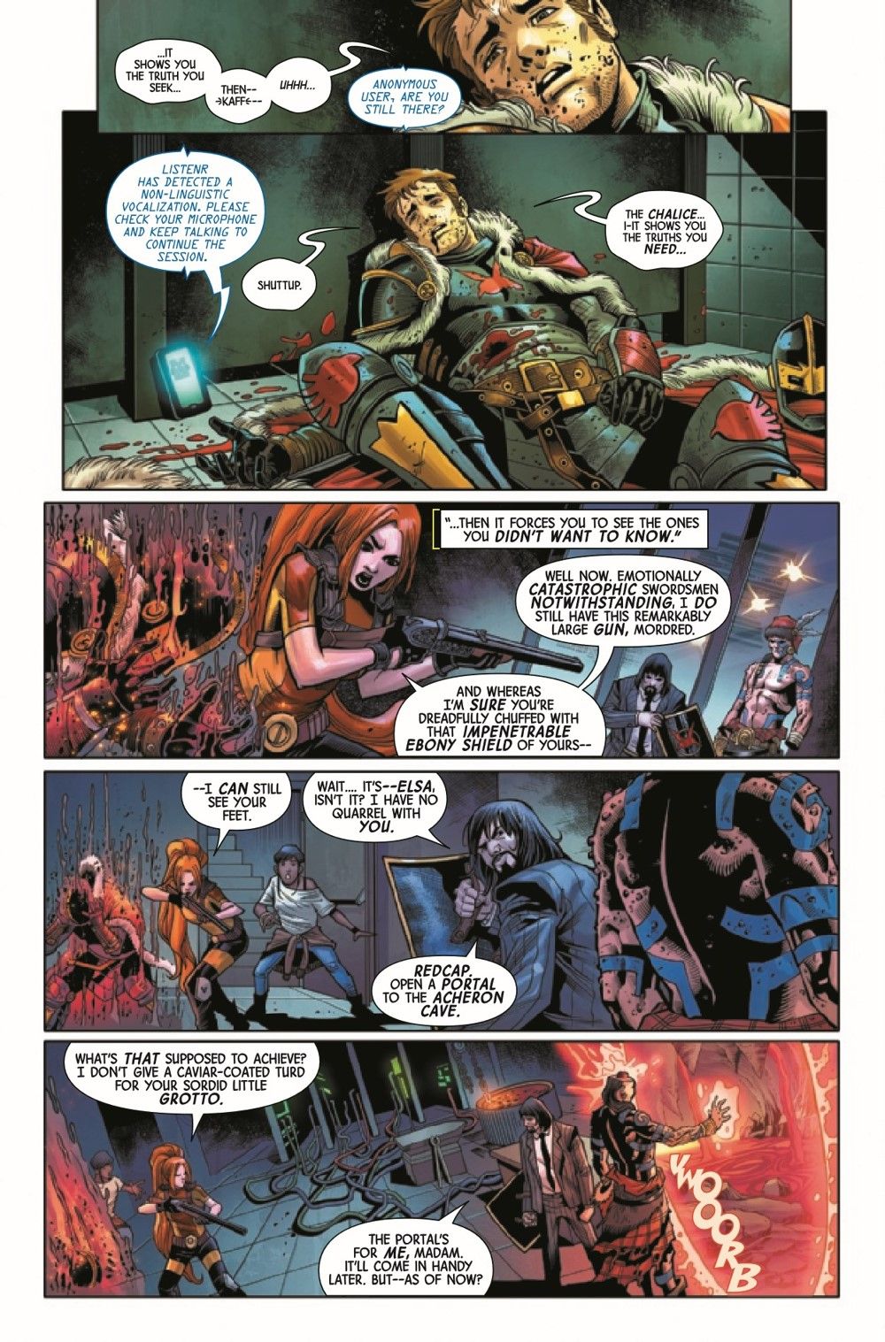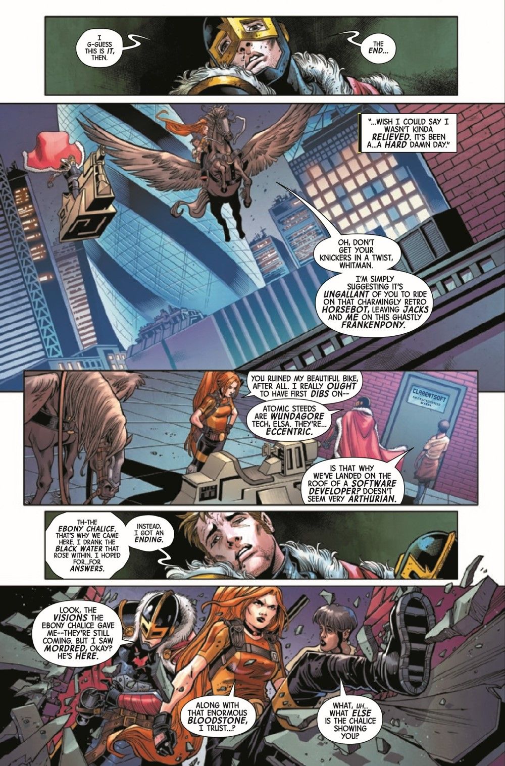 BATTLE WHERE THE BLACK KNIGHT WAS BORN! Dane Whitman wields the magical Ebony Blade as the BLACK KNIGHT! Dane will need to master the EBONY CHALICE as well to stop the murderous new foe. But like the blade, the powers of the chalice come with a terrible cost. Dane, monster hunter ELSA BLOODSTONE and Arthurian scholar JACKS must face the dark truths of the Black Knight's legacy AND the enemy at the very site of the first Black Knight's birth. Does Dane have the strength to finish the fight that began long ago at Camelot by King Arthur, Merlin and Sir Percy?!