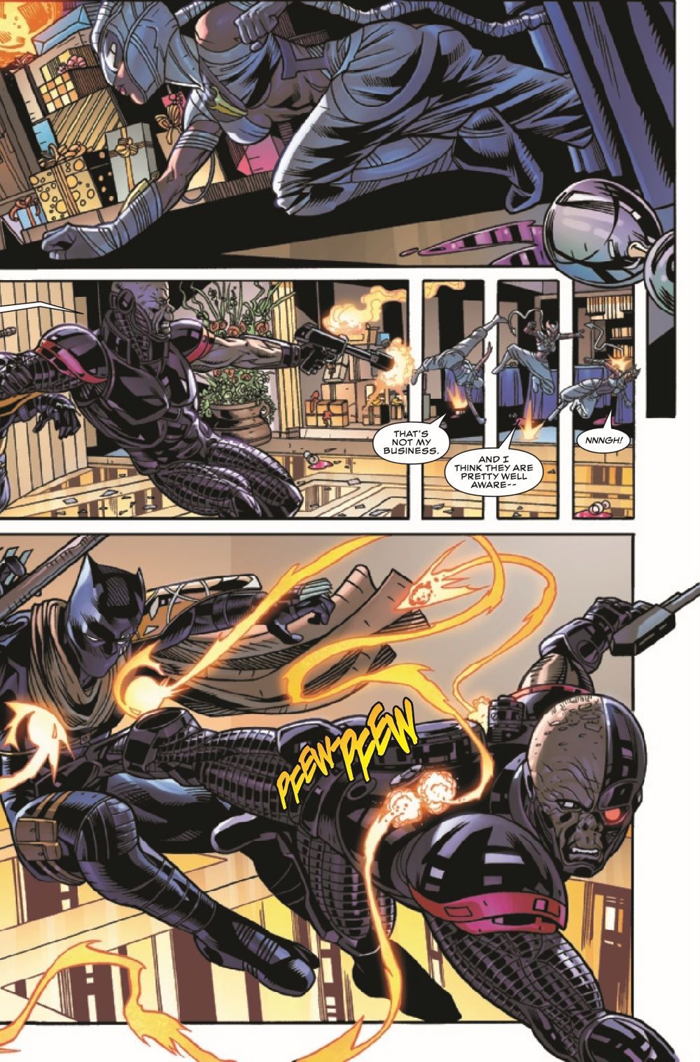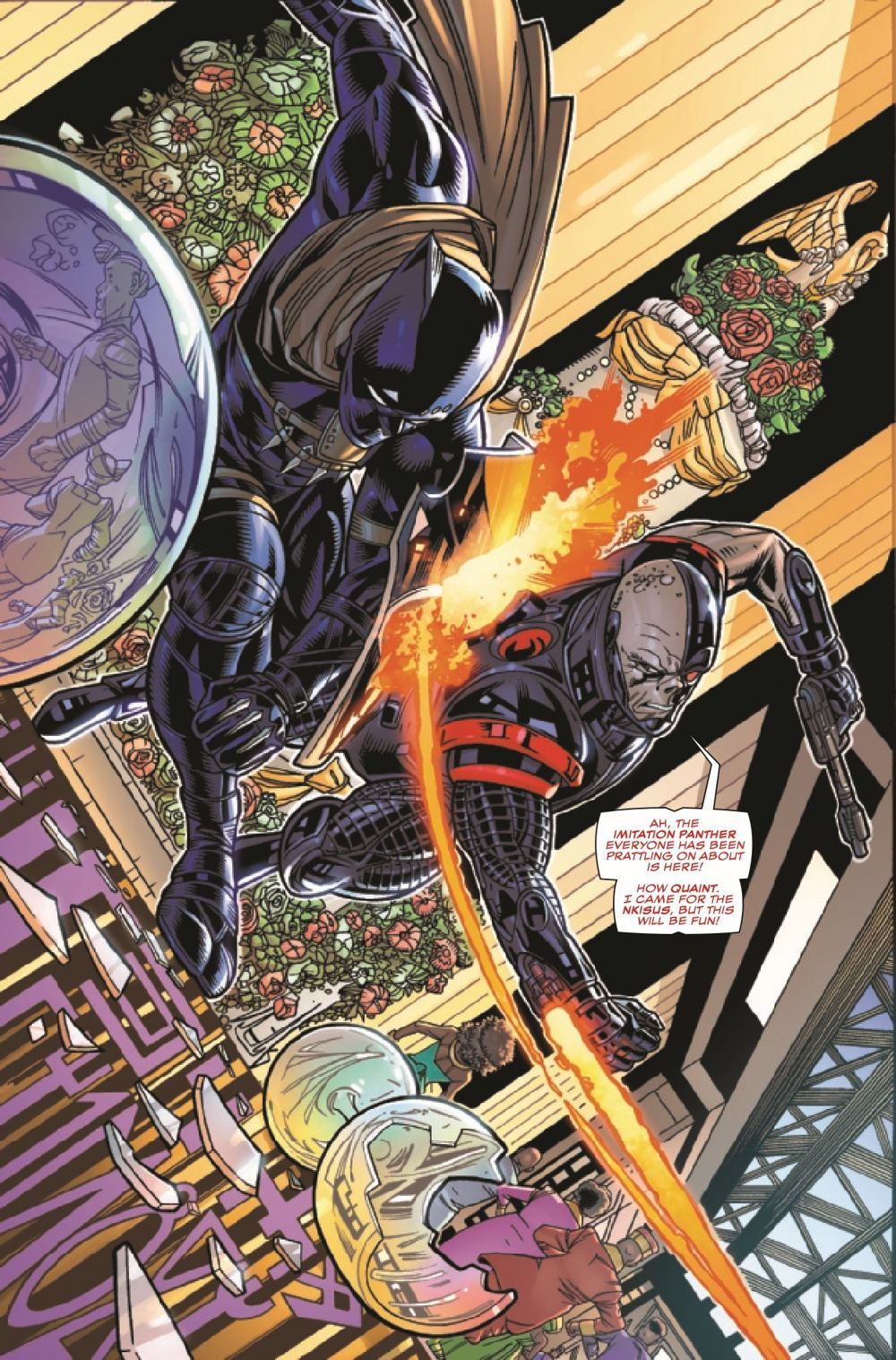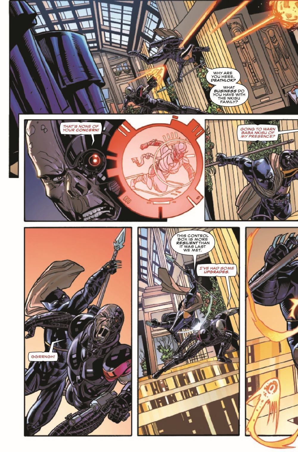 Two of Birnin T'Chaka's most powerful crime families are about to become one in a wedding that is the talk of Wakanda! Neither Black Panther nor the mysterious Beisa are on the guest list, but that won't stop them from making an appearance at this who's who of Wakanda's rich, powerful and dangerous… …especially with the assassin Deathlok as one of the wedding crashers!