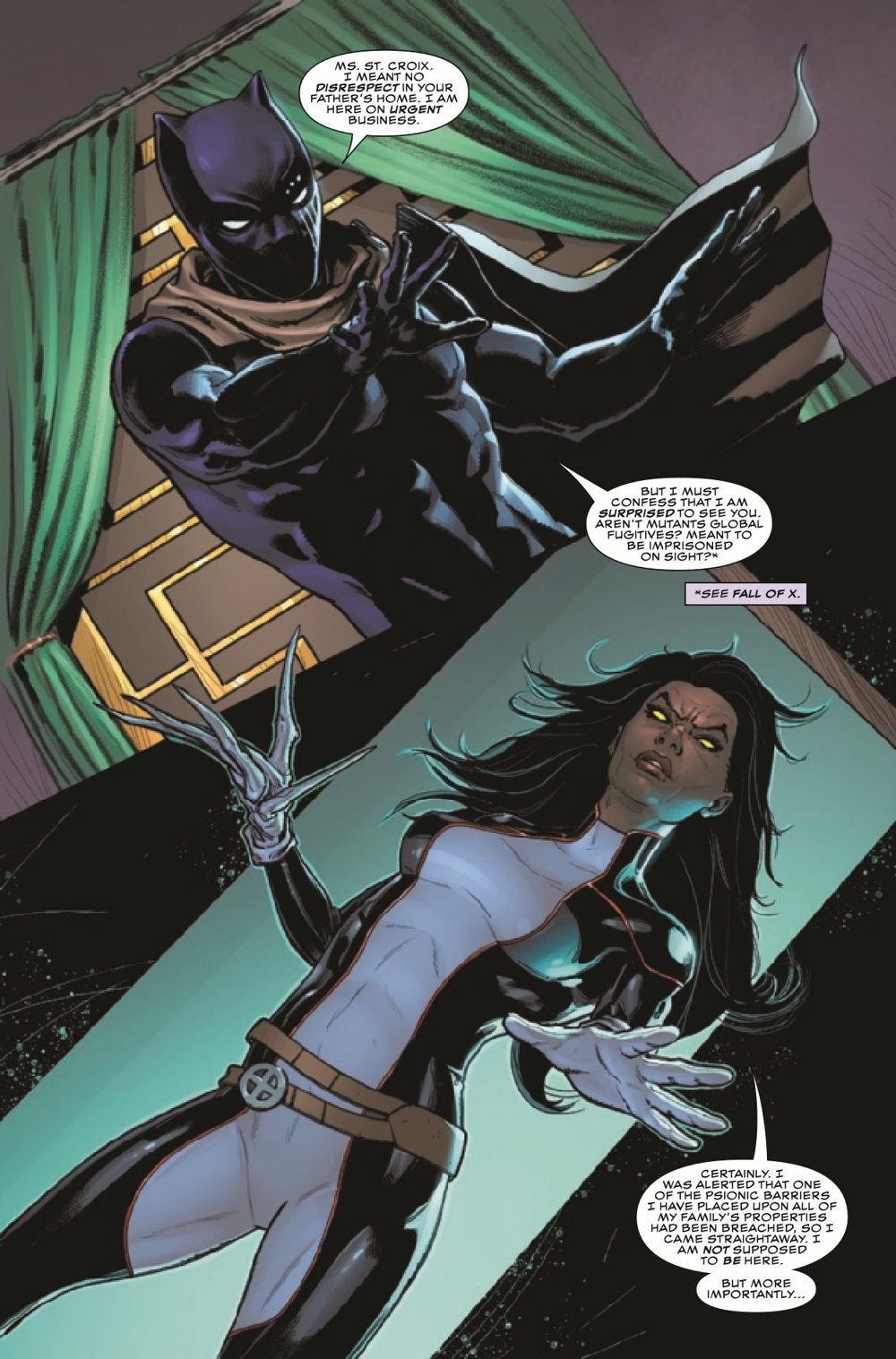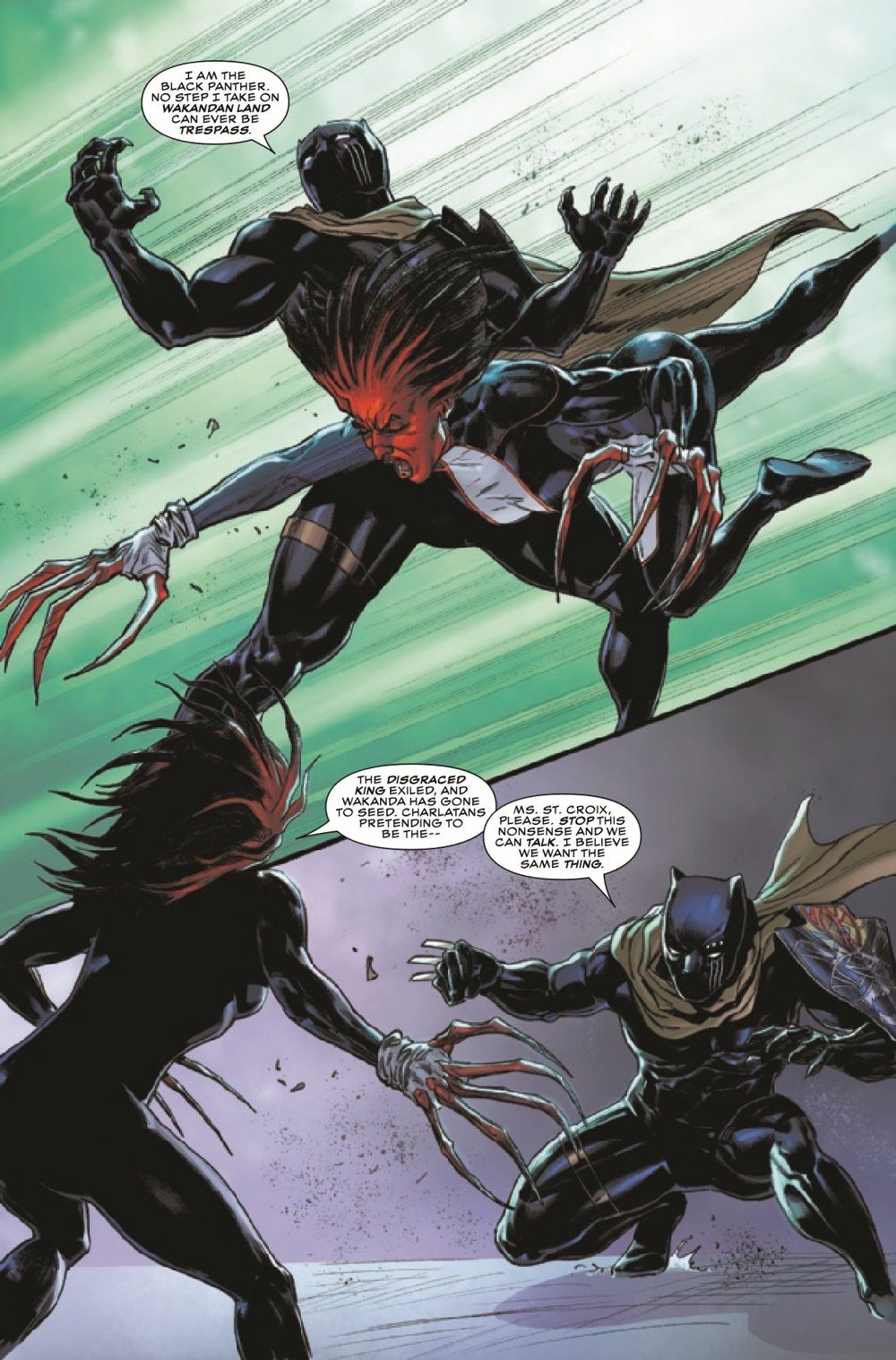 T'CHALLA VS. MONET! The missing-persons cases spiraling out of Birnin T'Chaka worsens, and Black Panther is determined to find out who is behind the disappearances. What does it have to do with the St. Croix family and their daughter, the powerful Uncanny Avenger known as Monet? T'Challa is about to find out!
