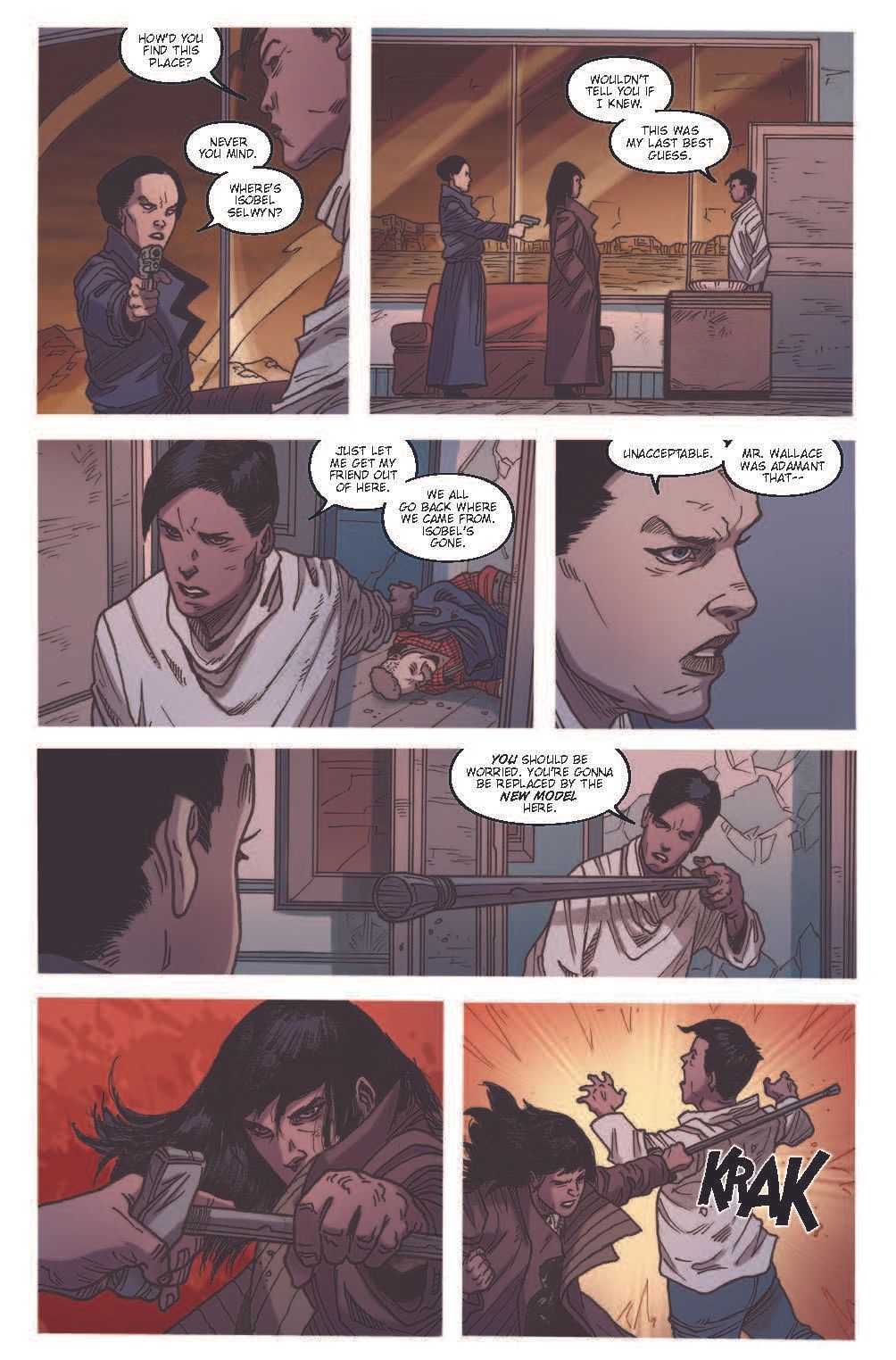 The thrilling climax to this arc sees a besieged ASH fighting to protect the wounded ISOBEL from not one but two of NIANDER WALLACE 's most deadly new REPLICANTS. The first was his own personal bodyguard LUV, and the second was Ash's Replicant double RASH. But cornered and heavily out-gunned, Ash finds an ally from the most unexpected quarter.