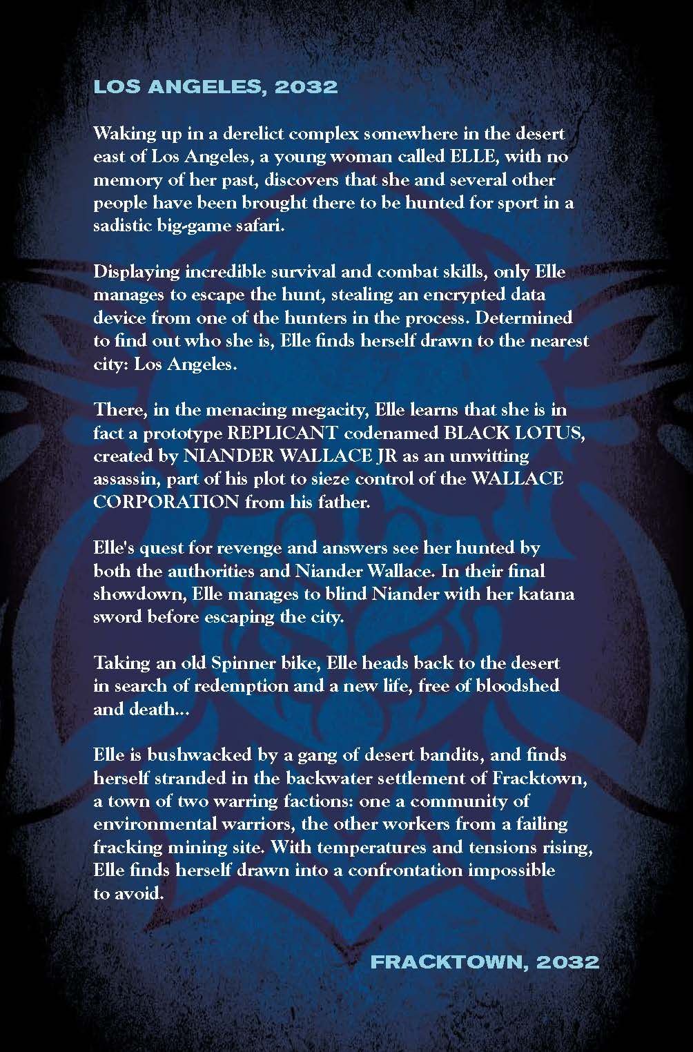 SET AFTER THE EVENTS OF THE BLADE RUNNER: BLACK LOTUS ANIME SERIES! Elle, AKA Black Lotus, hoped she could leave behind her violent past and find a new life. But is that possible in a world where replicants are still hunted and feared expanding the world of Blade Runner with a new type of replicant?