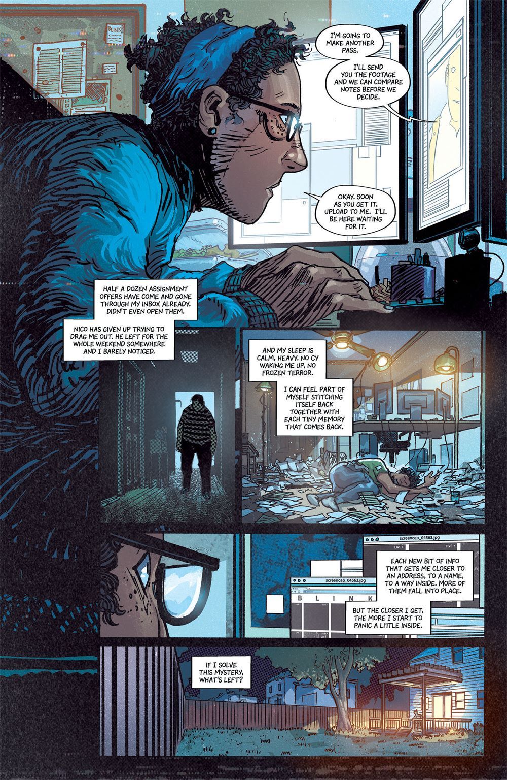 Wren Booker was three when she was found catatonic and covered in blood on the streets of New York. Since that day, she's been haunted by a childhood she can't remember. After decades of searching, Wren stumbles upon a cryptic website streaming multiple CCT feeds from strange rooms in a ruined building and something clicks, setting off hidden memories that lead her back to a place she's seen in lifelong nightmares. Hunting for answers, Wren breaks into the building, but instead finds herself entangled in the camera-filled dark mazes of a decayed social experiment known only as BLINK.