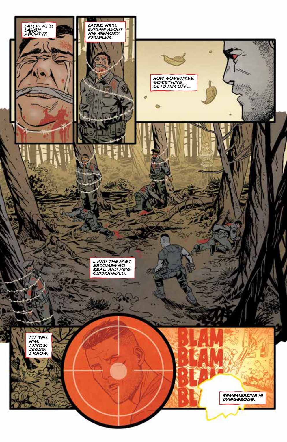 BLOODSHOT hunts down the Spent Shell SGT Michael Verlane in the Florida swamplands but is haunted by the ghosts of his past in "Flashback". And finally, learn the fate of BLOODSHOT'S family! BLOODSHOT UNLEASHED #4 is as thoughtful as it is gory and violent!