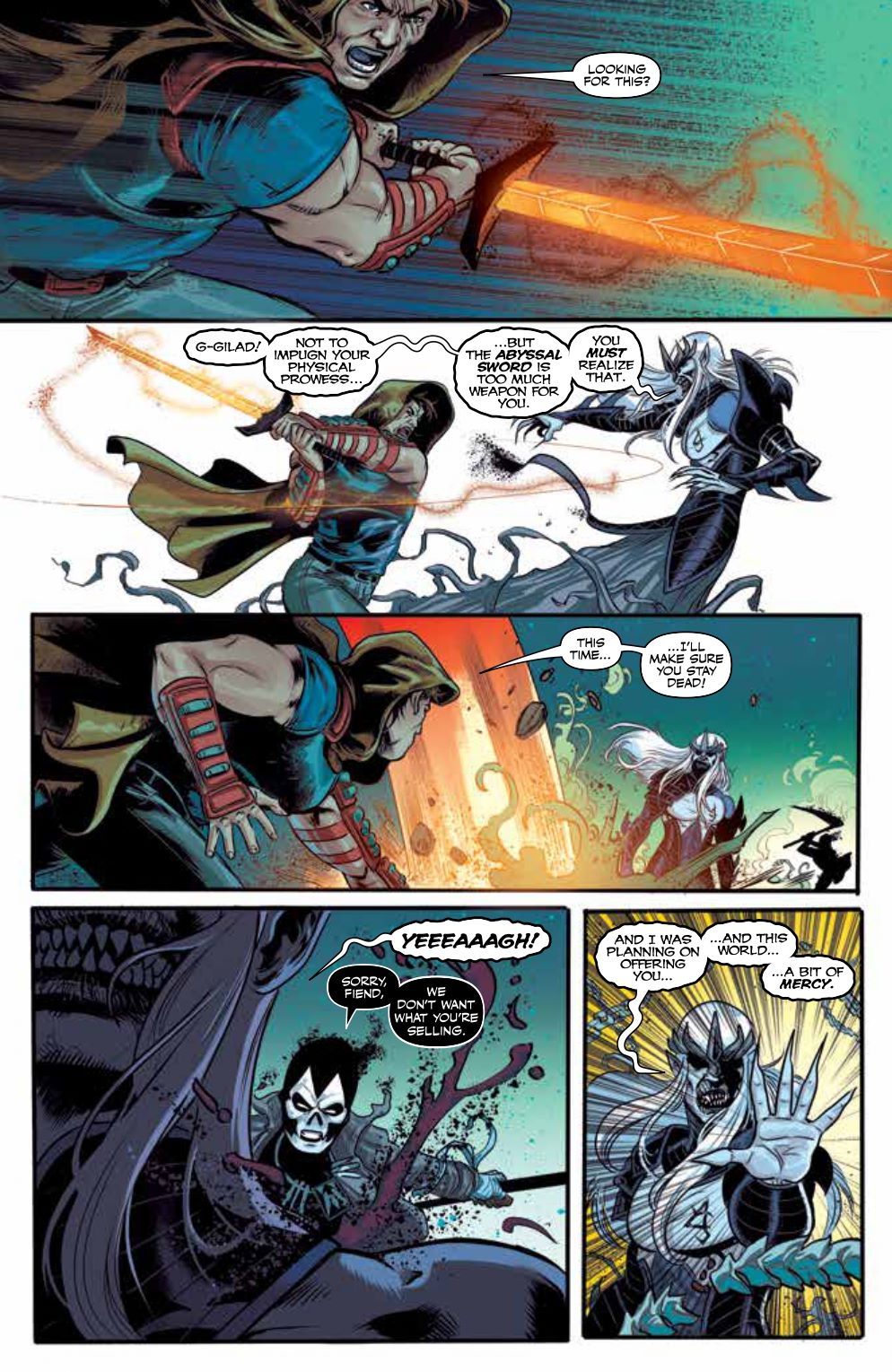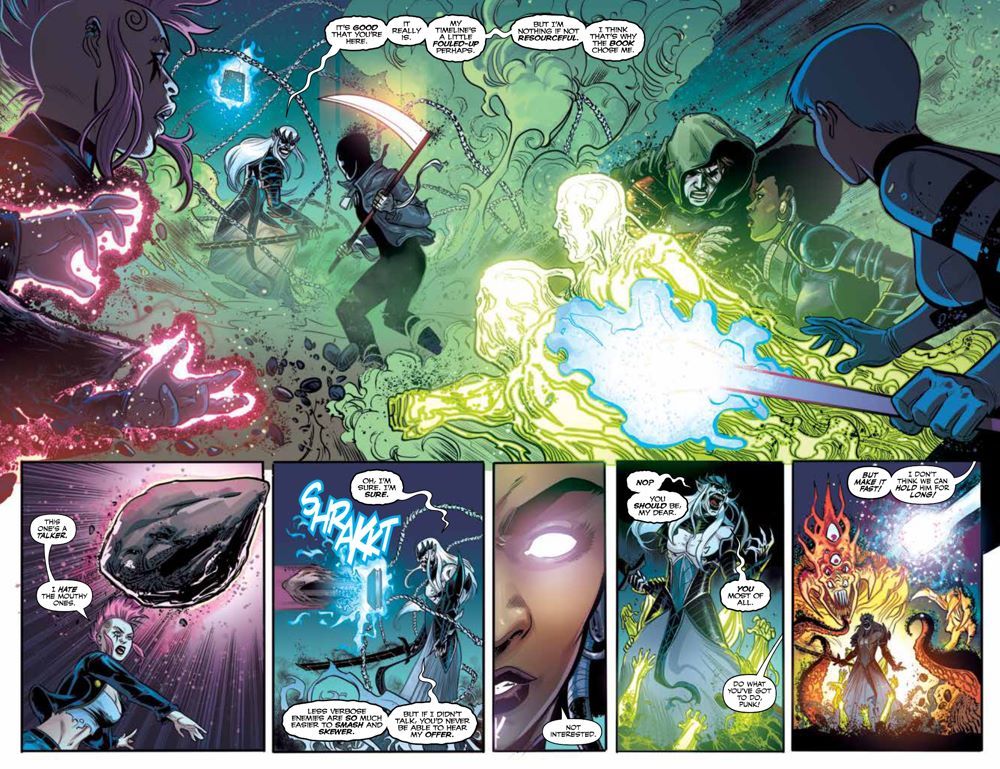 Shadowman, Punk Mambo, Doctor Mirage, Eternal Warrior, and Shadowman's new ward, Persephone, confront a villain from the Veil. Exarch Fane has broken through to Earth, bringing with him the terrifying Book of Shadows. Death and destruction follow in Fane's wake. Can our heroes save the day or will they run away to lick their wounds?