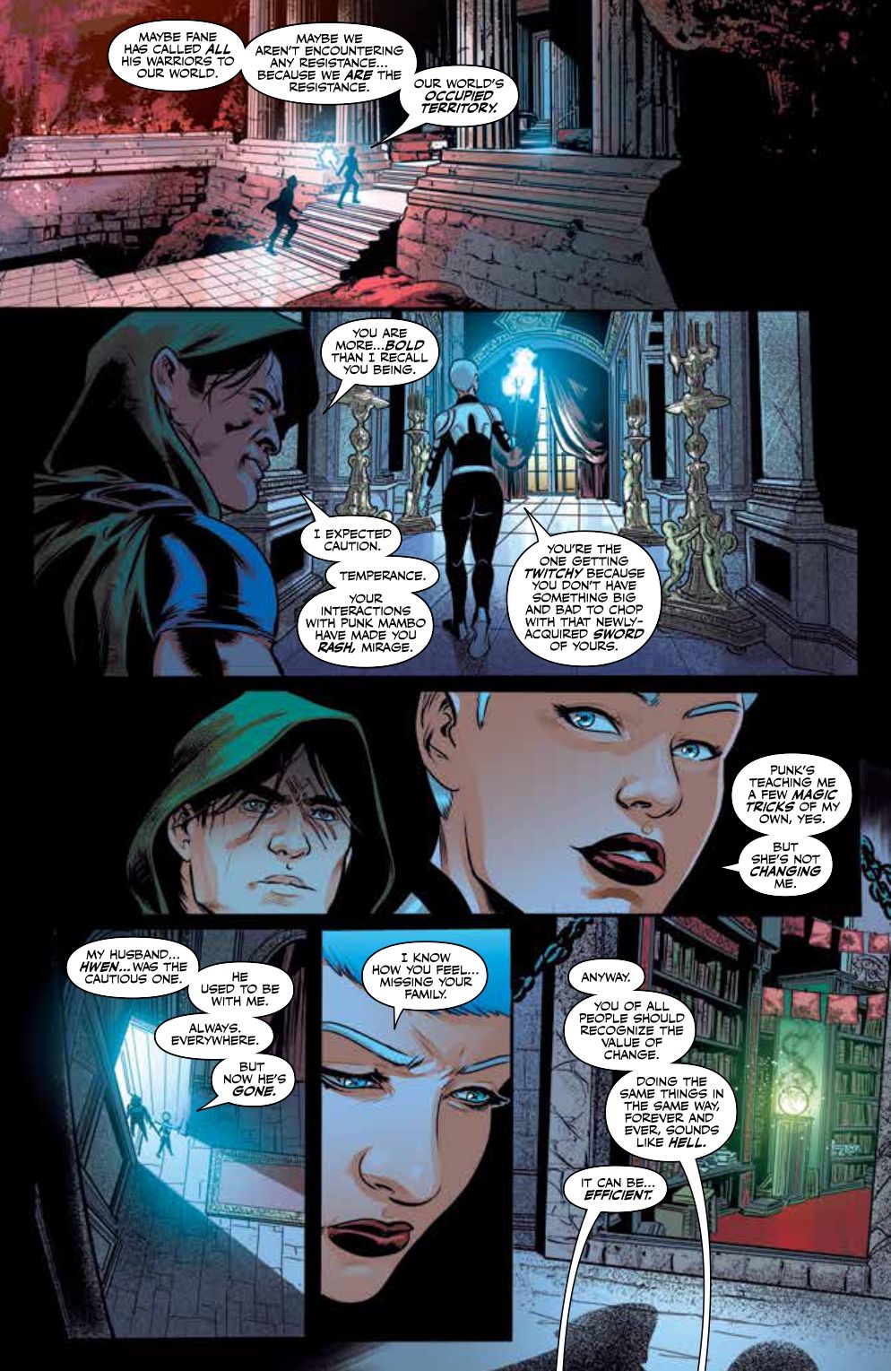 Exarch Fane, an ancient, otherworldly warlord, is intent on sacrificing our world to satiate his hunger. Only a team of mystic heroes stands in his way. But while three heroes—SHADOWMAN, PUNK MAMBO, and PERSEPHONE—attempt to stop Fane from forging the Chain of Ruin, DOCTOR MIRAGE and the ETERNAL WARRIOR pass through the veil of death to discover the BOOK OF SHADOWS' terrible secrets.
