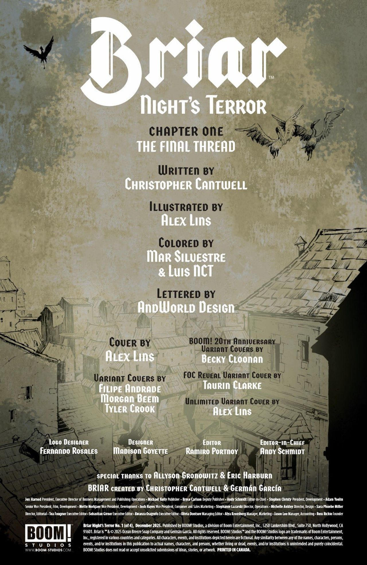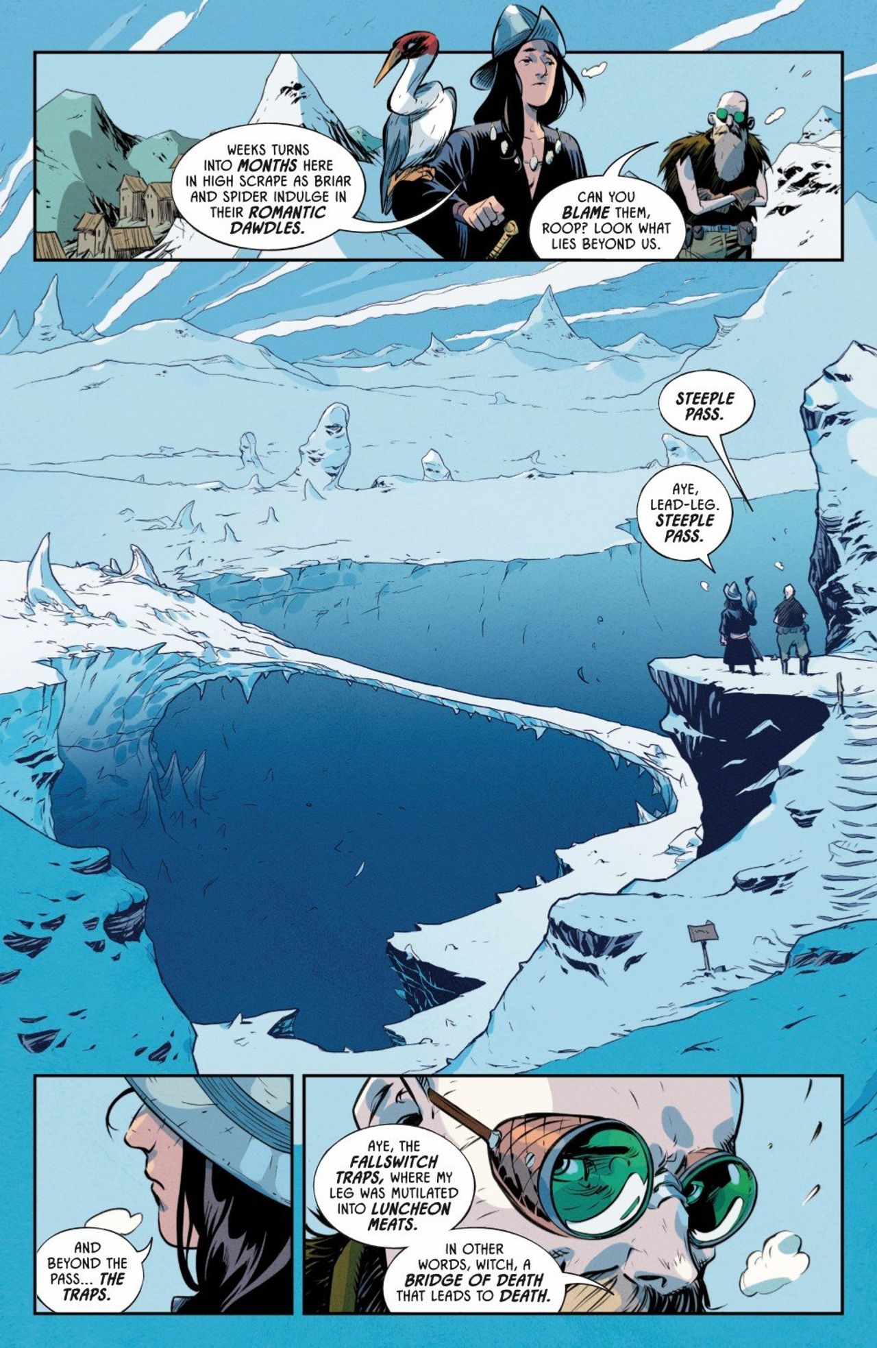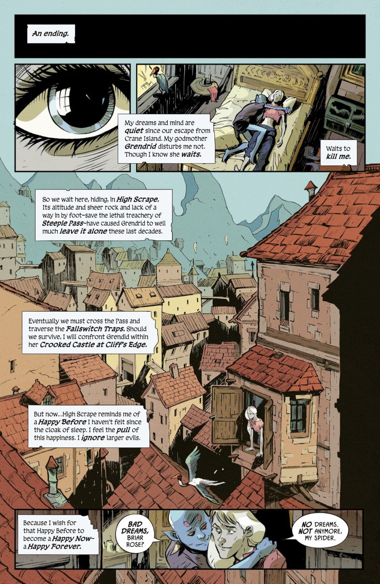 The epic conclusion to Briar Rose's journey begins here! Briar Rose and Spider finally share a moment of romantic bliss in the village of High Scrape—but the final challenge still awaits! The gang must navigate the perilous Fallswitch Traps, the last barrier to reach Grendid's lair. And though the journey is treacherous, what awaits is even more so…with one last spell to revive Grendrid to the height of her powers, will our heroes be prepared for the ultimate showdown? The smash hit from writer Christopher Cantwell (Iron Man, Halt & Catch Fire) and artist Germán García (Ka-Zar: Lord of the Savage Land) reaches its unforgettable finish in the final arc of Briar!