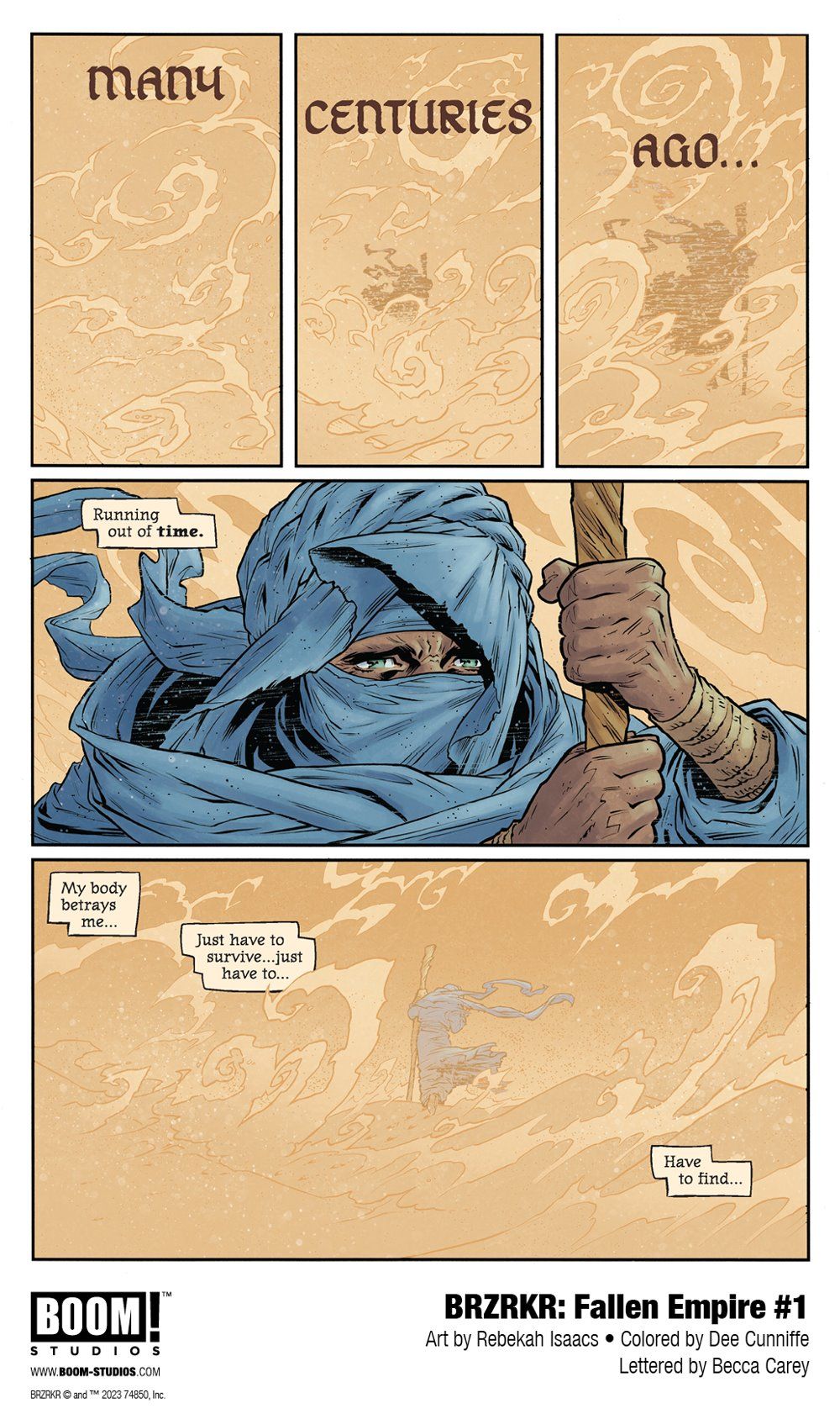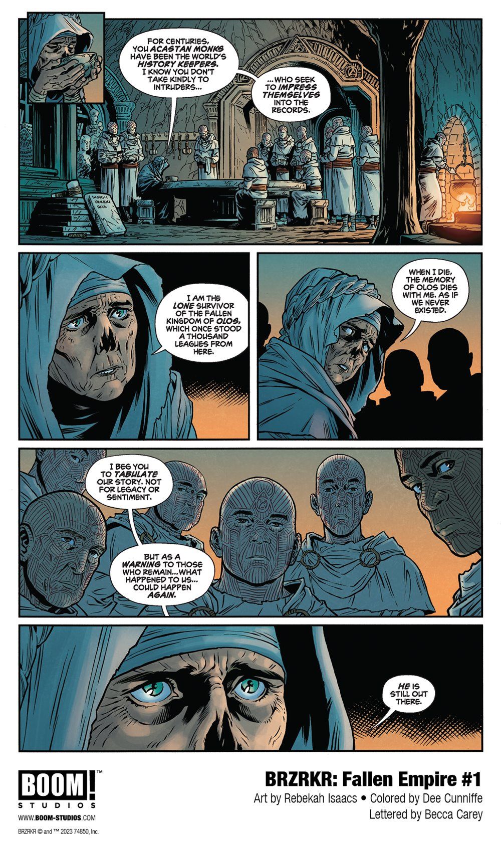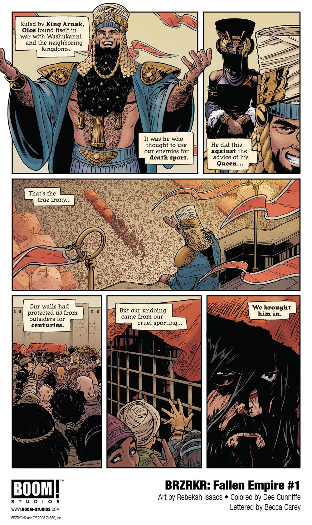 SPECIAL ISSUE. The lone survivor of Olos, a long-dead empire that once thrived, tells a tale of B.'s distant past, and the death and cataclysm he brought forth. But what else did B. find that could have driven him to such violence? The heart is as much a weapon as any in B.'s arsenal… Created by the iconic Keanu Reeves, BRZRKR and The Batman Part II screenwriter and Eisner Award-nominated writer Mattson Tomlin (A Vicious Circle, Batman: The Imposter) is joined by hit artist Rebekah Isaacs (Buffy the Vampire Slayer, Money Shot) to bring fans more brutality from the ancient past!