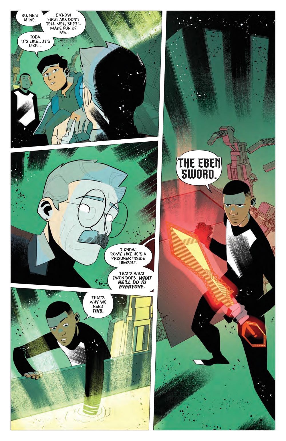FINAL ISSUE. Toba and his friends have split up. He's entered the Elseverse in search of his father, while the rest of the group works to take down the mind-control device threatening all of Buckhead. But that's not all they'll have to contend with… as an ancient power once thought defeated is freed from the Elseverse, spelling almost certain doom for them all! Experience the epic conclusion to this incredible adventure as the mystery of the Eben sword is finally revealed.