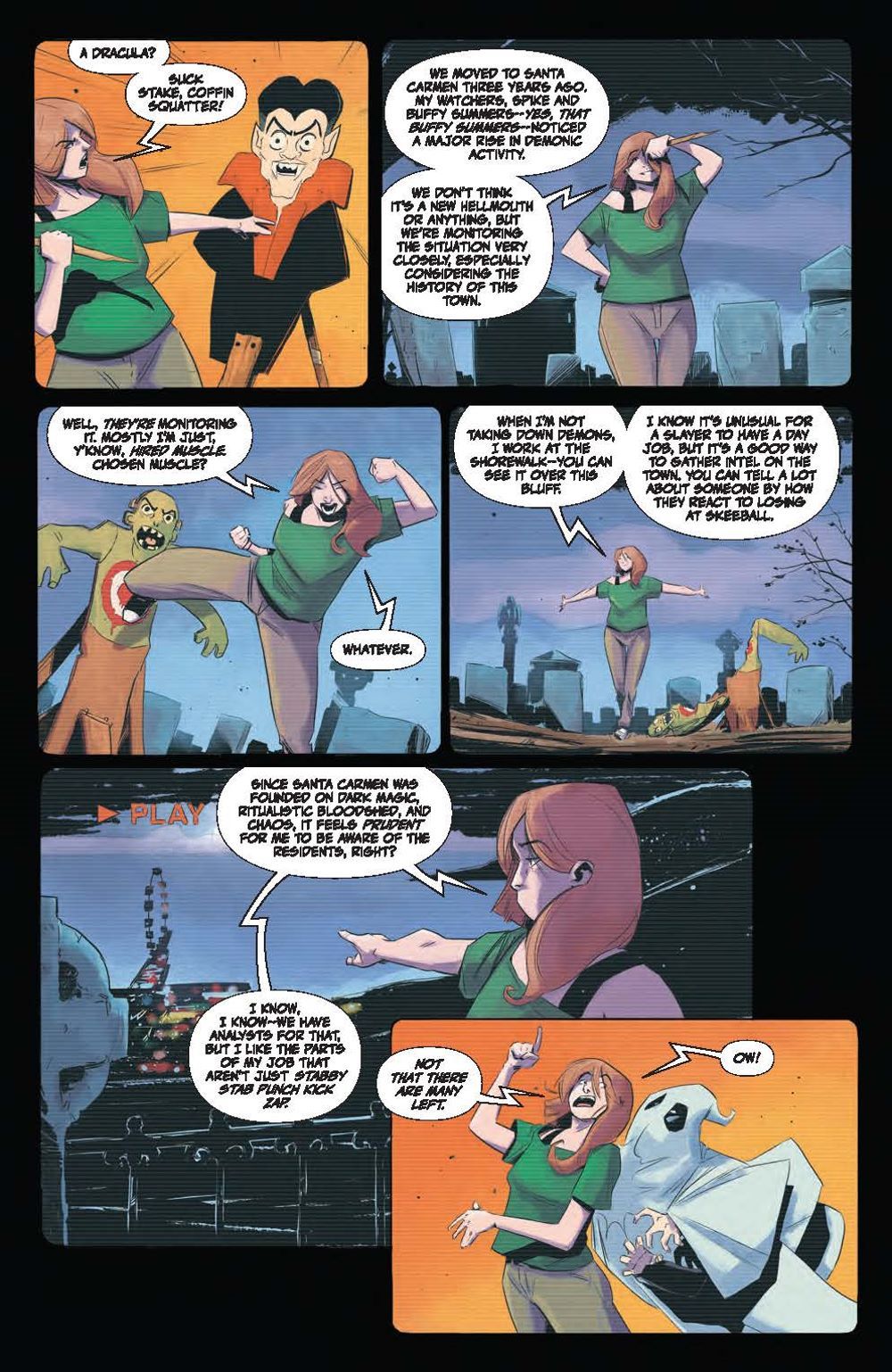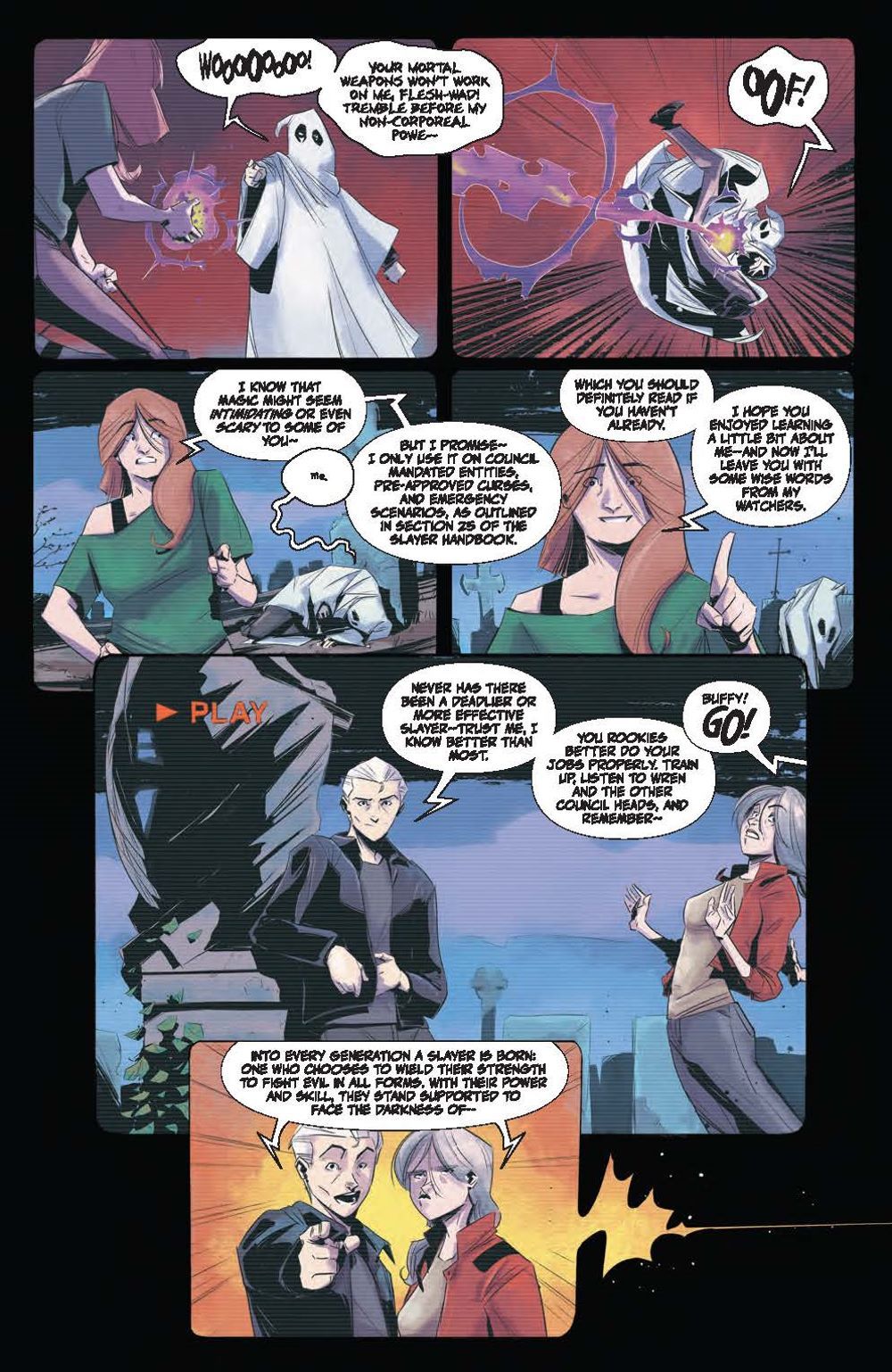 NEW SERIES. A new Slayer rises in the world of The Last Vampire Slayer! Thess is all grown up, having taken up the mantle as the new Slayer! But with new responsibilities comes new enemies, and a mysterious clan will do anything to get to her, even if it means using her friends as bait. Fans won't want to miss this brand new mini series from veteran Buffy scribe Casey Gilly, set after the events of Buffy The Last Vampire Slayer Special #1!