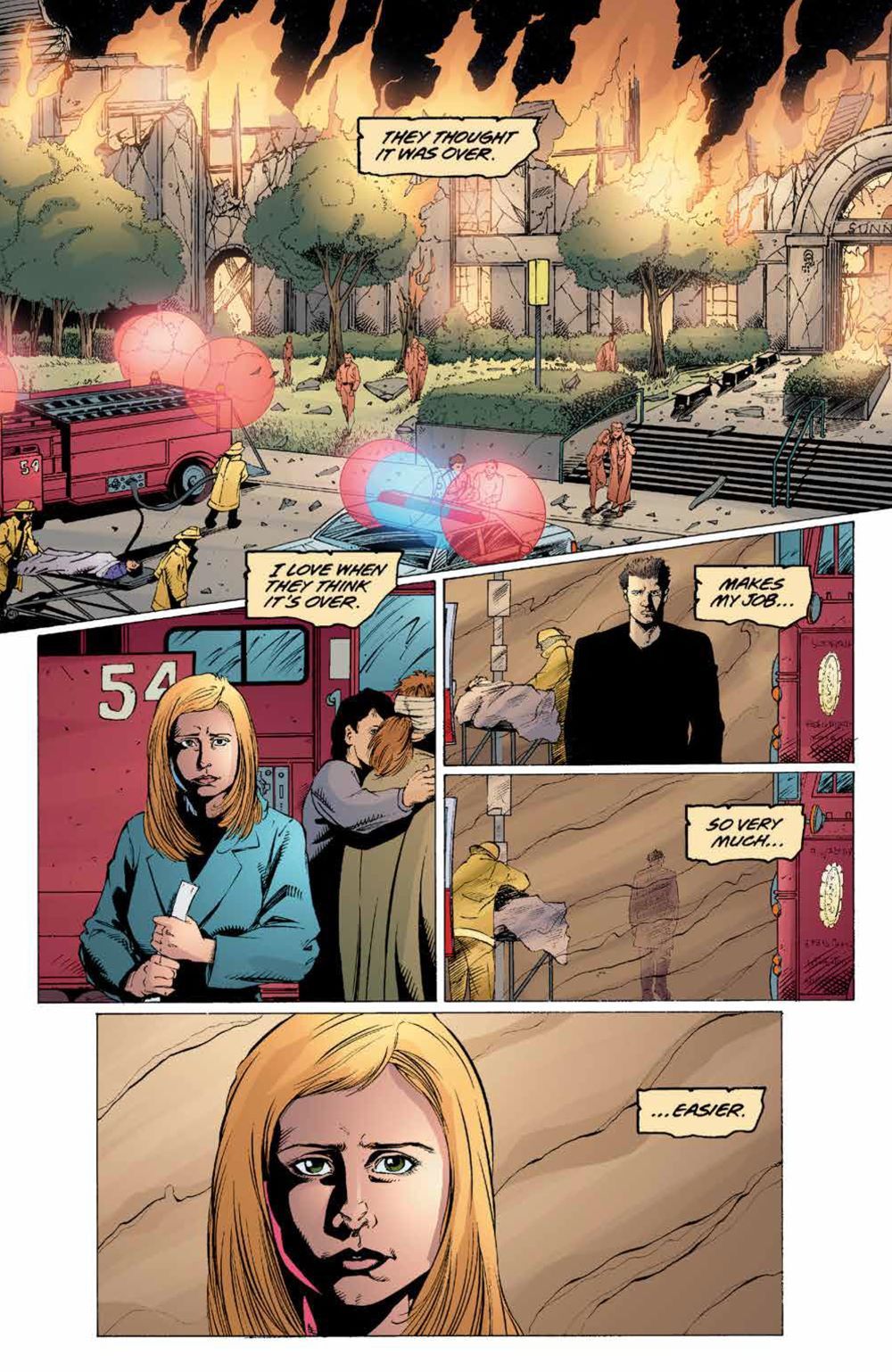 After the third season finale of the Buffy the Vampire television series, Sunnydale High has now gone up in flames - though a bit more literally than Buffy and the Scooby Gang ever expected. Now it's time for college, as Buffy and Willow seek to prepare for a more normal life, but with romantic drama, and tortured dreams of the rogue Slayer known as Faith, it looks like the past isn't ready to let go of our heroes just quite yet. Maybe the Hellmouth wasn't so bad after all? Collects Buffy The Vampire Slayer #20-29 and Angel #15, previously published by Dark Horse Comics.