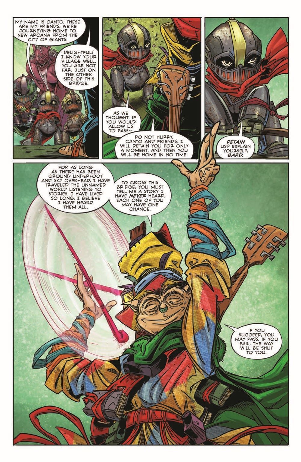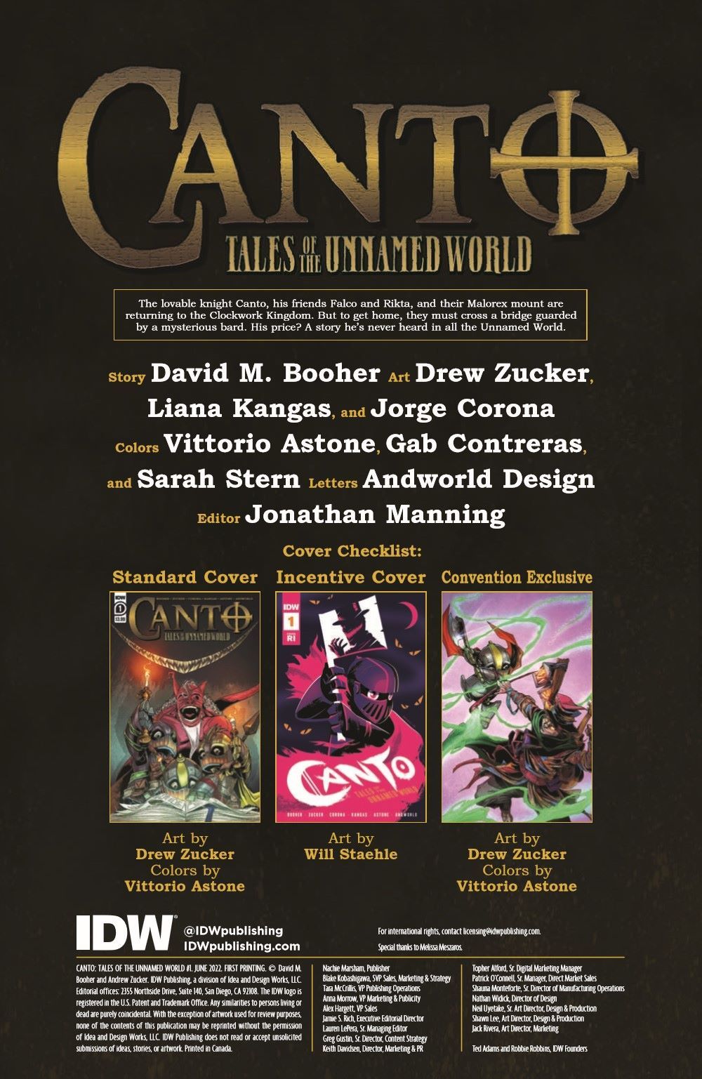 After his quest into the City of Giants, the lovable knight Canto, his friends Falco and Rikta, and their Malorex mount are returning to the New Arcana. But to get home, they must cross a bridge guarded by a mysterious bard. His price? A story he's never heard in all the Unnamed World. This phenomenal collection of stories by Canto co-creators David M. Booher and Drew Zucker, alongside and some of comics' top artists expands the world and adventure of the fan-favorite Canto series between Canto II: The Hollow Men and Canto III: Lionhearted, both on sale now!