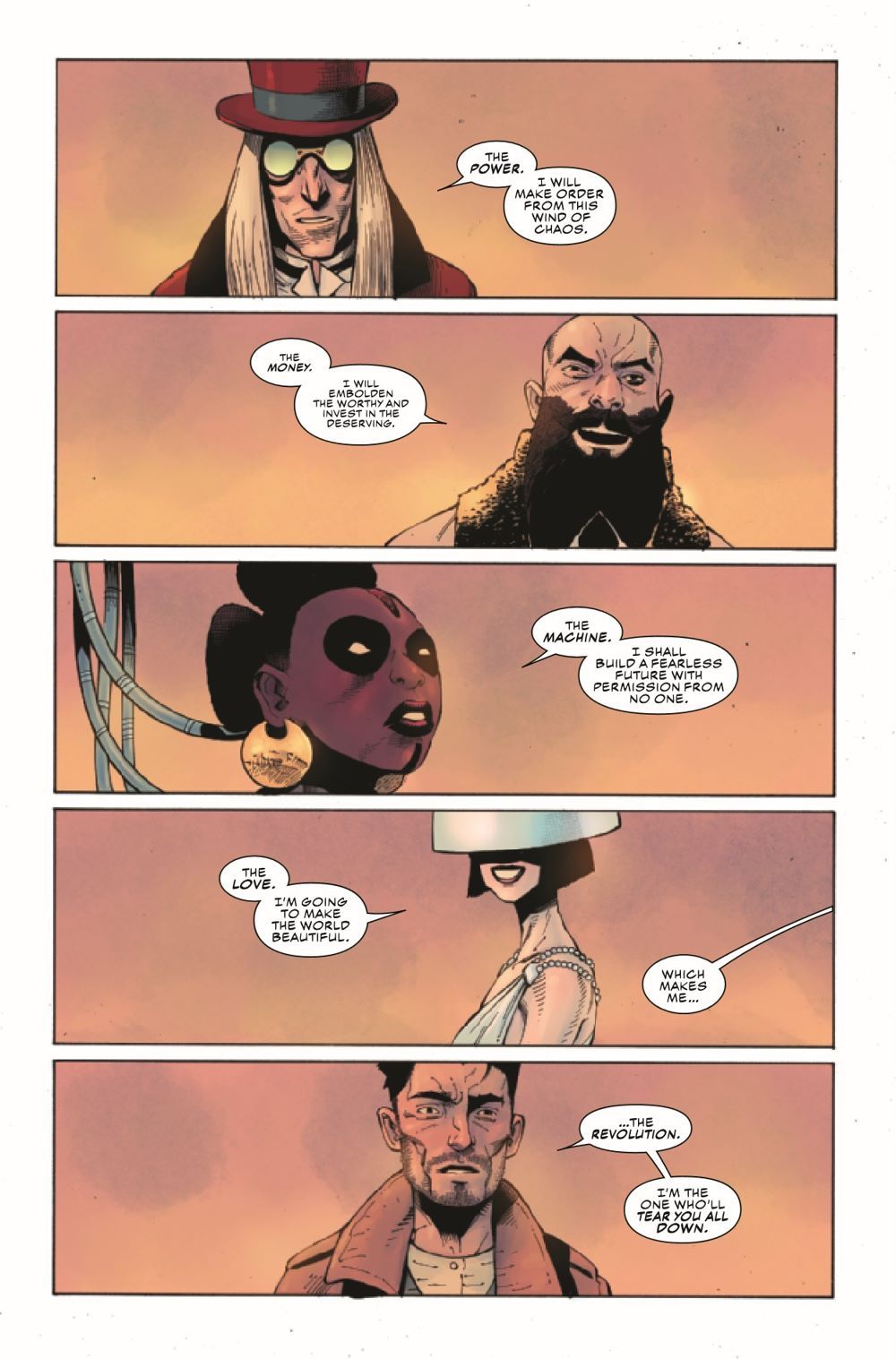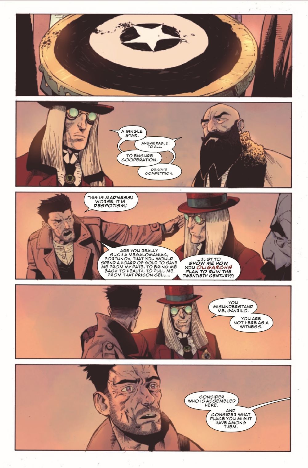 Power. Money. Machine. Love. Revolution. The 20th century progressed at a more rapid pace than any other in history but not without help from the shadows. Kev Walker joins CAPTAIN AMERICA: SENTINEL OF LIBERTY writers Collin Kelly and Jackson Lanzing to explore the origin of Captain America's newest foe - and what the Outer Circle's next play means for the status of the Winter Soldier.