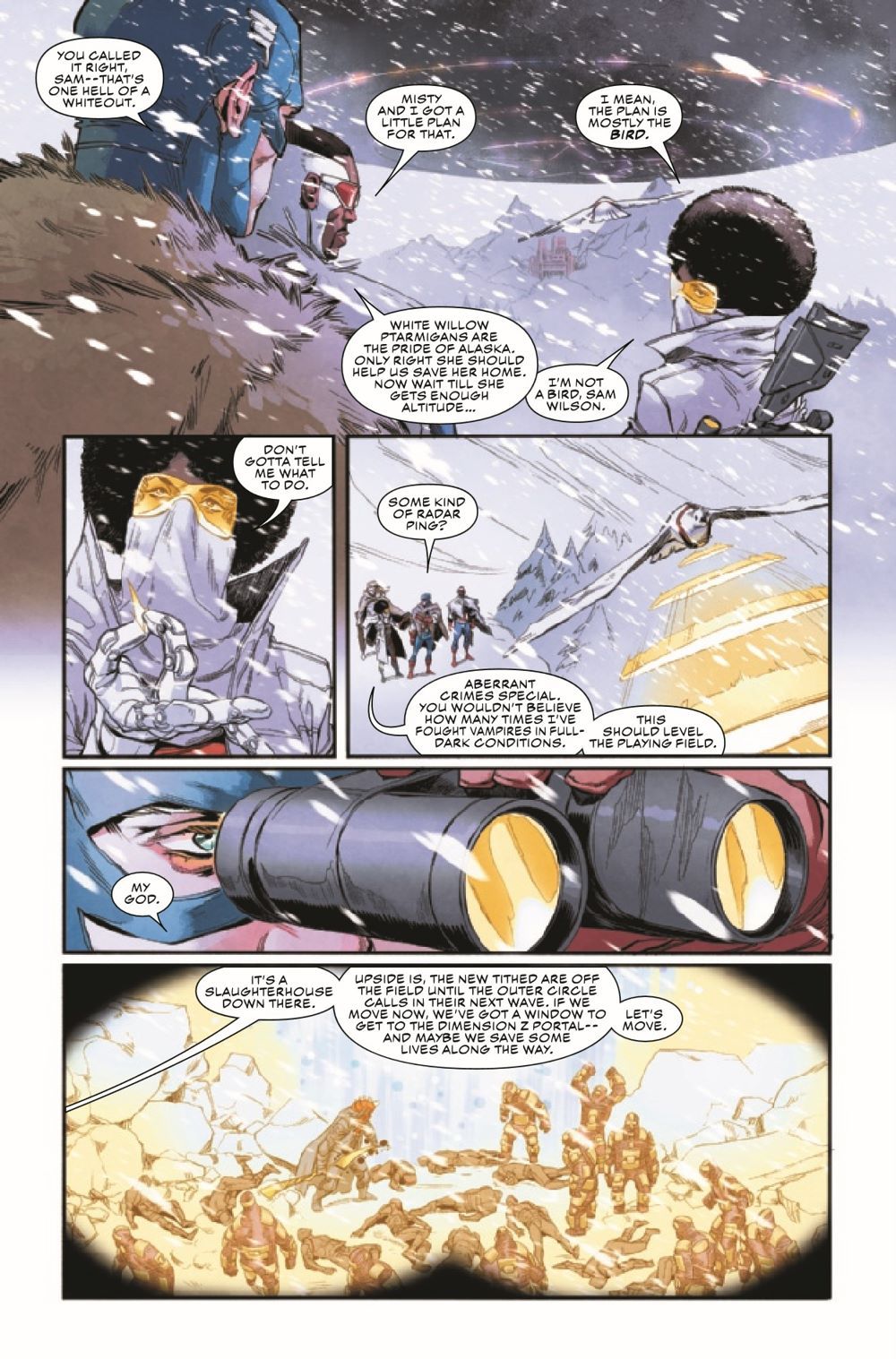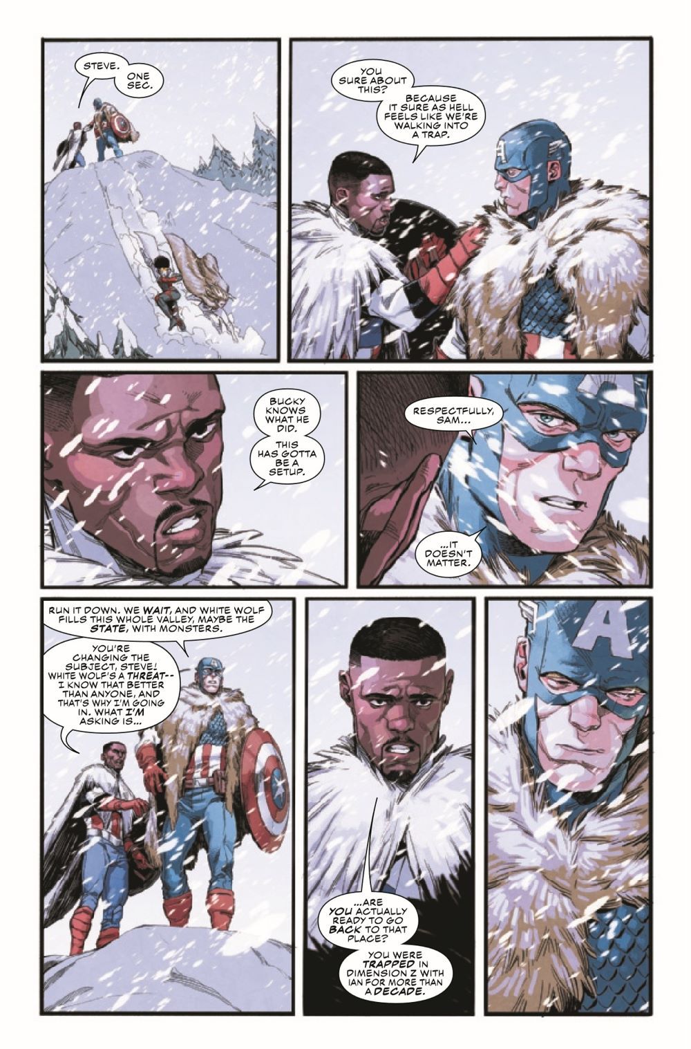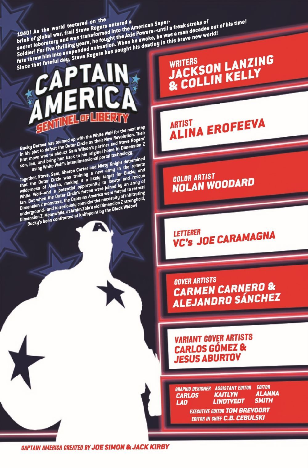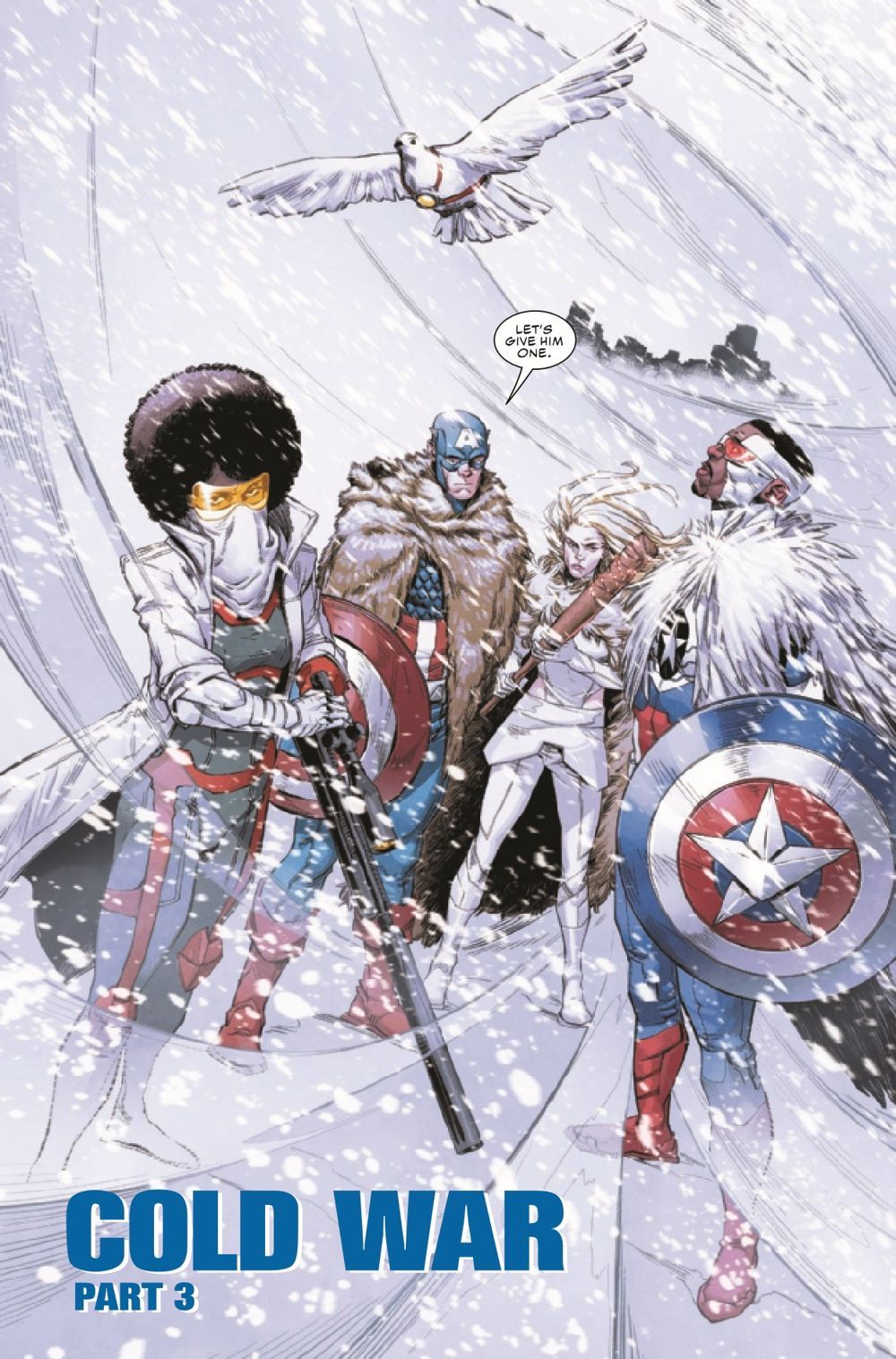 CAPTAIN AMERICA: COLD WAR PART THREE! The Black Widow enters the fray! As Bucky Barnes and White Wolf team up to strike at the heart of the Outer Circle conspiracy, Steve Rogers, Sam Wilson and their allies are caught in the crossfire! As the heroes fight their way across the war-torn Alaskan tundra to rescue Ian Rogers, Black Widow attempts to stop Bucky's descent into villainy - at any cost!