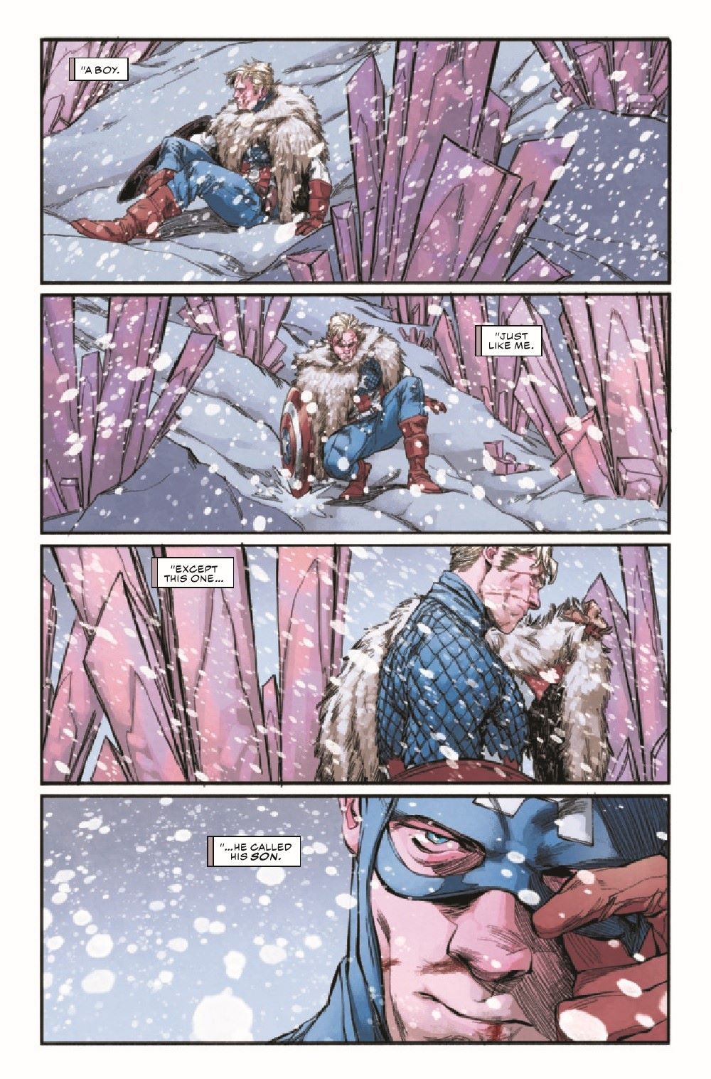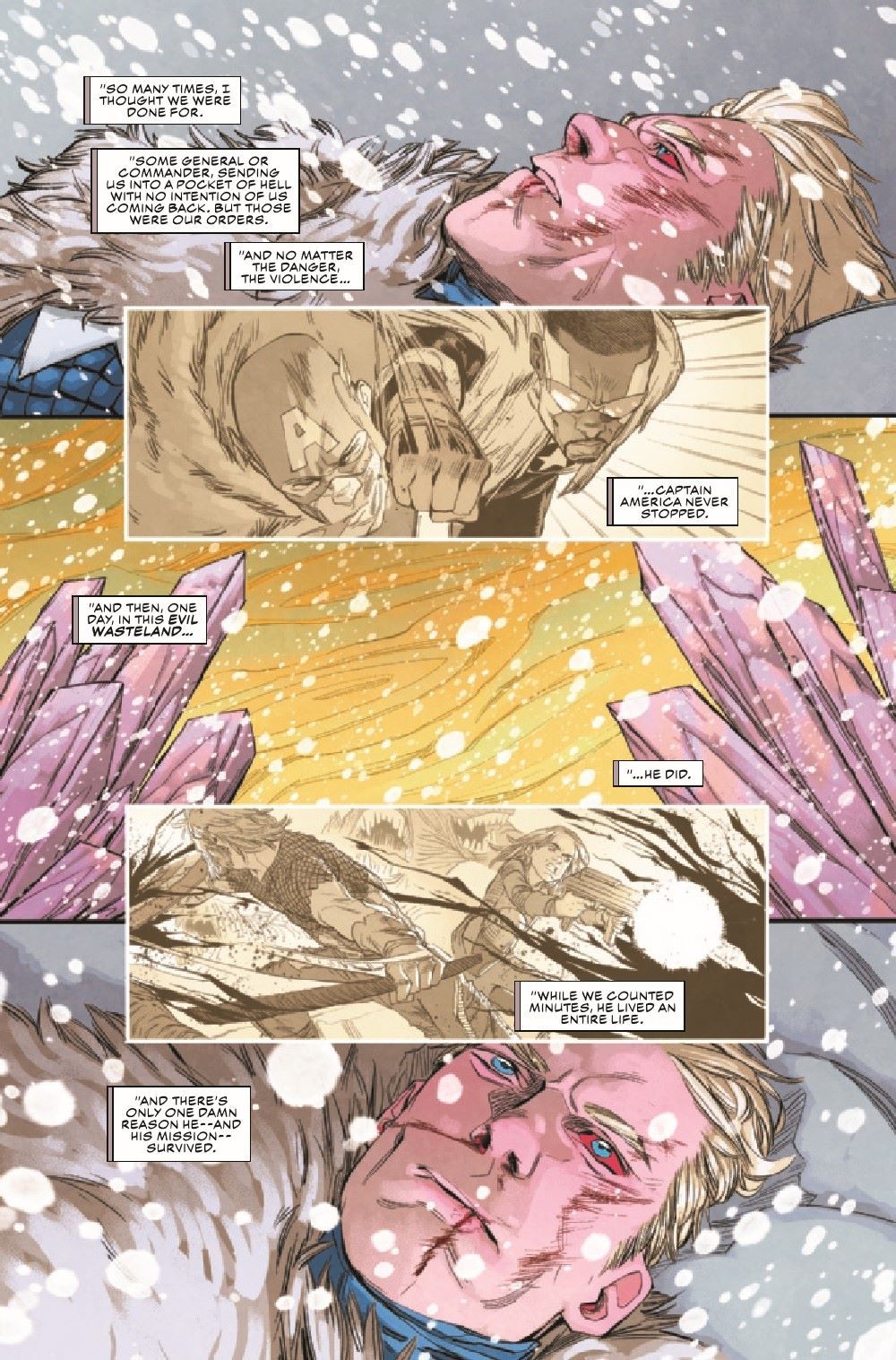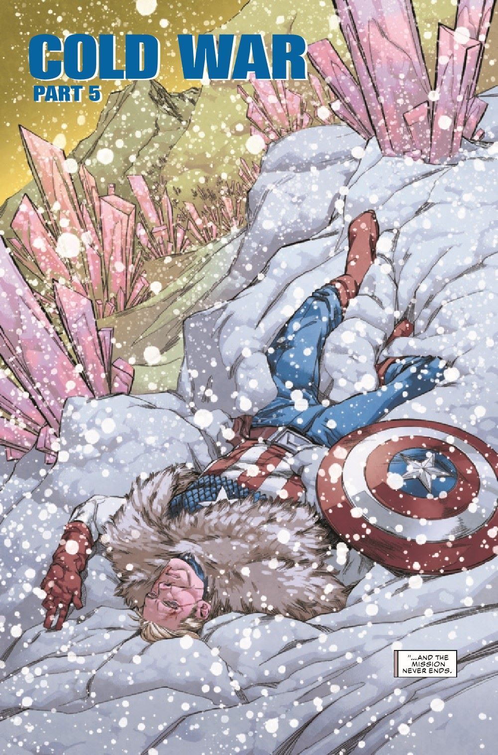 "COLD WAR" PART FIVE! Just when White Wolf thinks he's gained the upper hand, Sam Wilson and Steve Rogers rally under the banner of Captain America. Meanwhile, Black Widow and Peggy Carter clash over what it means to be a hero - and whether Bucky Barnes is still someone worth saving.