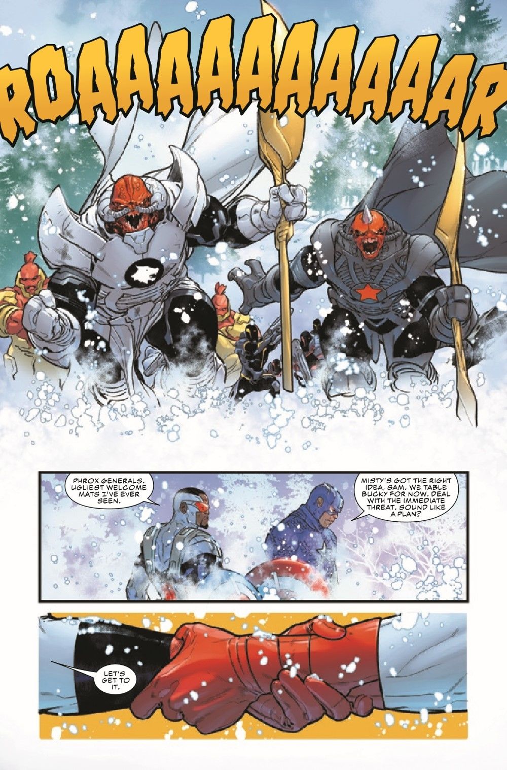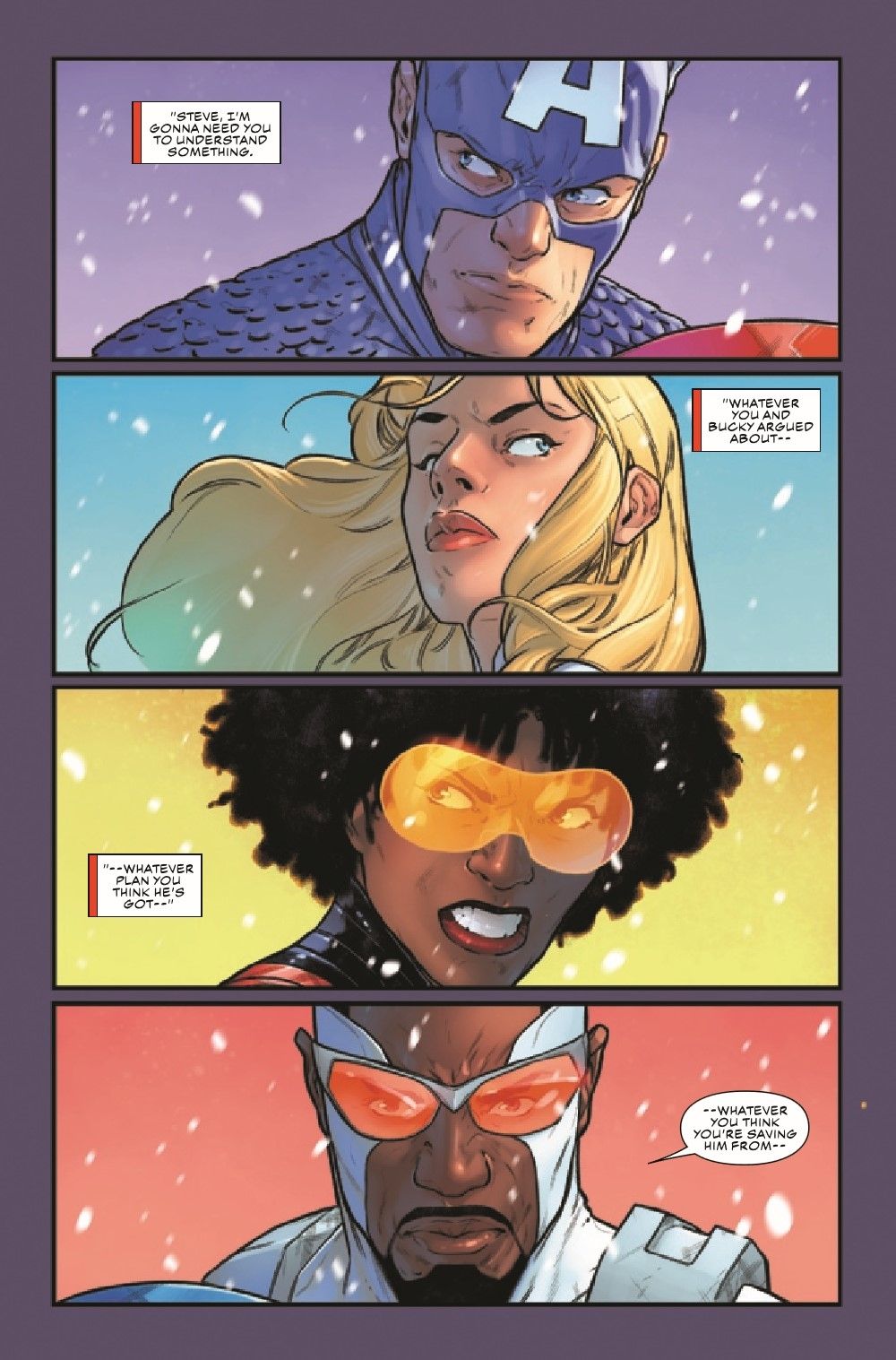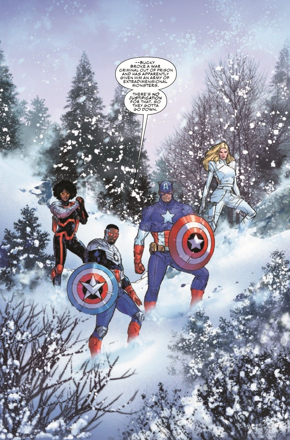 COLD WAR – PART TWO! White Wolf has used the power granted him by Bucky Barnes to take control of Dimension Z and unleash its creatures onto the Captains America. Sam Wilson and Steve Rogers are prepared to fight their way through the onslaught, but the Outer Circle has more stakes in this fight than our heroes realize. Can Sam Wilson and Steve Rogers agree on their priorities before they fall to this new threat? And what exactly does Bucky Barnes intend to do to Ian Rogers?