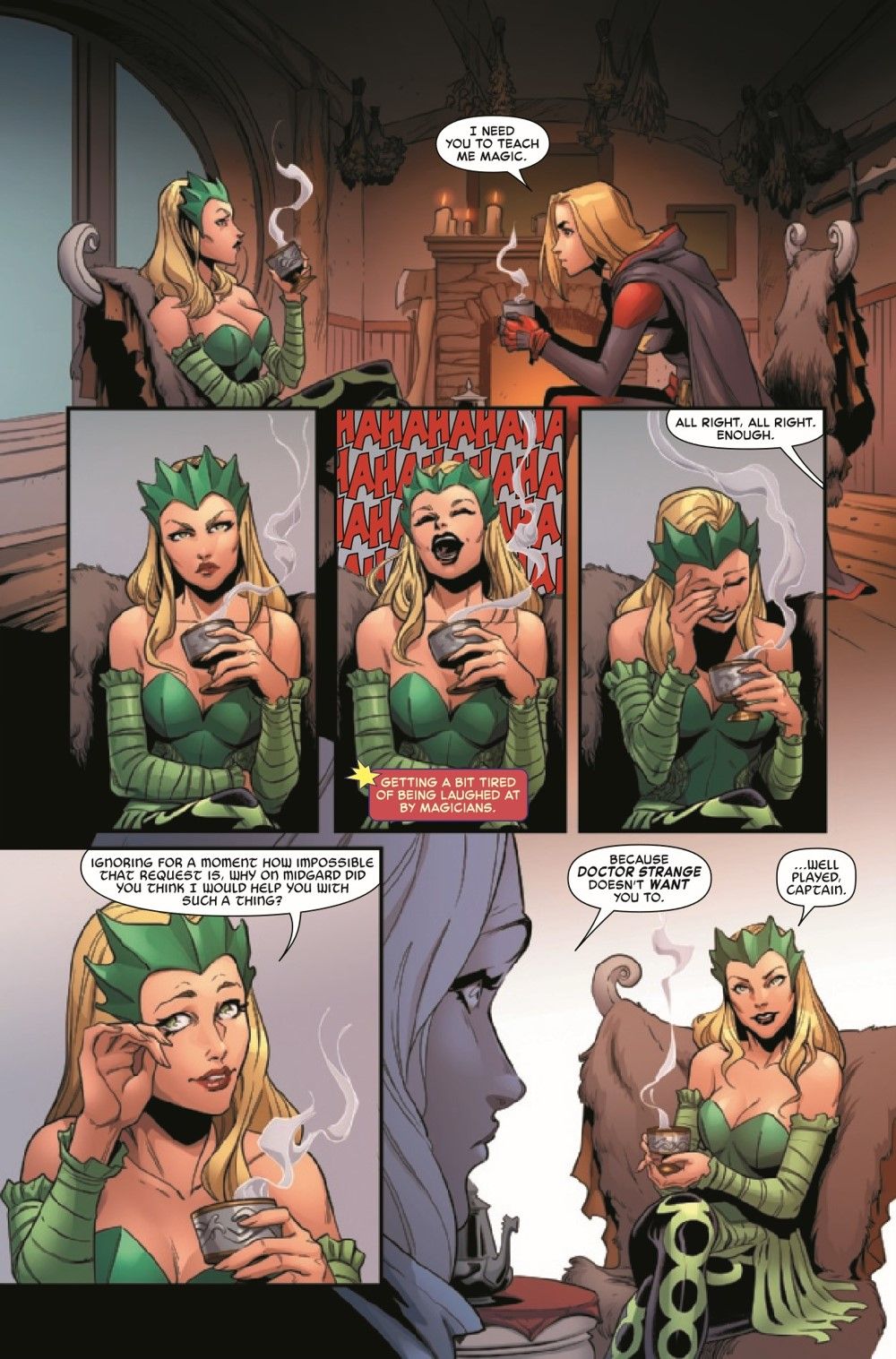 Haunted by a doomed future, Captain Marvel is getting desperate. And that desperation is showing, both in who Carol enlists to help her and the secret she keeps from them as they embark on this adventure together. But Carol's quest for magic continues, as she truly believes it's the last hope to stop a dystopian future, even if every magic user she knows disagrees!