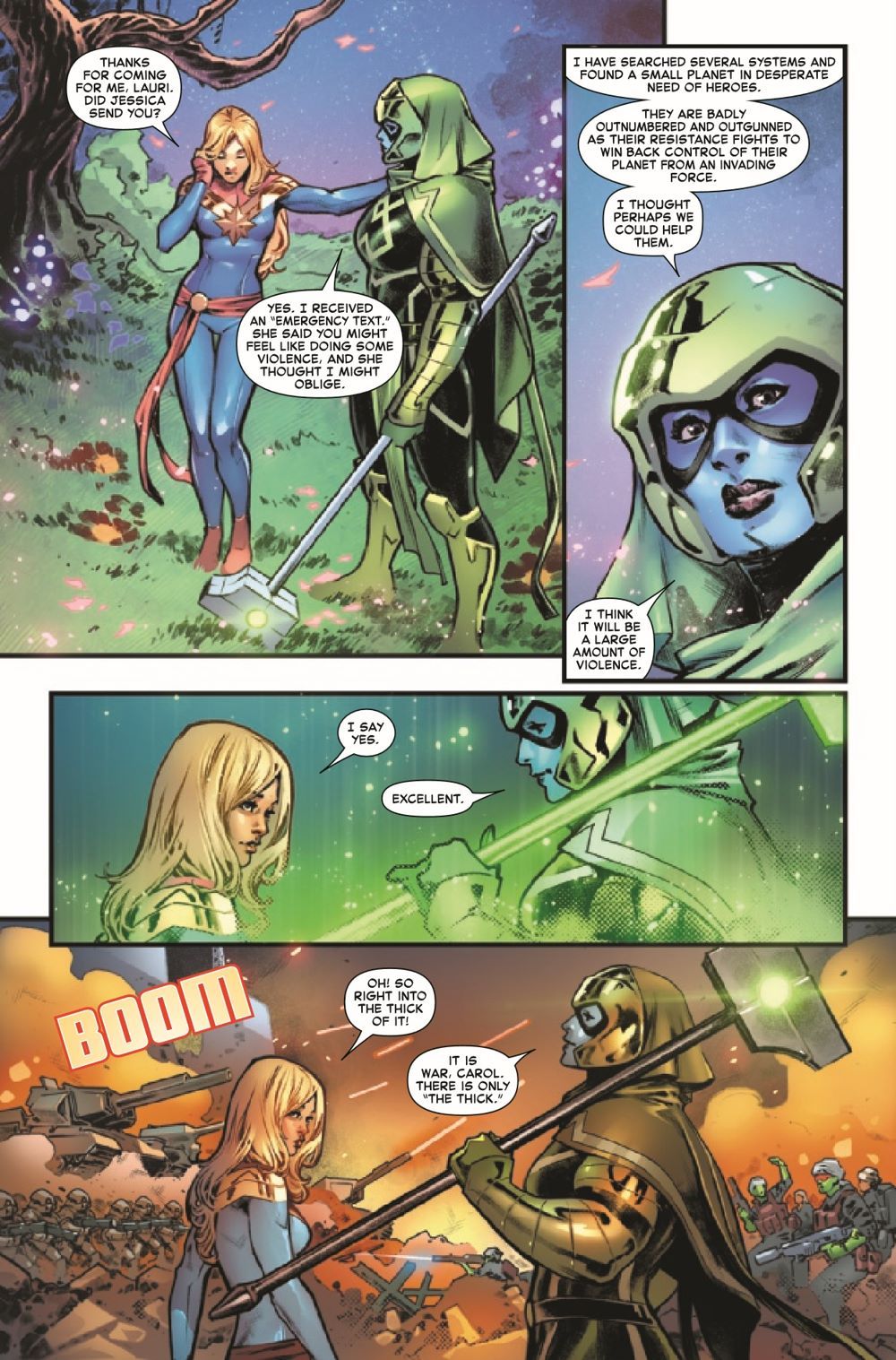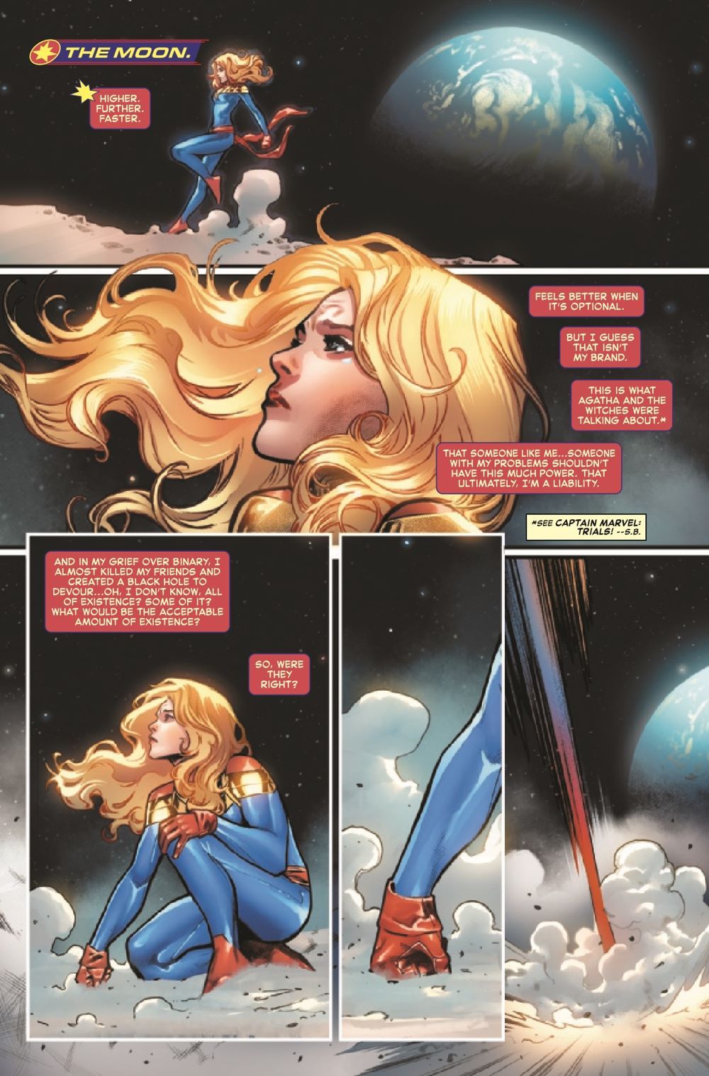 FINAL ISSUE OF KELLY THOMPSON'S HISTORIC RUN! It has been an impossible journey - one that's taken Carol Danvers across time and space and pitted her against enemies new and old. Superstar writer Kelly Thompson has run Marvel's premier heroine through the gauntlet, and now the boss of space burns brighter than ever. No one believed she would get this far. But that's the power of Captain Marvel and her Carol Corps: They will never give up. Higher, further, faster - to the very end. Do not miss this capstone to a record-breaking run as Thompson puts her final fingerprints on Earth's Mightiest Hero!