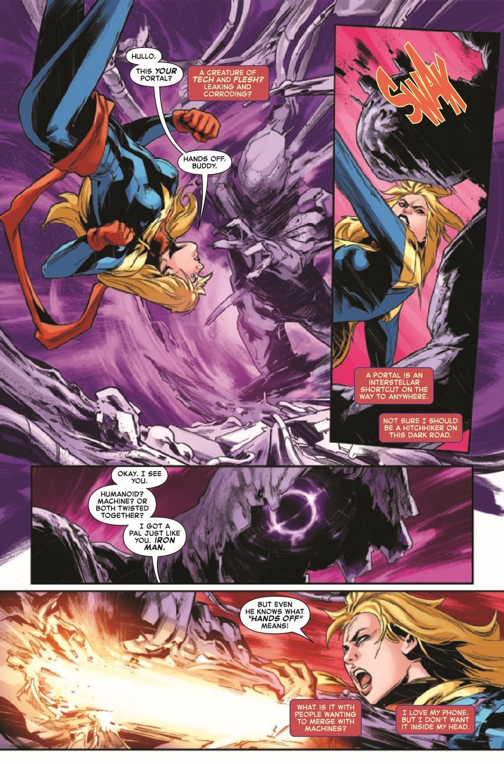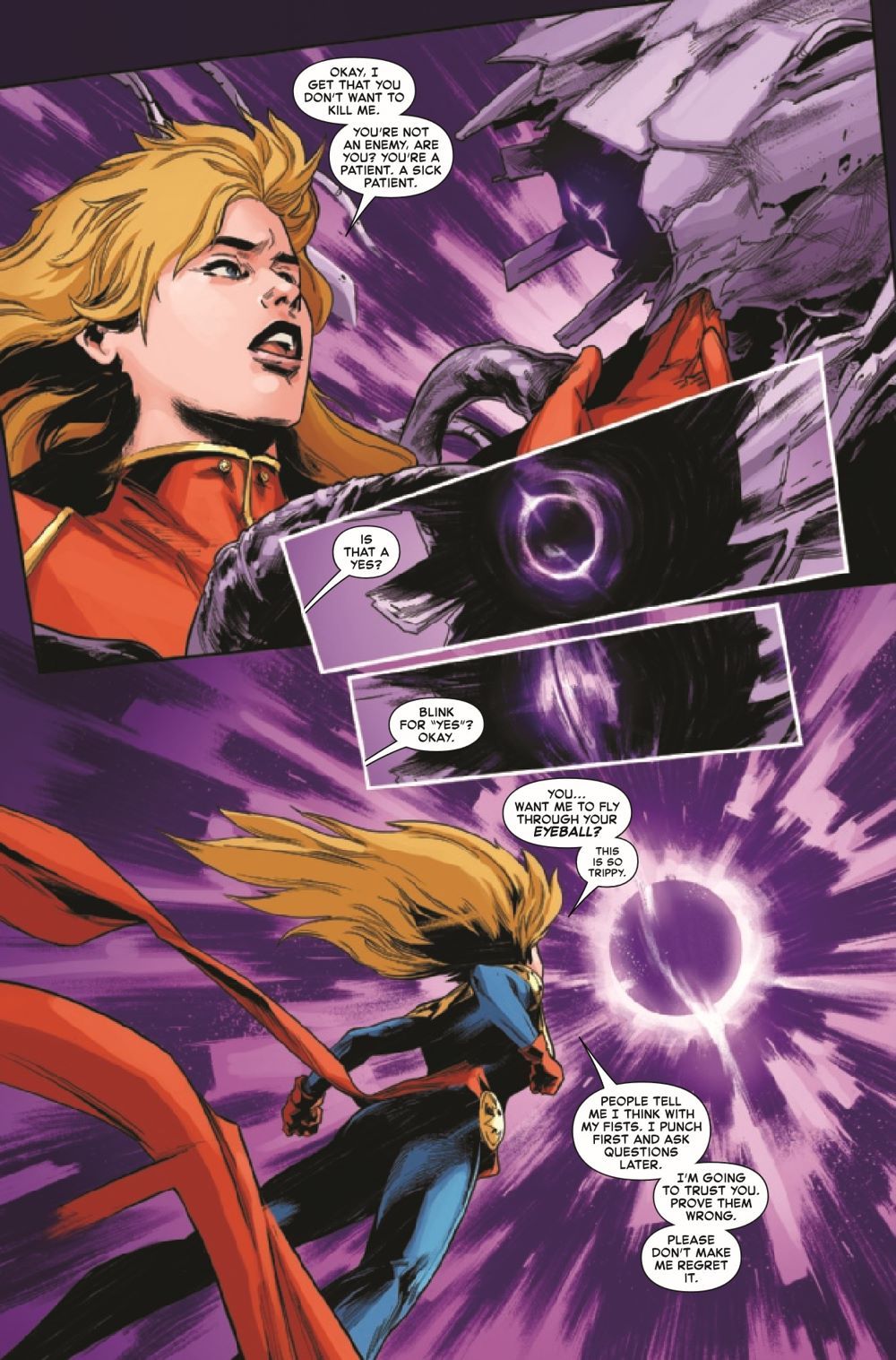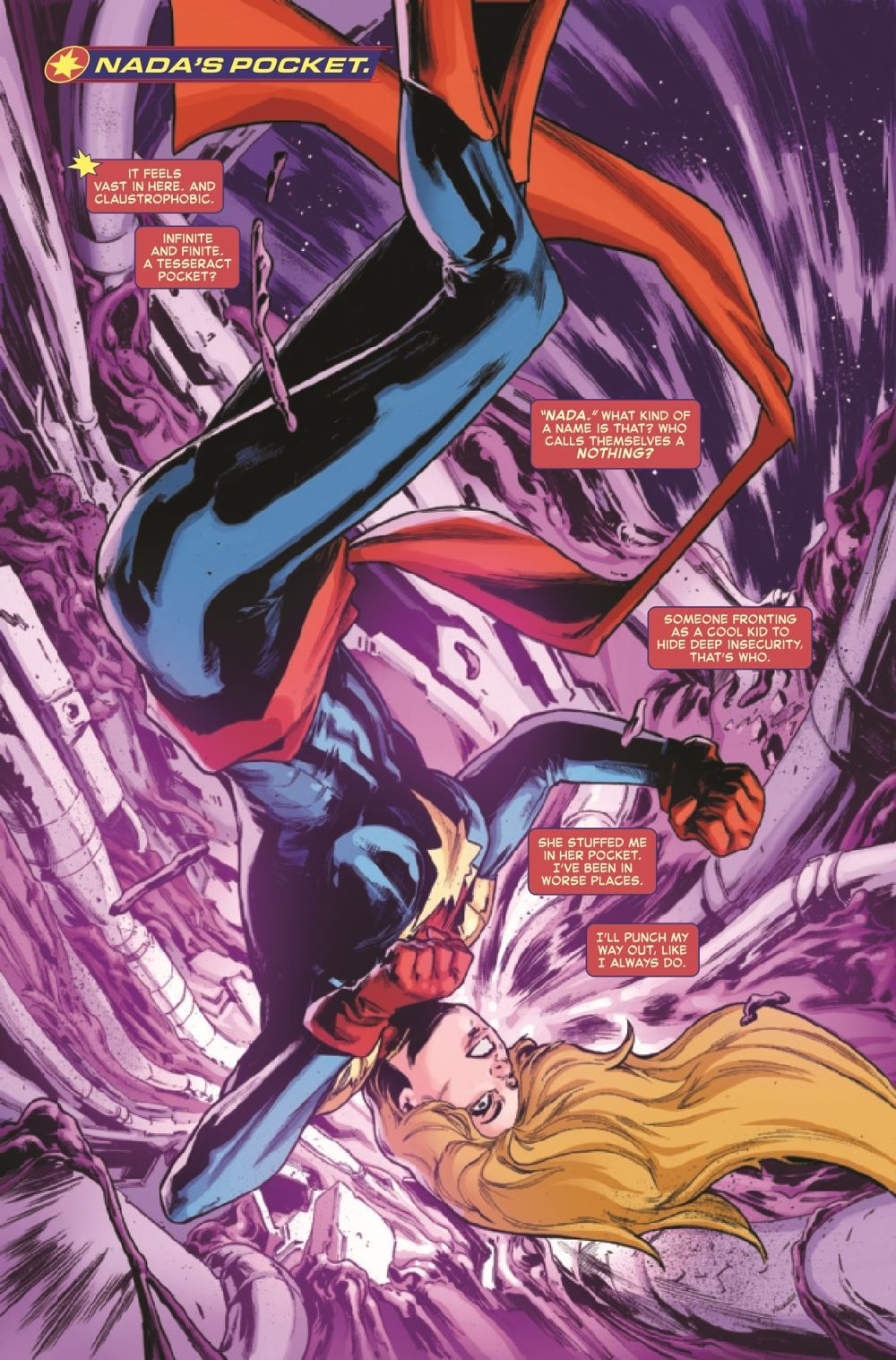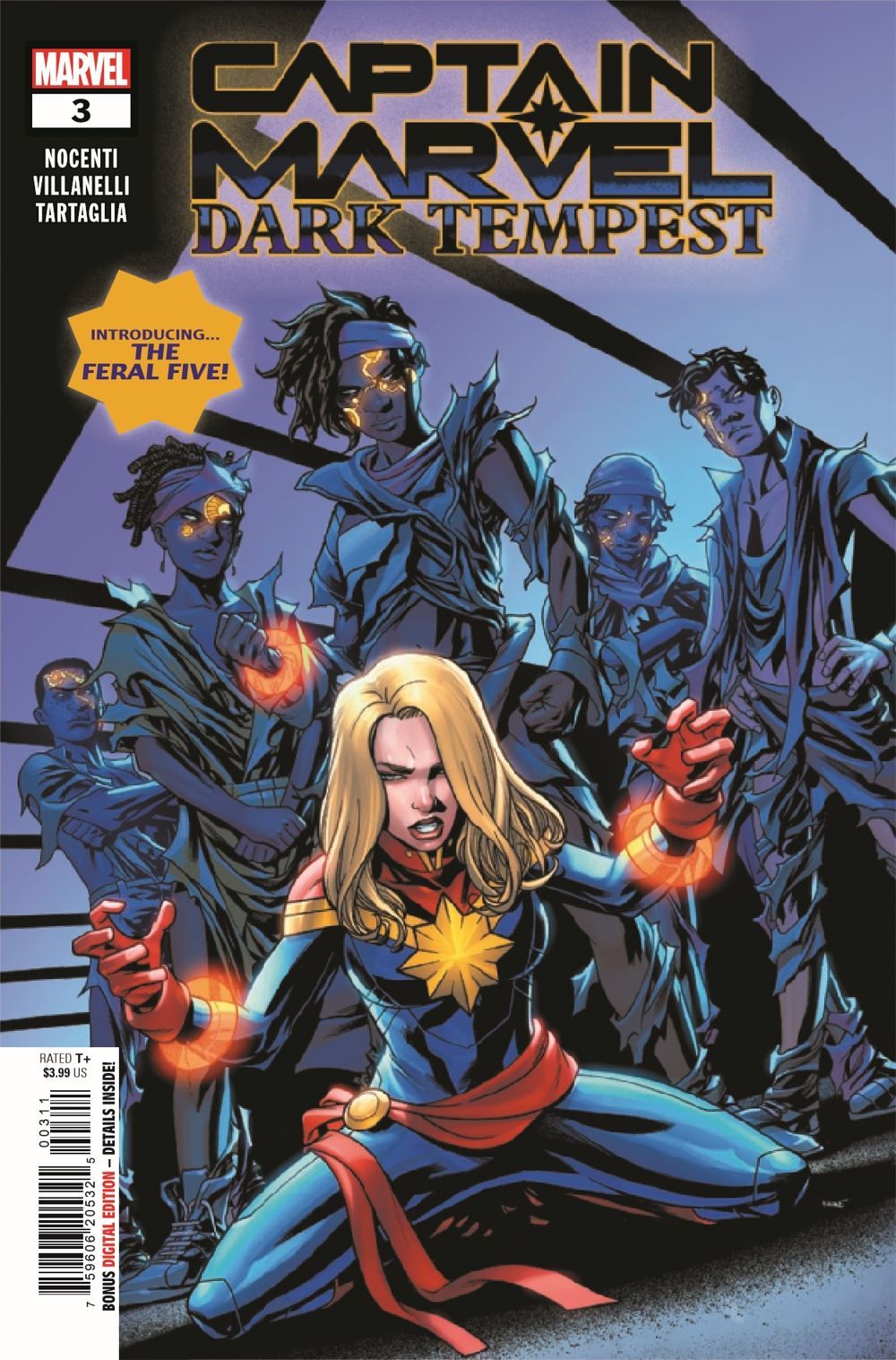 INTRODUCING THE FERAL FIVE! The villainous duet of NADA and NITRO are out to make a choir - by recruiting Captain Marvel's furious teenage charges! Gifted with incredible dark powers, the Feral Five - siblings Zen, Zane and Zaka, and their intrepid leaders Keziah and Blake - are suddenly finding Nada's world-ending visions a lot more appealing than Carol Danvers' goody-two-shoes hero style. Trapped on an alien planet with the man who killed her namesake and besieged by the very people she came to help, has Carol Danvers finally met her match?