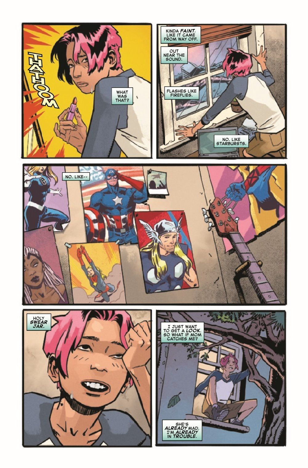 A team of heroes fights a stirring battle for the safety of the planet. A young woman struggles with desperation and despair, trying to cope in the modern world. But that's only the beginning. Superstar creators MARK WAID (Kingdom Come, FANTASTIC FOUR) and COLLEEN DORAN (SPIDER-MAN, A Distant Soil) tell a tale of inspiration within inspiration, as we see how the world's marvels have inspired others - and how they've been inspired themselves. Featuring Captain Marvel, Ms. Marvel and a few surprises.