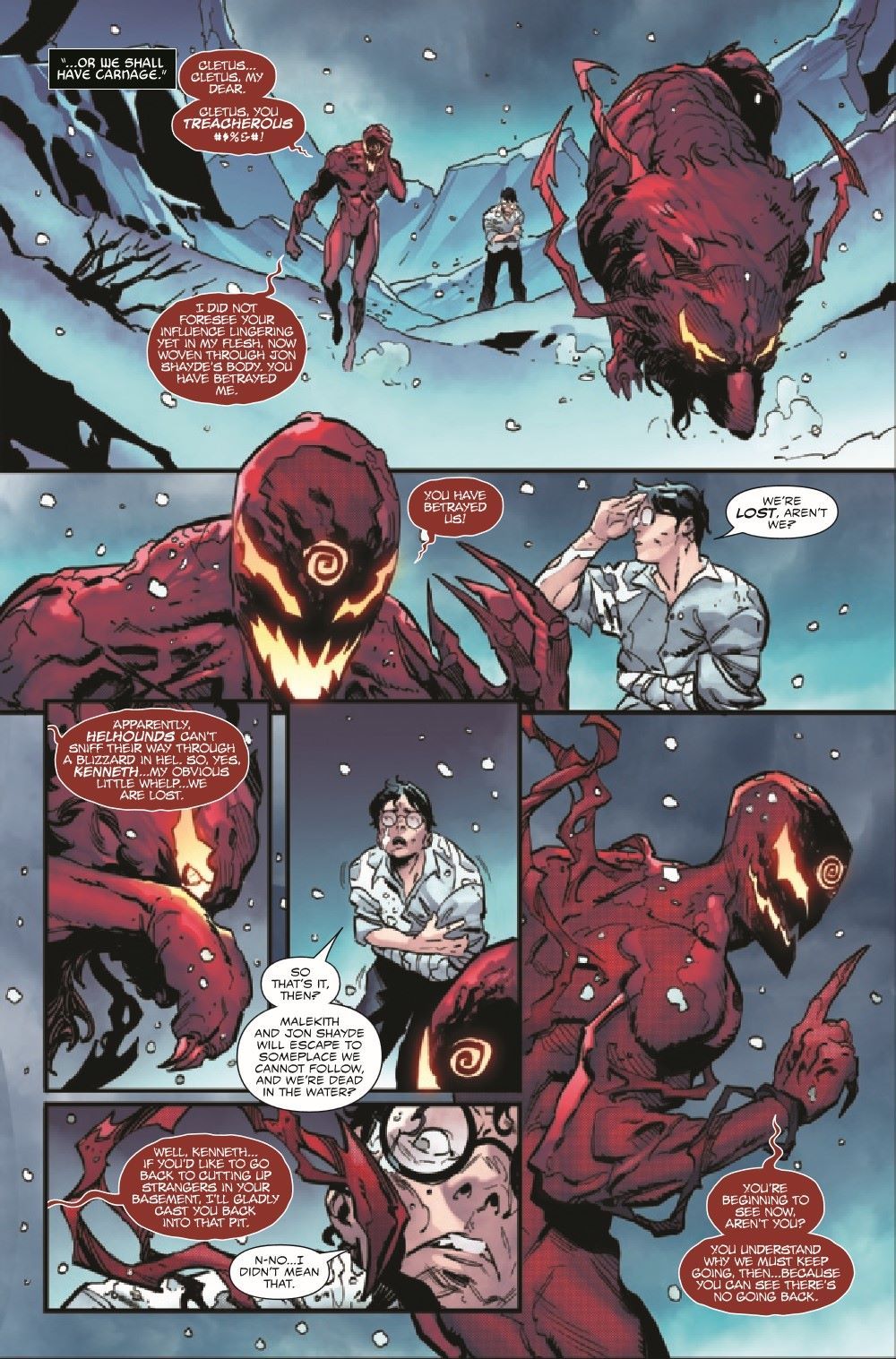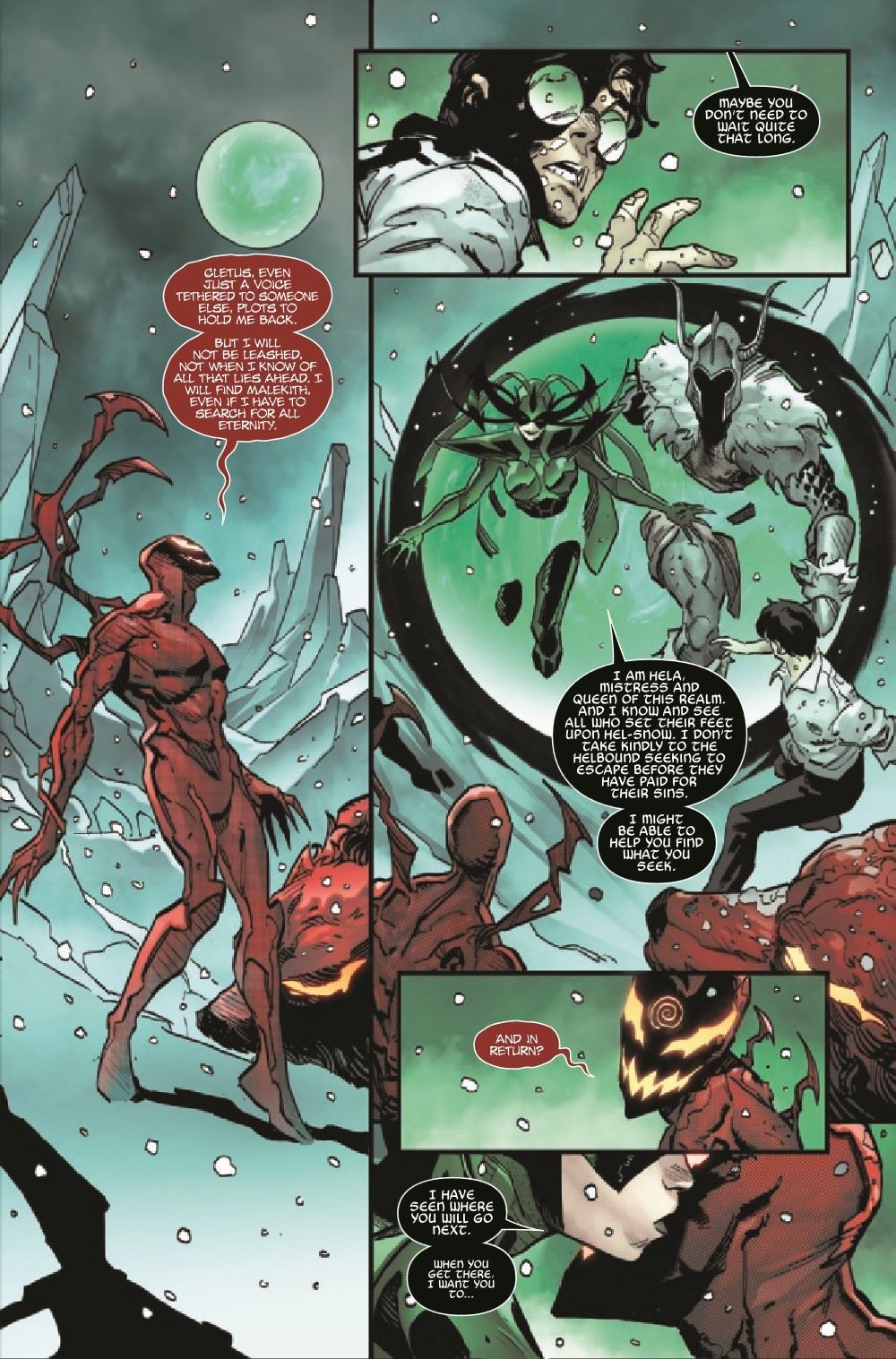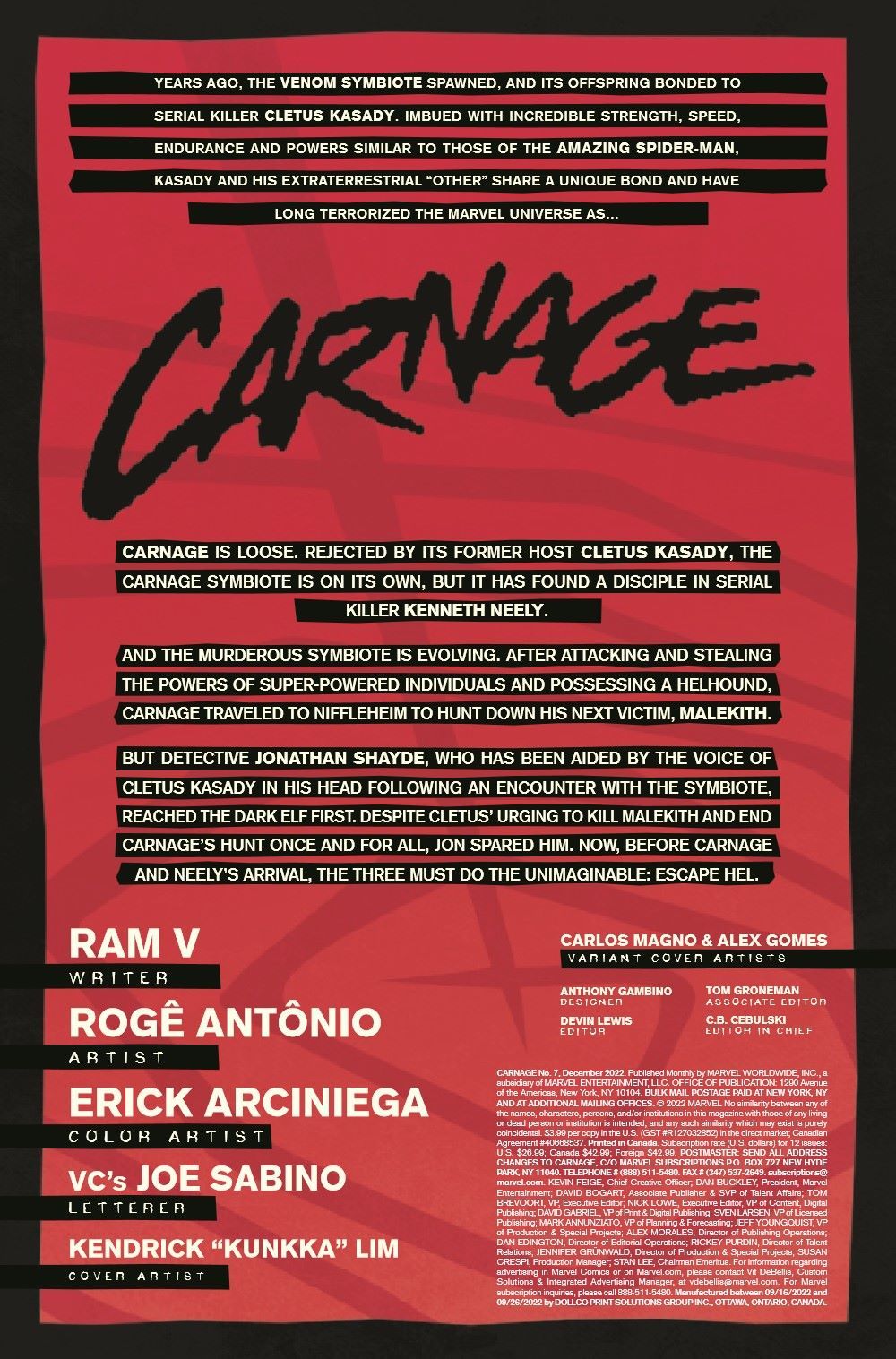 CARNAGE IN HELL - PART II! With violence and glory on its mind, the Carnage symbiote continues to carve a bloody path through the underworld with the singular goal of reaching MALEKITH THE ACCURSED. But what does Carnage want with the disgraced lord of the Dark Elves, and what does it have to do with Venom and Eddie Brock?