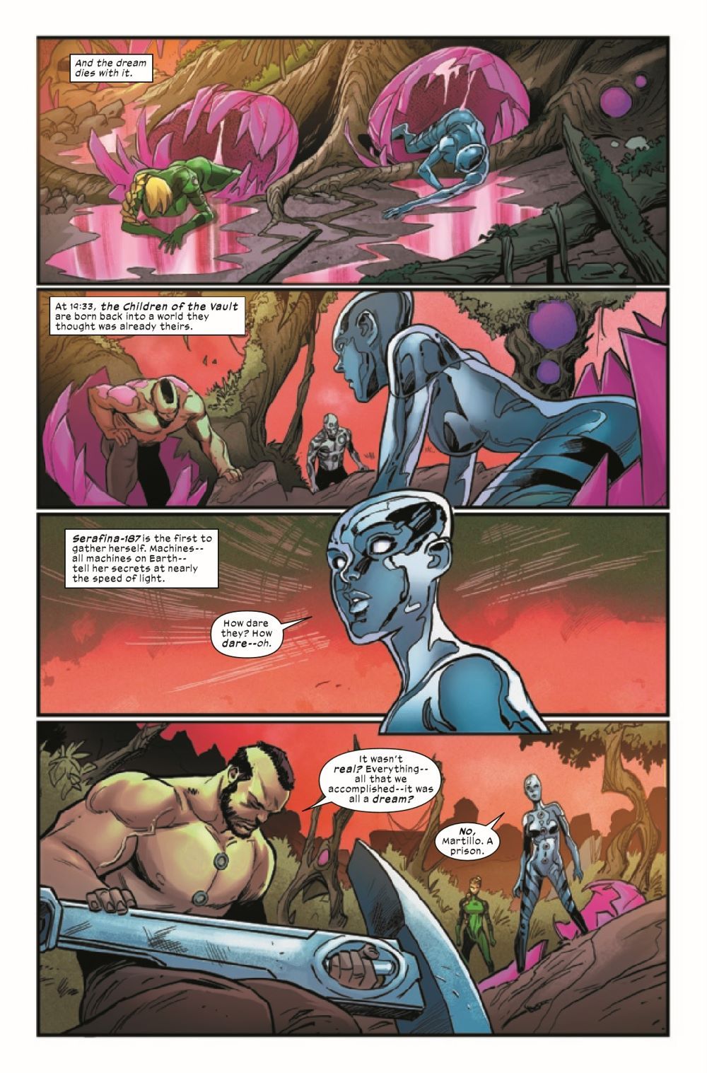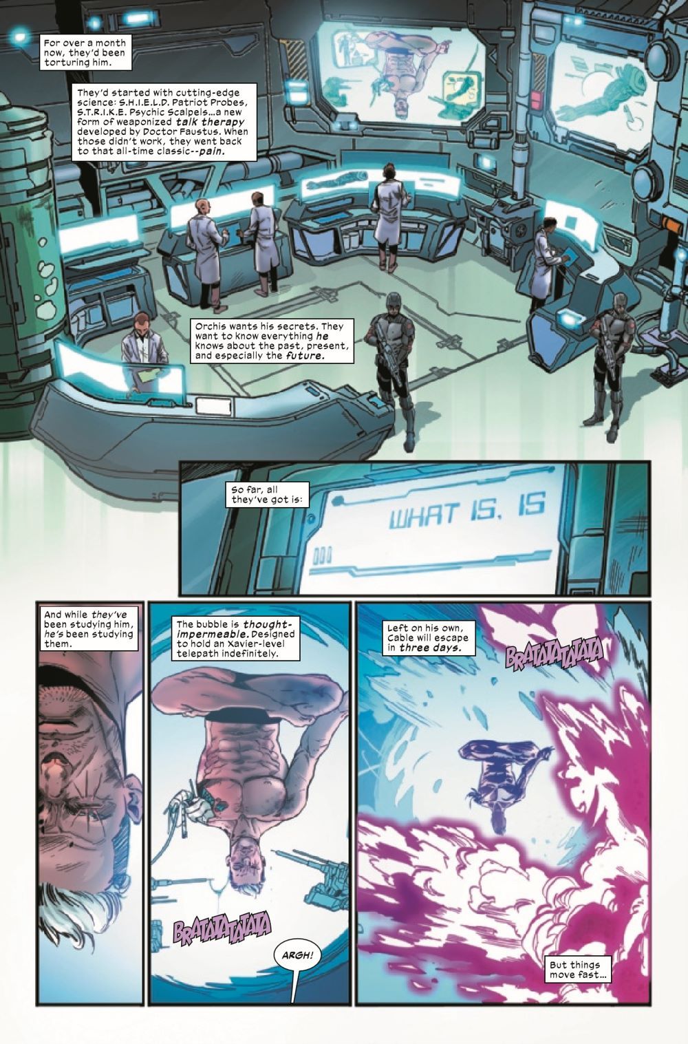 TO SAVE THE FUTURE! The Children of the Vault are back, and they are determined to be humanity's salvation! But not everything is as it seems, and every utopia has its costs. What is the motivation behind these highly evolved beings gifting the world with their advanced technology? And how do Bishop and a now-Orchis-captured Cable figure into their plans? Find out in rising stars Deniz Camp and Luca Maresca's miniseries!
