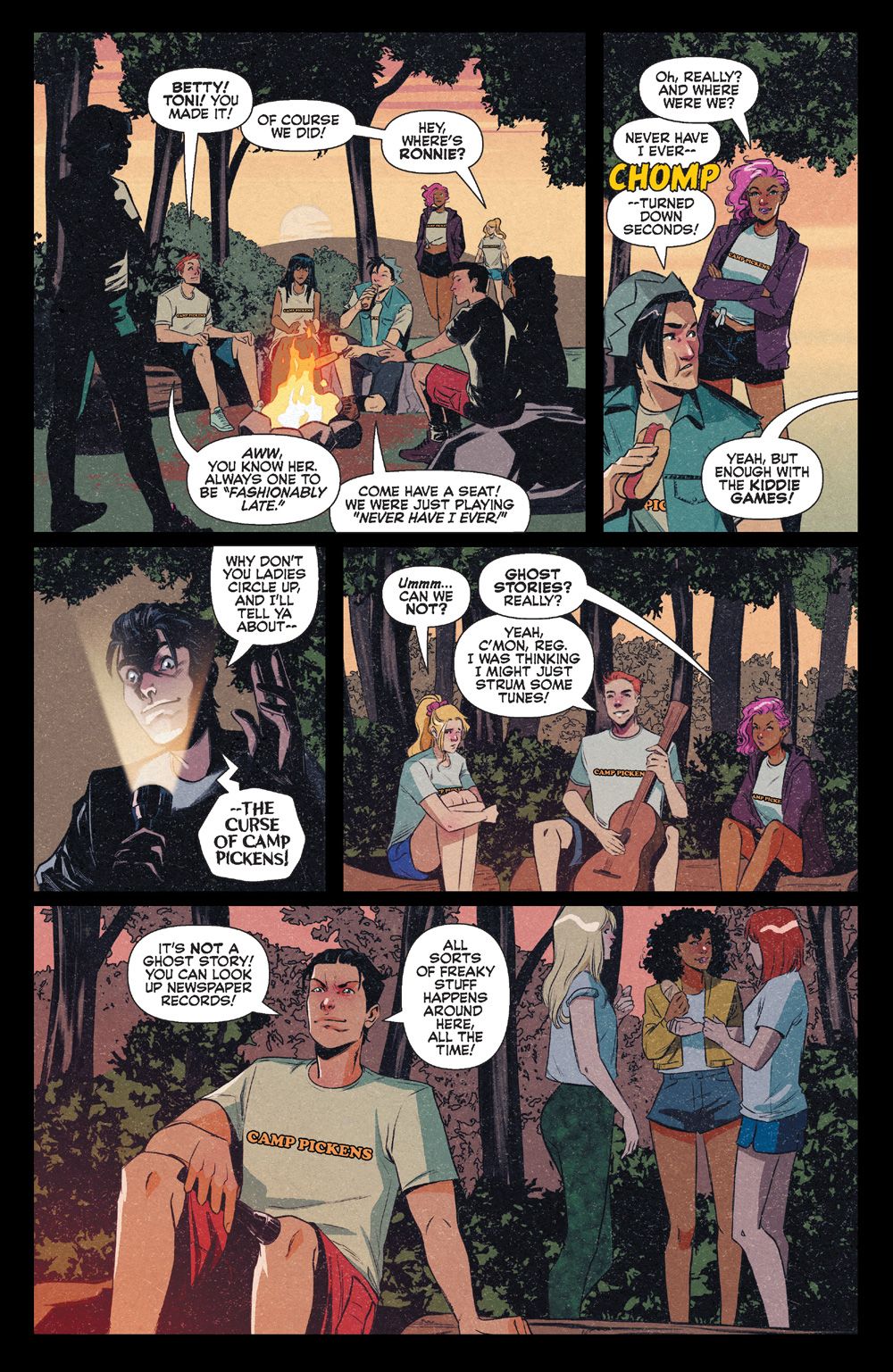 Camp Pickens has always been the go-to summer destination for the younger residents of Riverdale. It's a rite of passage for the teen residents to hold the coveted camp counselor positions. However, Camp Pickens' mysterious past shrouds a deep, dark secret: it's cursed, and this summer all of its campers are going to find out the hard way in this one-shot anthology that's equal parts Sleepaway Camp and American Horror Story: 1984, reuniting the team behind the mega-hit comic series Revival.