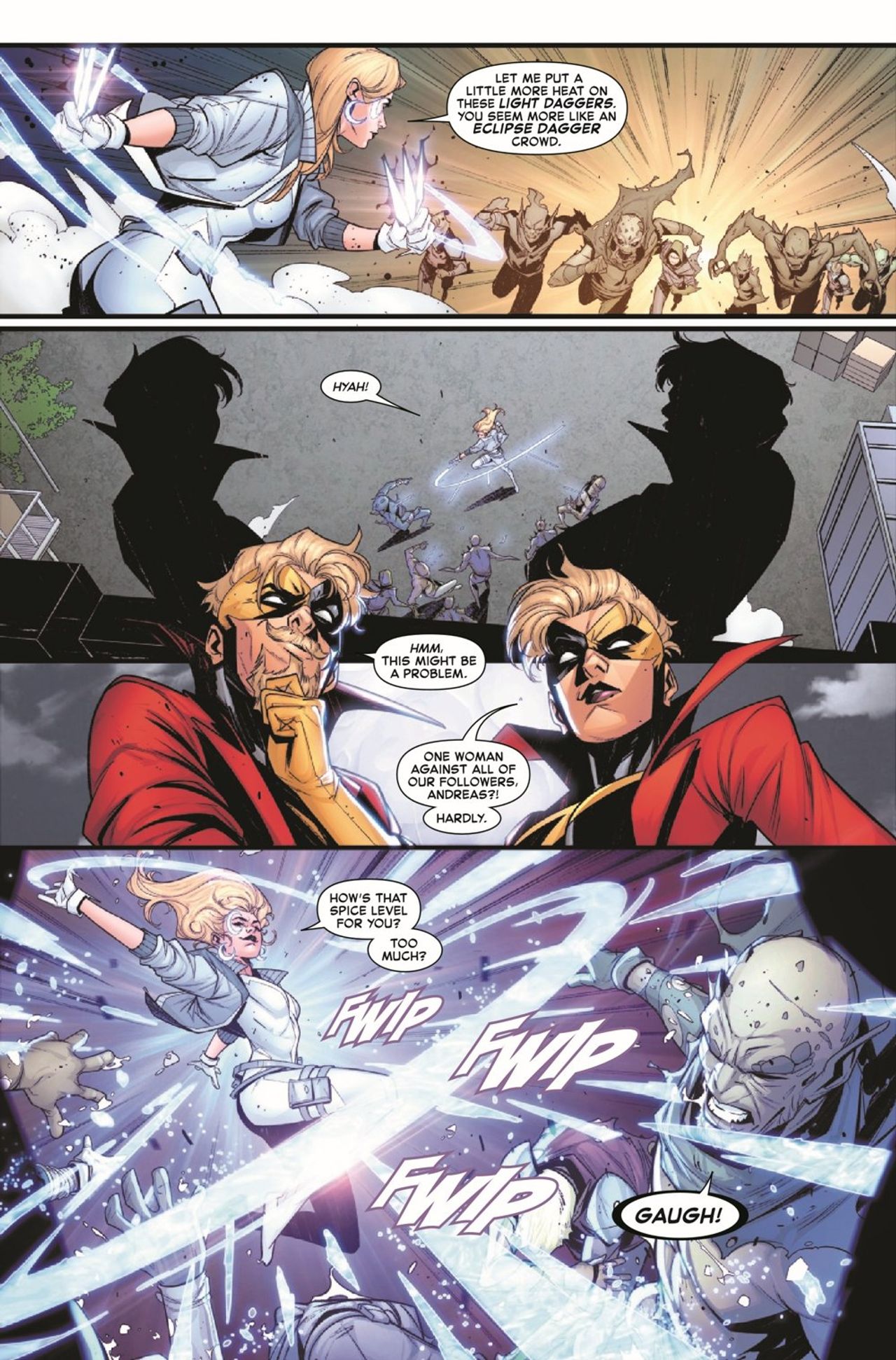 RACE AGAINST TIME! X YEARS LATER, the Fenris Twins have cornered Cloak, and it's not looking good. Dagger has one final card to play, but using it could tear our heroes - and what's left of the fabric of reality - apart for good…
