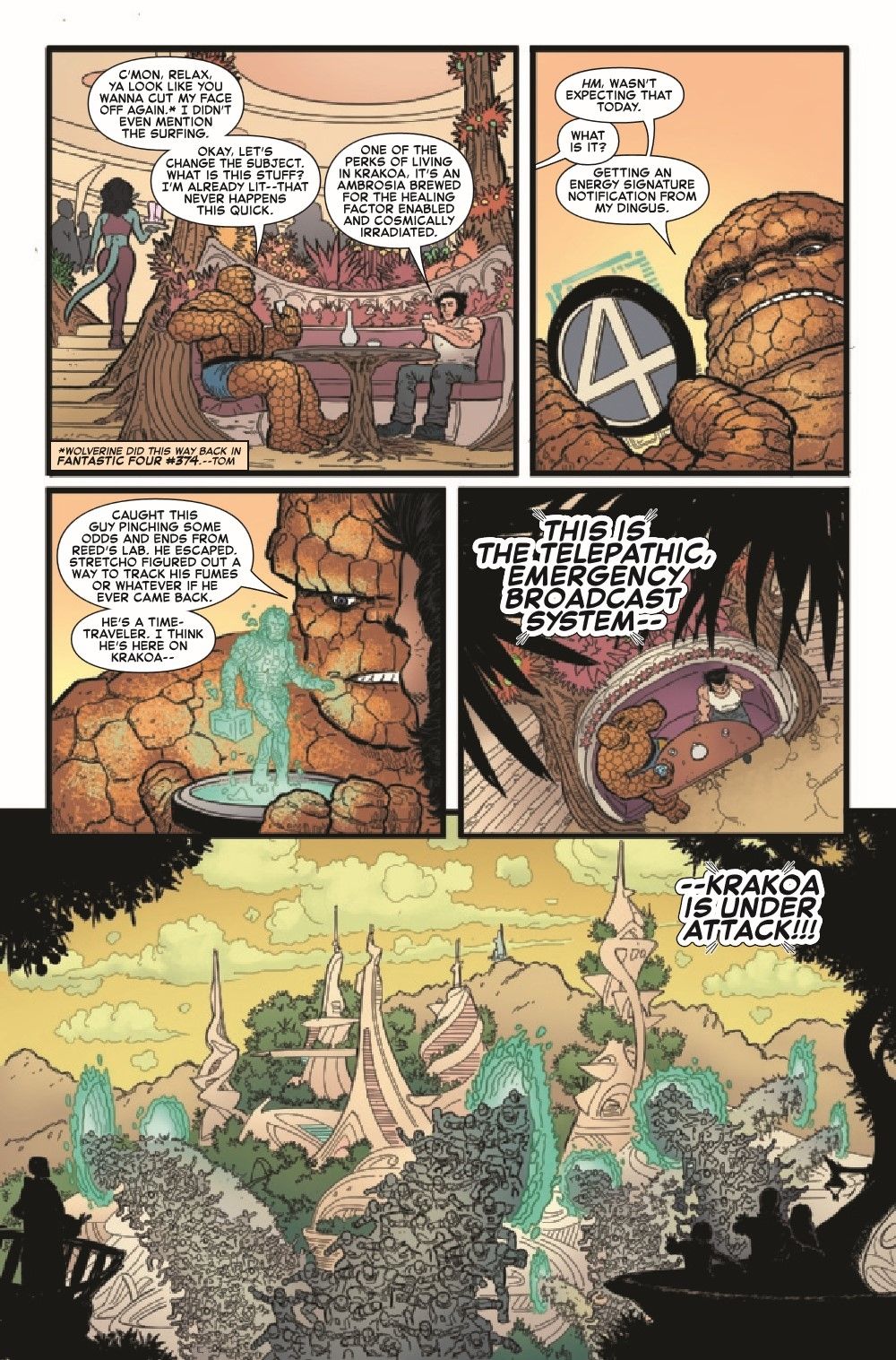 The THING travels to Krakoa for a symposium on the Mutant and Superhuman Interconnection. While there, he teams up with Wolverine and is confronted by the mysterious plunderer from issue #1 — and the table is set for a battle for all creation and possibly Ben Grimm's greatest adventure.