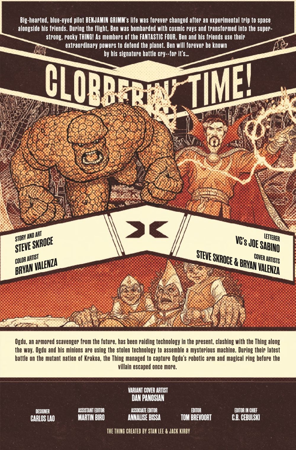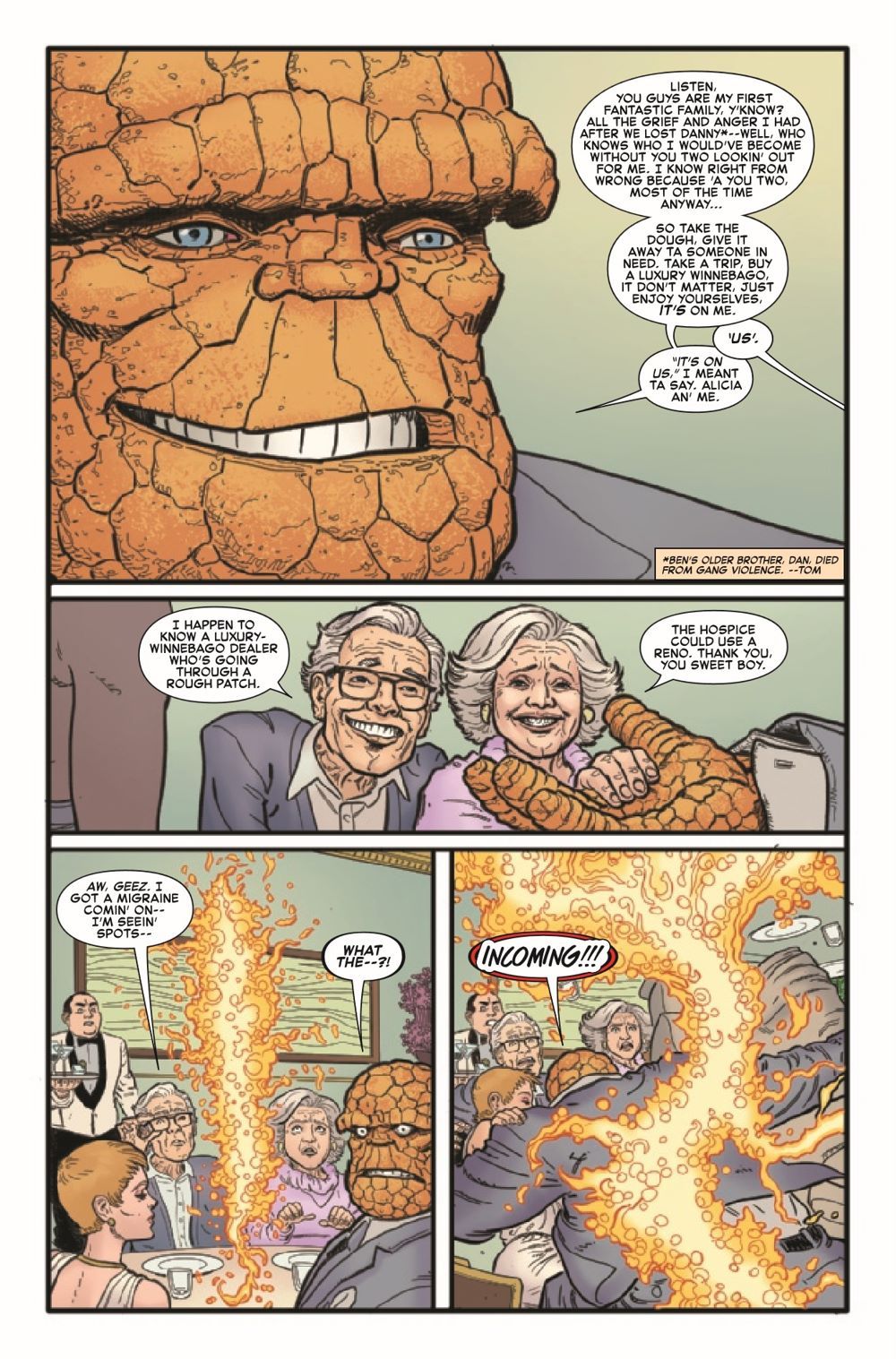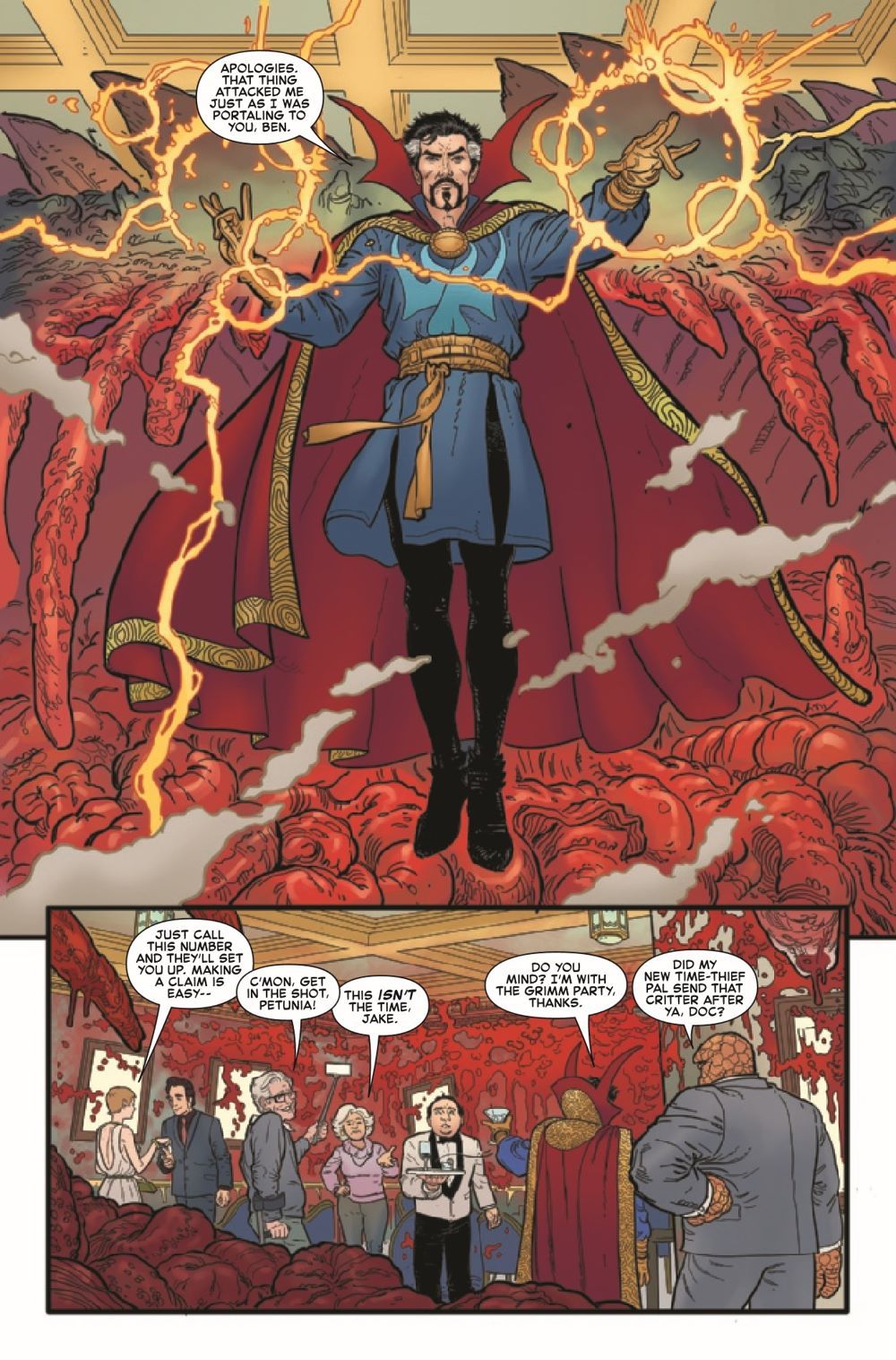 Ben Grimm travels to the Jersey Shore (and beyond) for a Grimm family reunion. Things get even more awkward when Doctor Strange shows up with information about the time-and-space-traveling thief who's been haranguing the THING. Don't miss part three of the greatest THING story ever told, as far as we know...