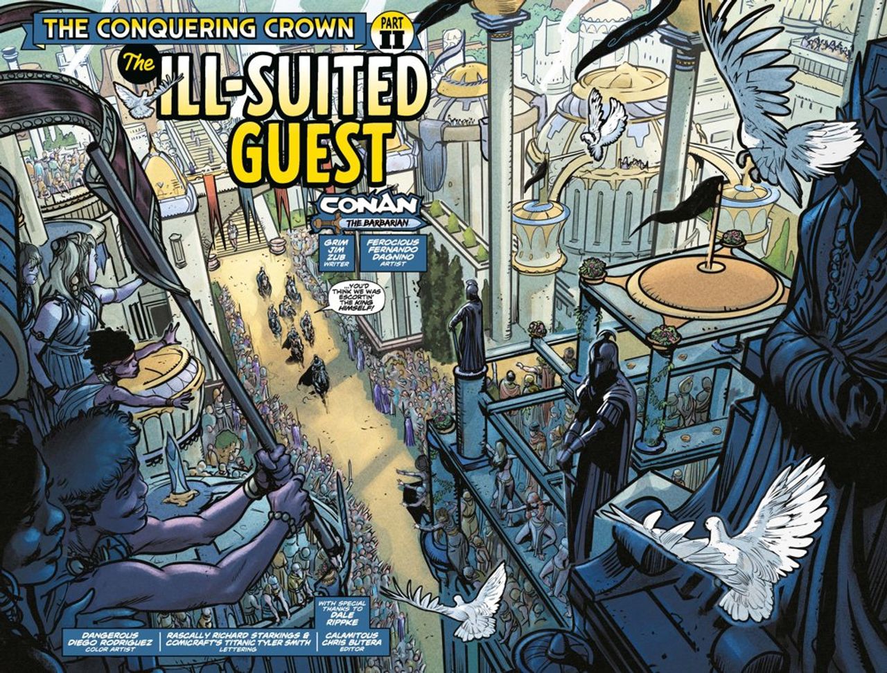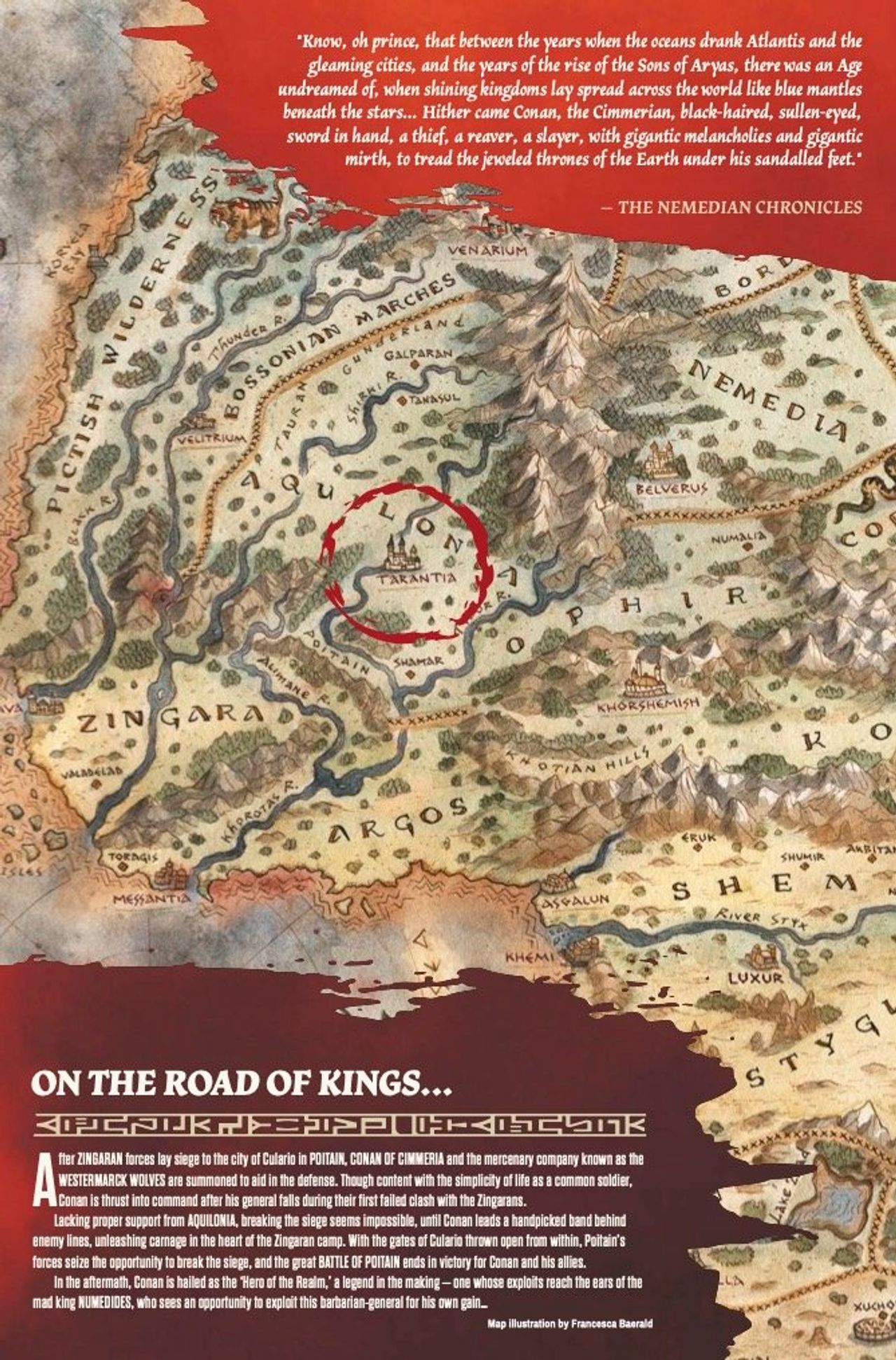THE CONQUERING CROWN: The King of Aquilonia has gone mad, or so the rumors say. A tyrant sits upon the throne and all will suffer until he is deposed or dead.