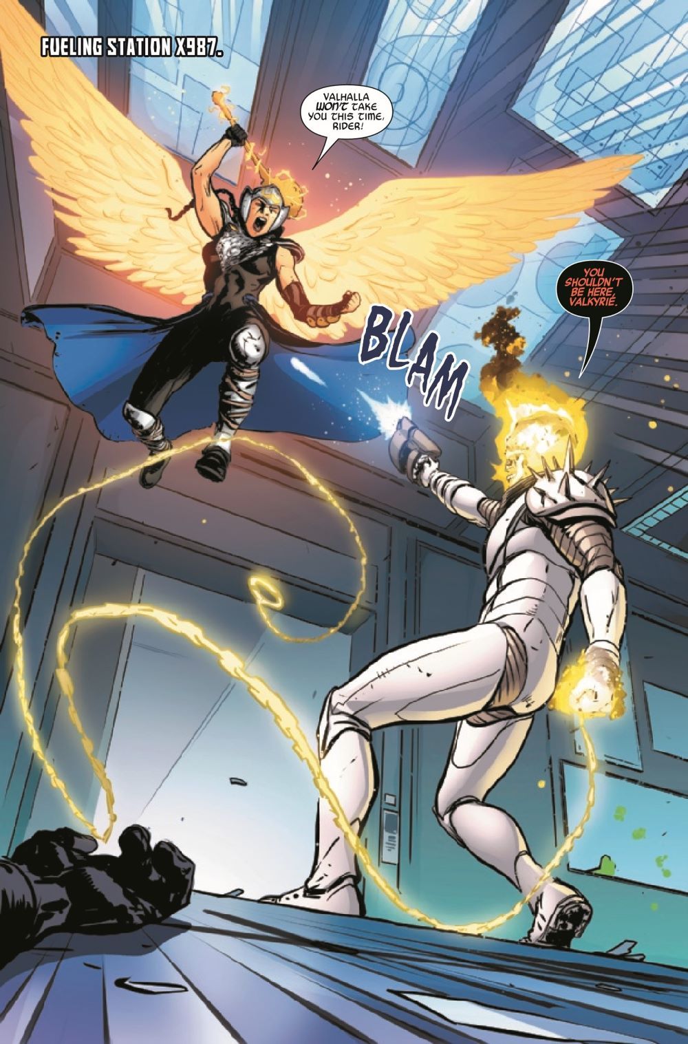 VALKYRIE VS. COSMIC GHOST RIDER! It's the mighty Valkyrie versus Cosmic Ghost Rider - but which of the now TWO Riders is she facing?! As the mystery deepens, the two Cosmic Ghost Riders draw closer to one another for a final confrontation in the depths of space. But first, they both must survive the bevy of bounty hunters, heroes and villains in hot pursuit!