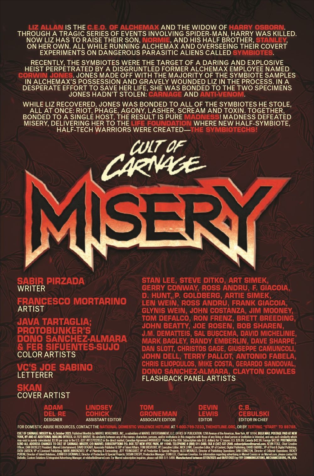 A FIGHT AGAINST MADNESS! The new symbiotic monstrosity called Madness inadvertently forced Liz Allan to bond to the all-new MISERY symbiote, changing both her life and the world of the symbiotes FOREVER! Imbued with all the powers and personalities of the LIFE FOUNDATION SYMBIOTES (and more!), Madness is a symbiotic force unlike any other in the Marvel Universe. There is nowhere that Liz Allan can go where Madness cannot follow, no one she can ask for help who Madness cannot destroy and nothing she can do to stop the brutality of its onslaught.