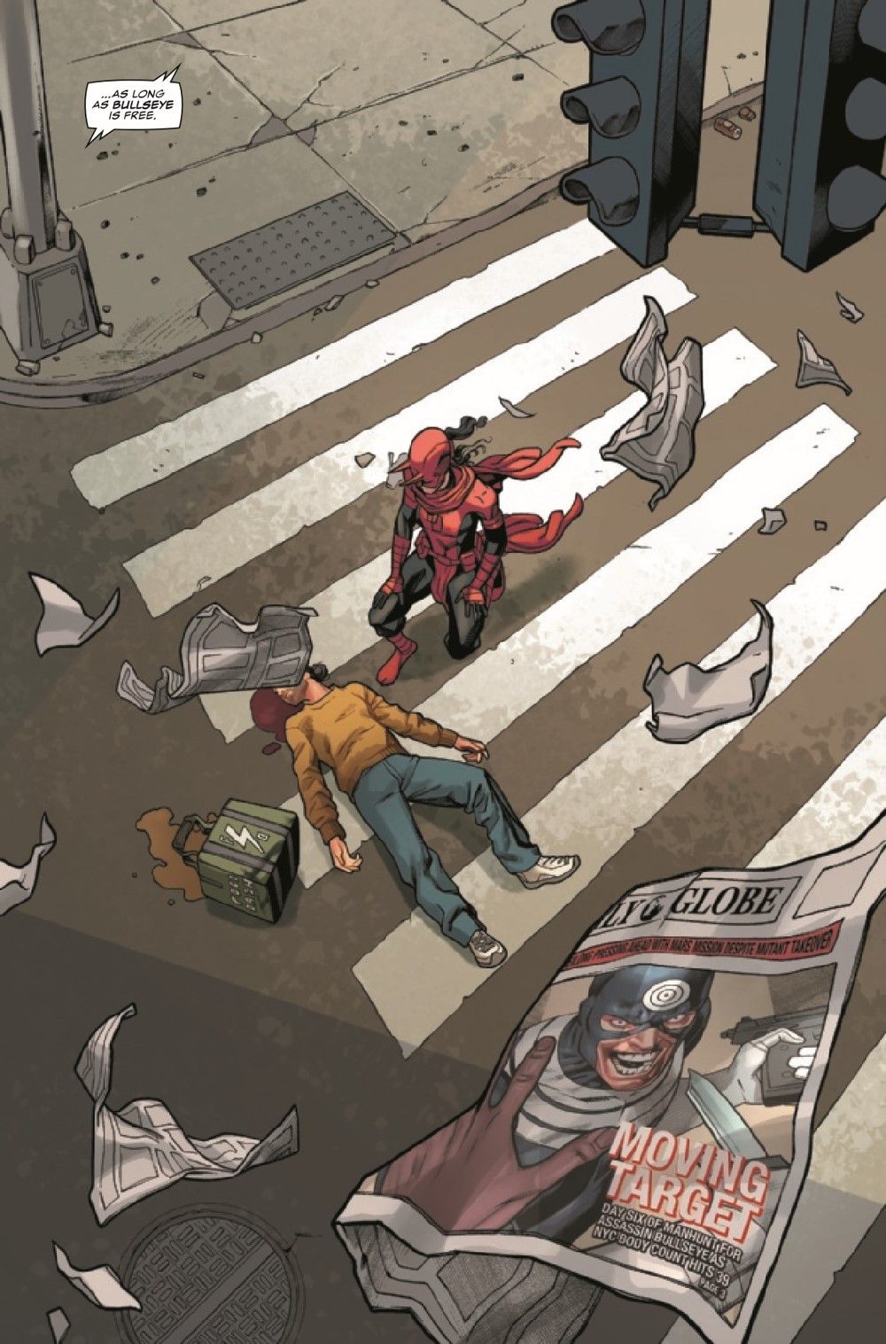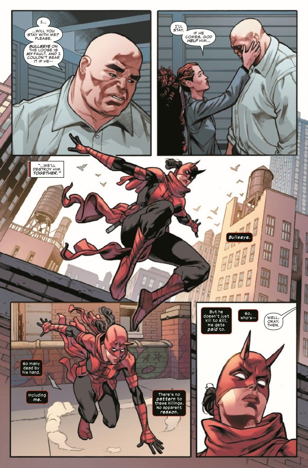 "LOCKDOWN" STARTS HERE! The Angel of Death has come to Hell's Kitchen and New York City. A series of grisly murders tests Elektra's mettle and commitment to her role as the new DAREDEVIL, as the city spirals in a state of near panic. Meanwhile, Matt Murdock faces tests and challenges of his own, as the inmates he's serving time alongside aren't the ones in the prison targeting him...