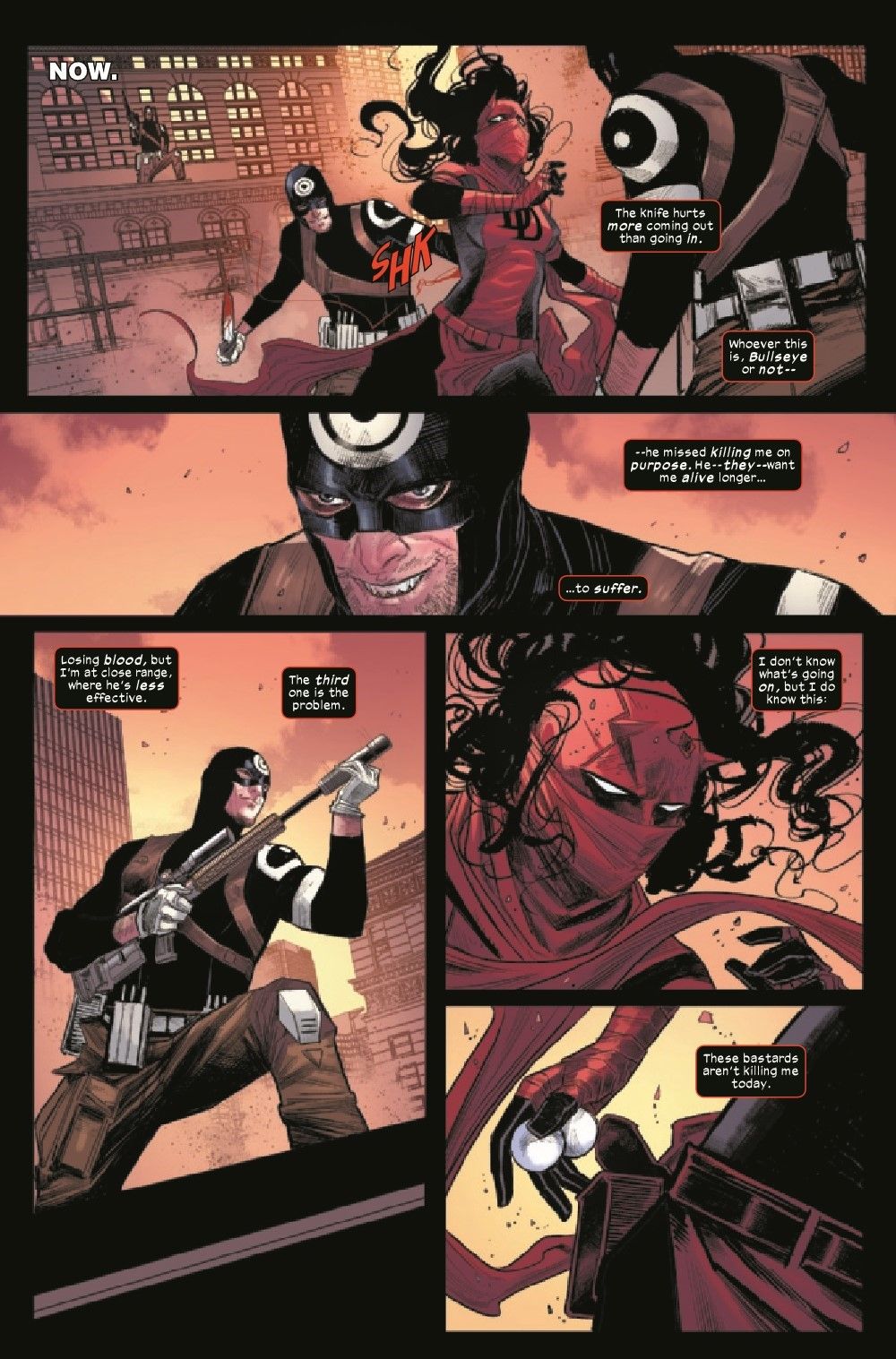 "LOCKDOWN" CONTINUES! Elektra faces her greatest challenge as DAREDEVIL yet, as a serial killer is on the loose in Manhattan and killing innocent people. But even the deadliest assassin in the Marvel Universe is at somewhat of a loss, because this killer can be in more than one place at one time. A team? A mutant? Or something else entirely? Whoever or whatever they are, they have a thirst for blood, and Elektra will put herself directly in their sights! PLUS: Matt Murdock faces challenges of his own in prison after being exposed to a dangerous and experimental compound called RE-CID that makes those subjected to it more aggressive and violent. Whatever happens, one thing is certain - Daredevil isn't getting time off for good behavior...