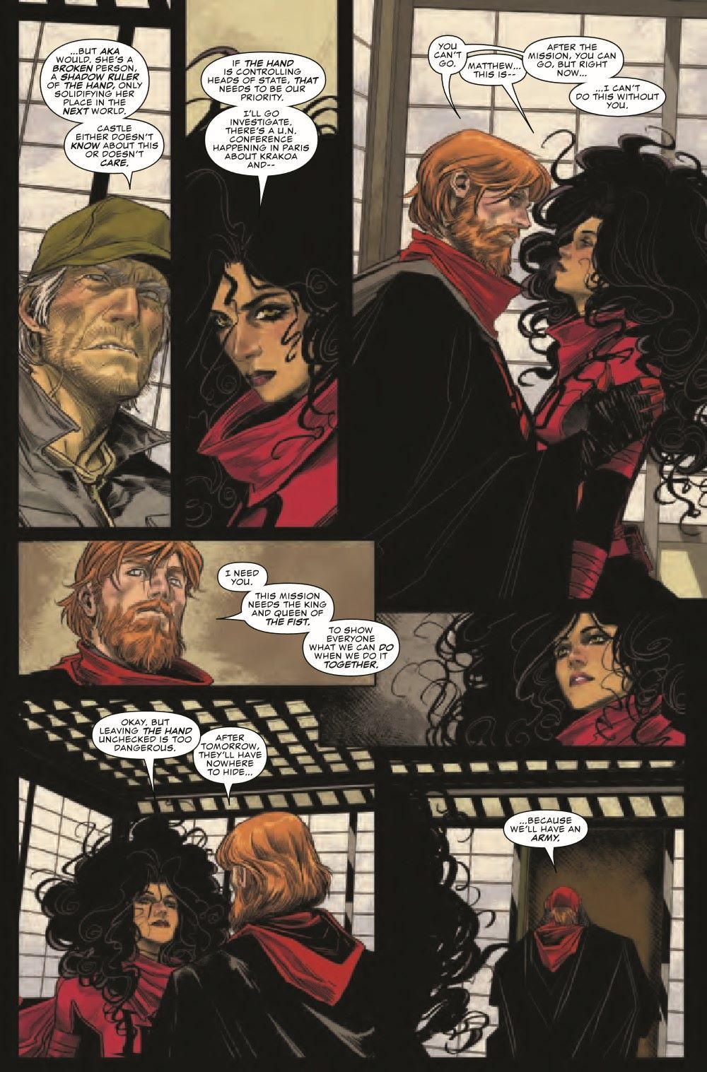 After the biggest change to befall Matt Murdock in decades in the pages of DAREDEVIL #4, Matt Murdock and Elektra Natchios embark on establishing a new world order, hand in hand.