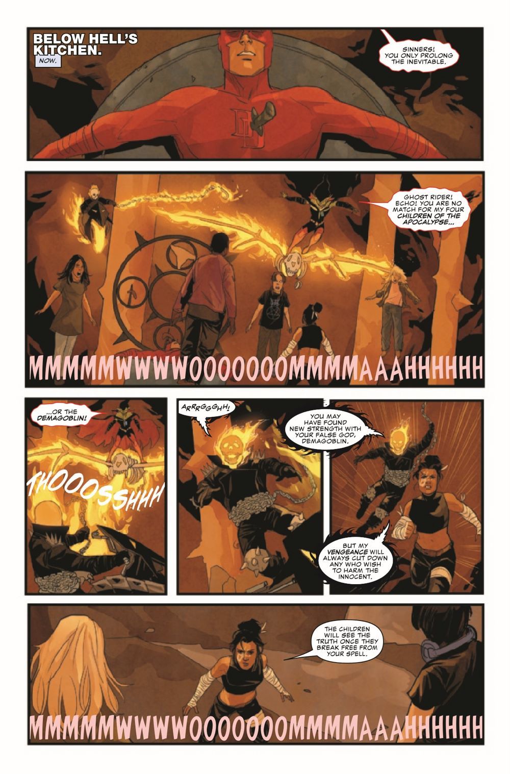 THE SINS OF THE PAST ARE ALIVE - AND ANGRY! DAREDEVIL and ECHO face not only the nefarious DEMAGOBLIN, but a bigger, wilder and much, much, MUCH older enemy - one that has had its hooks in Hell's Kitchen for generations… This dark night of the soul will ask - will DEMAND - what our heroes are willing to give to stop all-consuming evil! Don't miss this issue as our saga comes to a blazing conclusion!