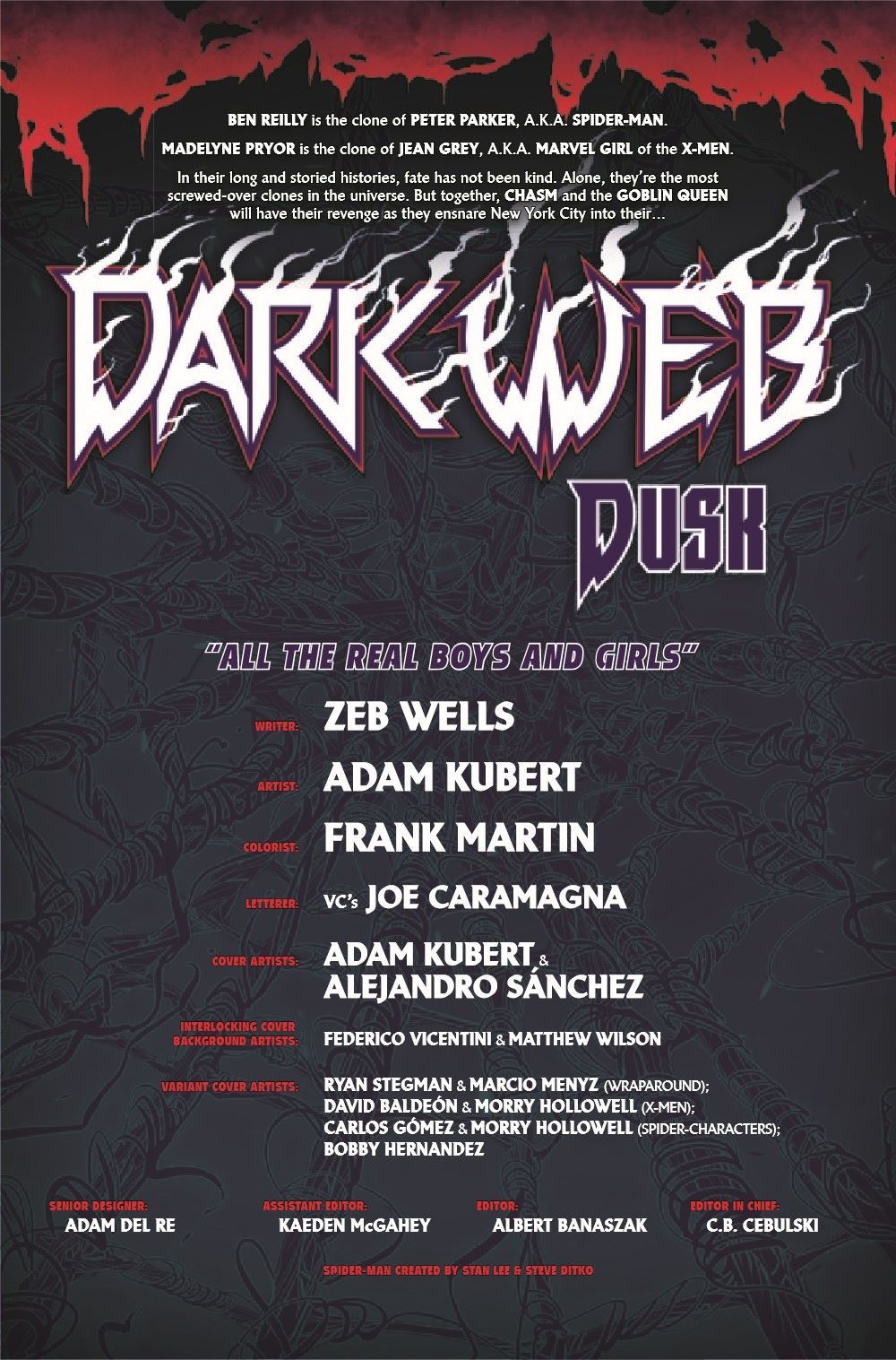 DUSK! The two most famous clones ever are back to take what's theirs. Ben Reilly and Madelyne Pryor have had enough and are reigniting the INFERNO! Spider-Man and the X-Men are not ready for what's coming, and what role does Venom have in all of this? The sun is setting, dusk is approaching, and it's going to be a long night.