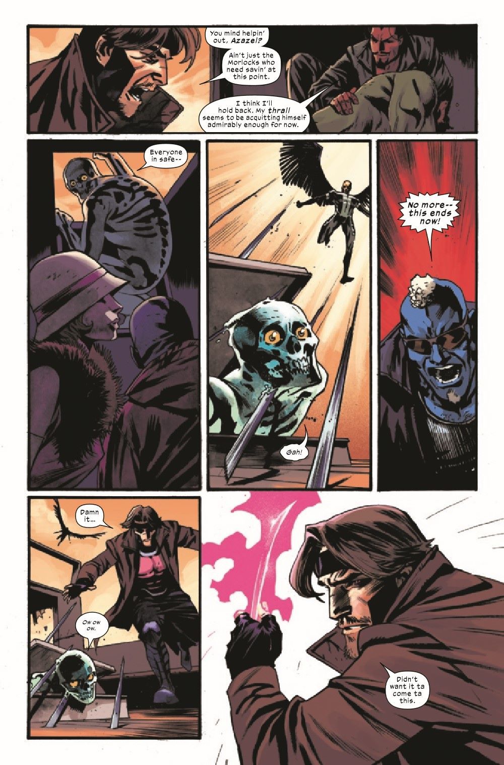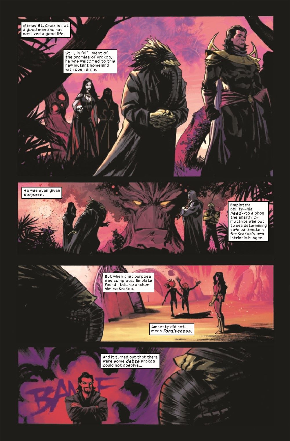 FEAR THE FALLEN! As Gambit tries to save his unruly half of the squad from a watery grave, Madelyne Pryor and Havok confront their nightmares on the other side of the world, leaving Carmen Cruz all alone…aside from the bloodthirsty beast stalking her in the shadows!