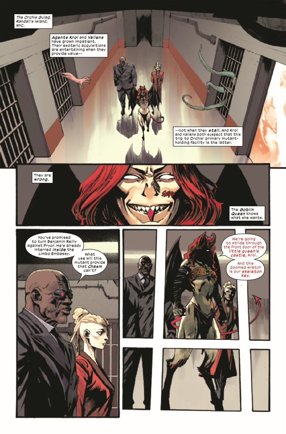 HOSTILE TAKEOVER! The fiend taunting the Dark X-Men from afar leaves a trail of bodies in her wake as terror falls over the Limbo Embassy. Will CHASM join the fight against Orchis…or become Madelyne Pryor's ultimate downfall? And can the Devil ever truly be trusted?