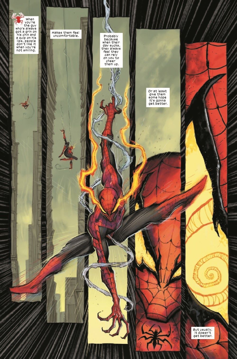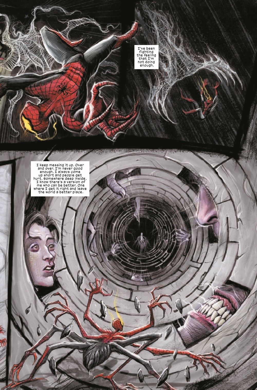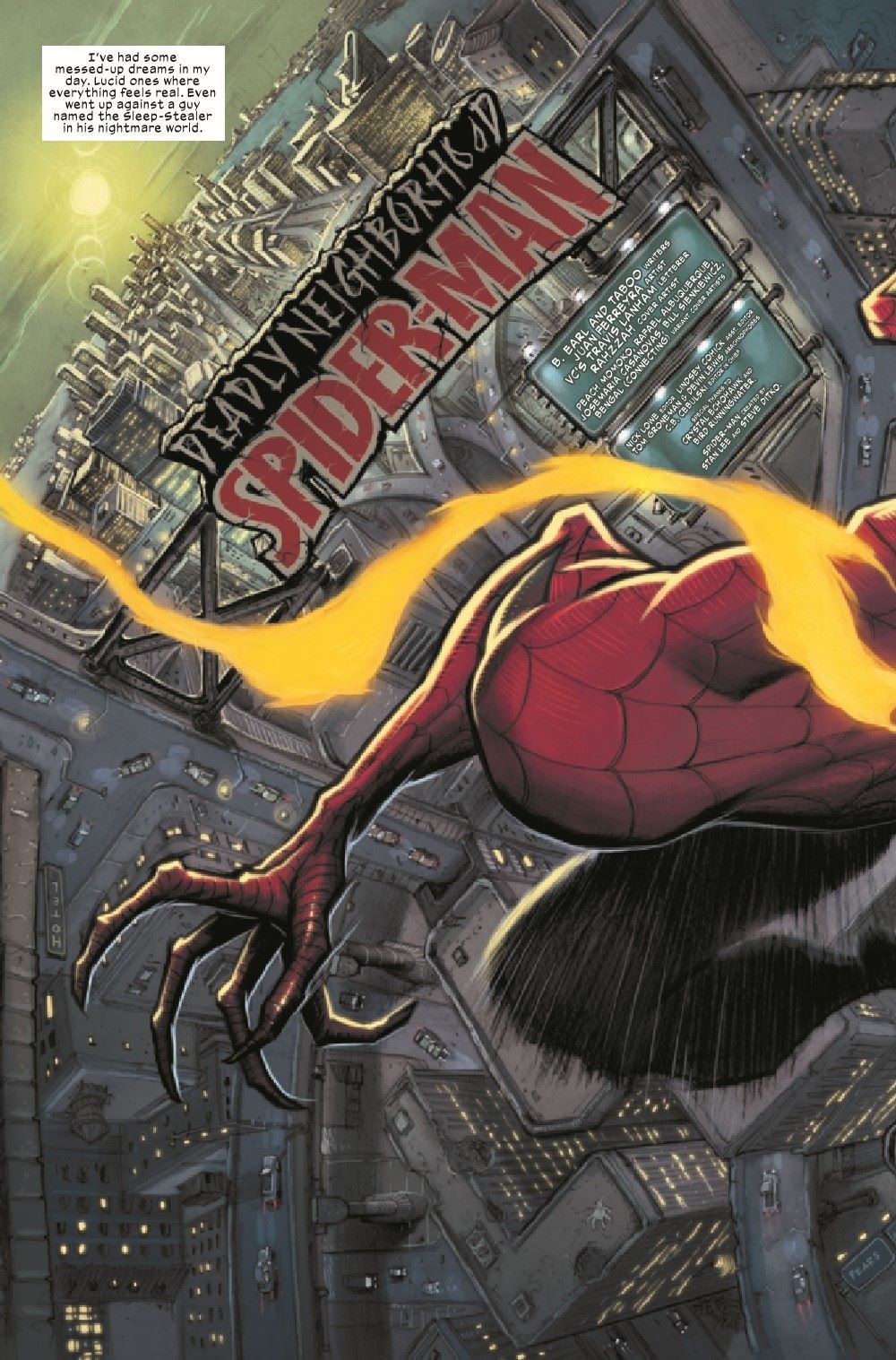 A revolutionary dark take on Spider-Man begins here! What is reality and what is dream? What is science and what is magic? At the intersection of all of this stands the Deadly Neighborhood Spider-Man. Peter Parker goes to Los Angeles and what he finds there are definitely not angels. The demons waiting for Peter are going to test him like never before. One demon in particular, a very famous one for Marvel and X fans in particular, might just eat Spider-Man alive.