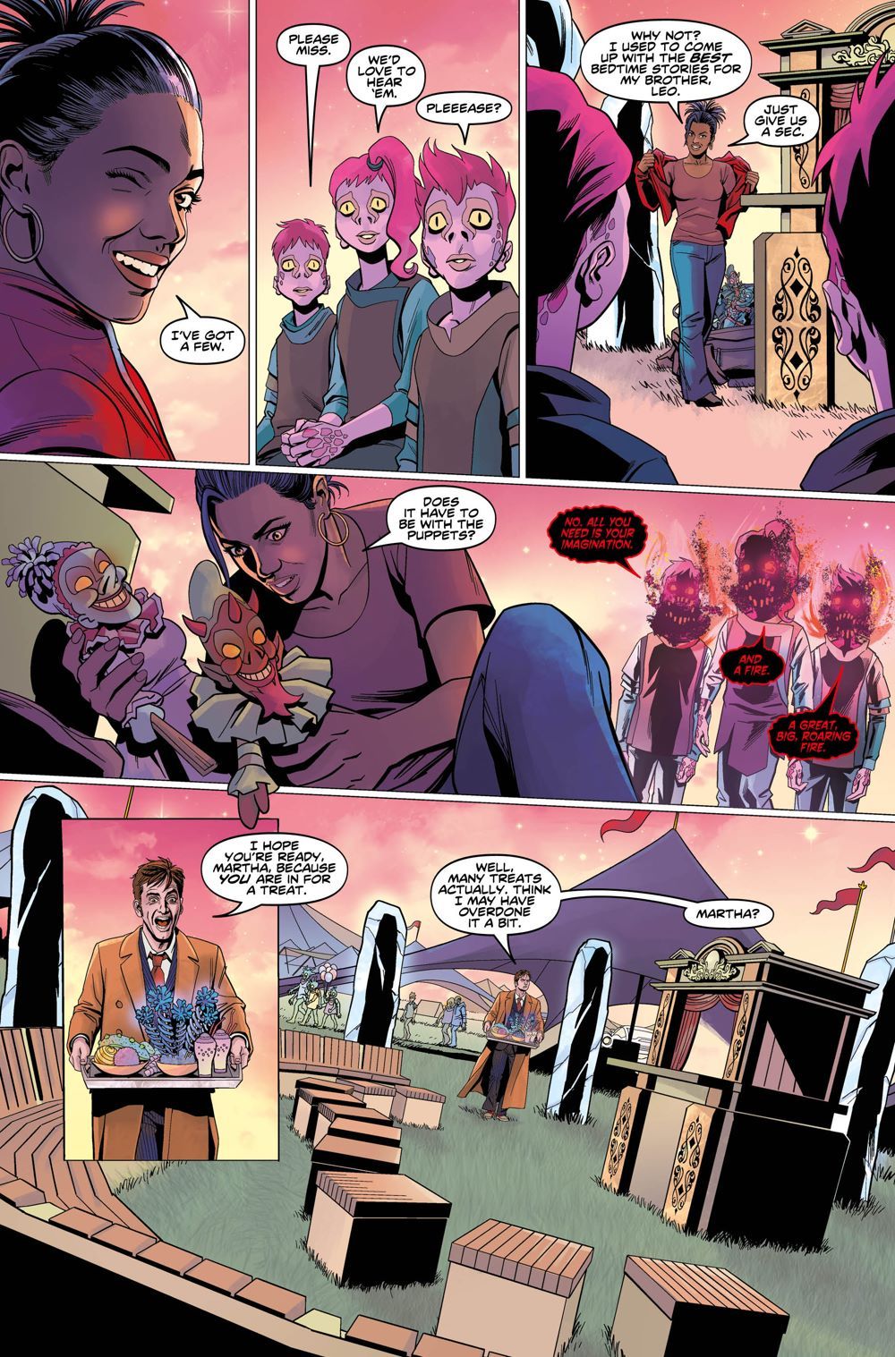 In order to survive the fiery Pyromeths, Martha Jones must spin three sensational yarns about the Tenth Doctor and his greatest adventures with old and new foes alike!