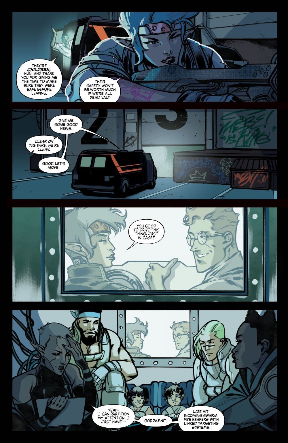 Morgan is now working with Creston and the radicalized Sowers to find answers about what experiments the twins endured, and for what reason. Meanwhile, the shock of powerful magic has left its mark on the twins. For Griffon, it's made clear there's something different about them, and he gains a sense of self and confidence he's never felt before. For Rana, it throws her whole identity off-axis, only worsened by the world being completely different than they knew.
