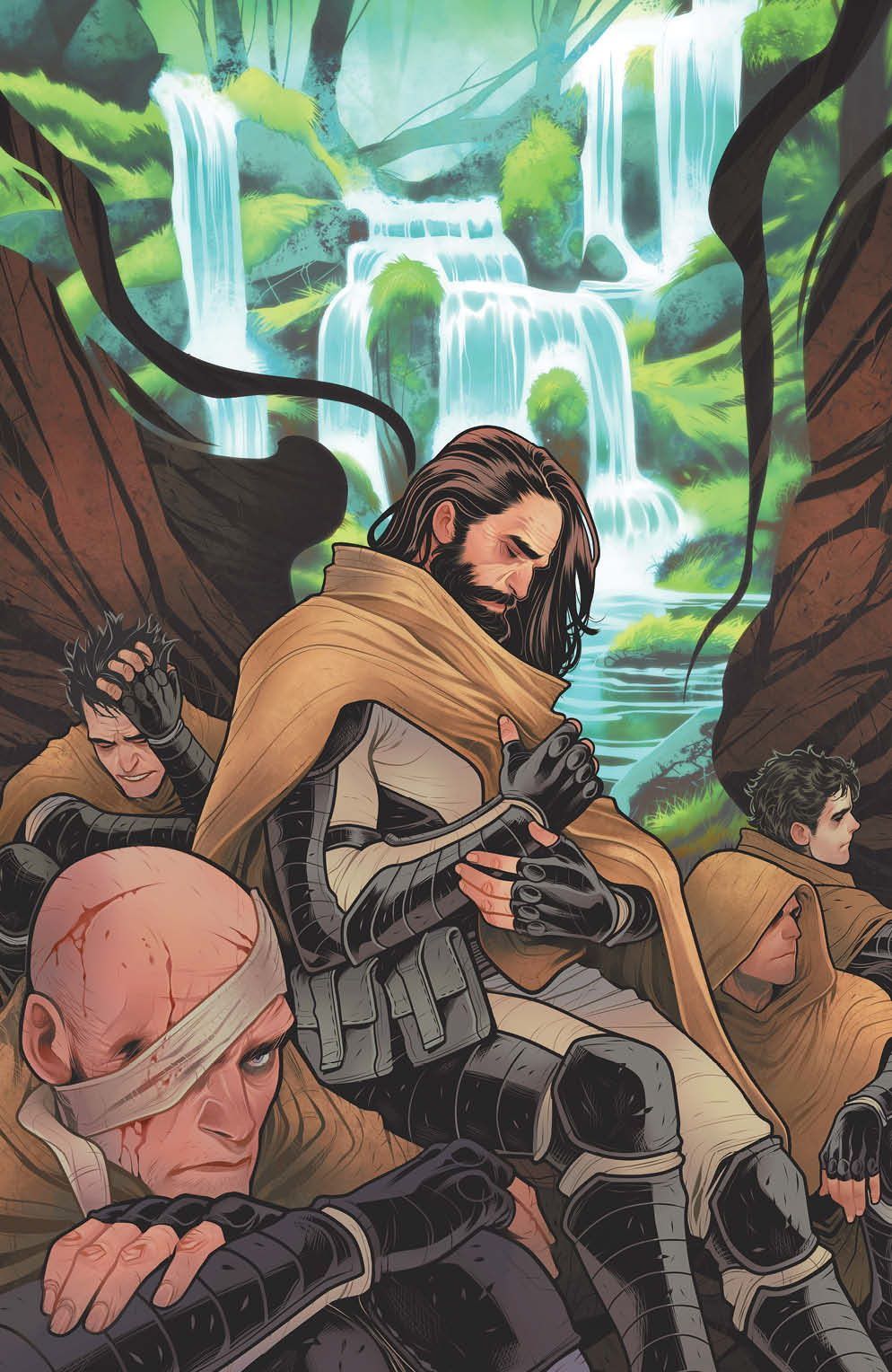 SPECIAL ISSUE. During the chaos of the legendary Battle of Arrakeen, a group of Atreides soldiers get caved in. So while Paul Atreides meets his destiny in battle, Sgt. Vitt uses his family's gift of storytelling as a Jongleur to transport his men from their tomb to their homeworld of Caladan. Can Vitt mentally transport them back to the lushness and vast oceans of Caladan and give them the gift of hope in the darkness?