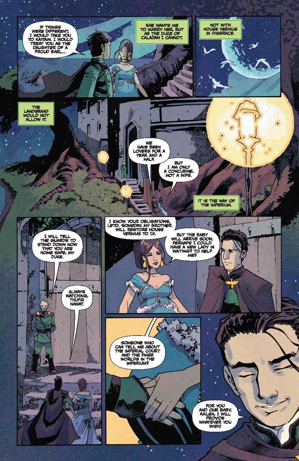Although Leto and Kailea's blossoming romance brings about the expectation of their first child, political complications put a strain on their thoughts, while a traitor looms in their midst. On Lankiveil, Glossu Rabban turns trophy hunting into what the Harkonnens are known for best–their brutality. And as the years pass, a shadow still follows Leto and Kailea, seeding further discontent, even as an exile from Ix comes seeking help, and maybe even liberation for the planet!