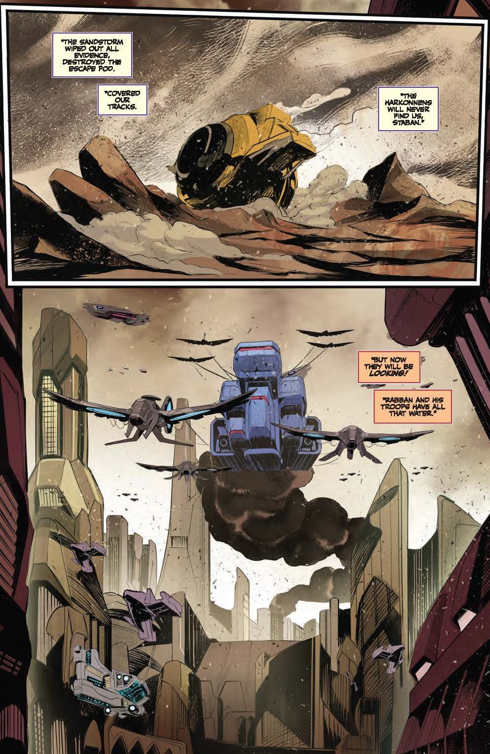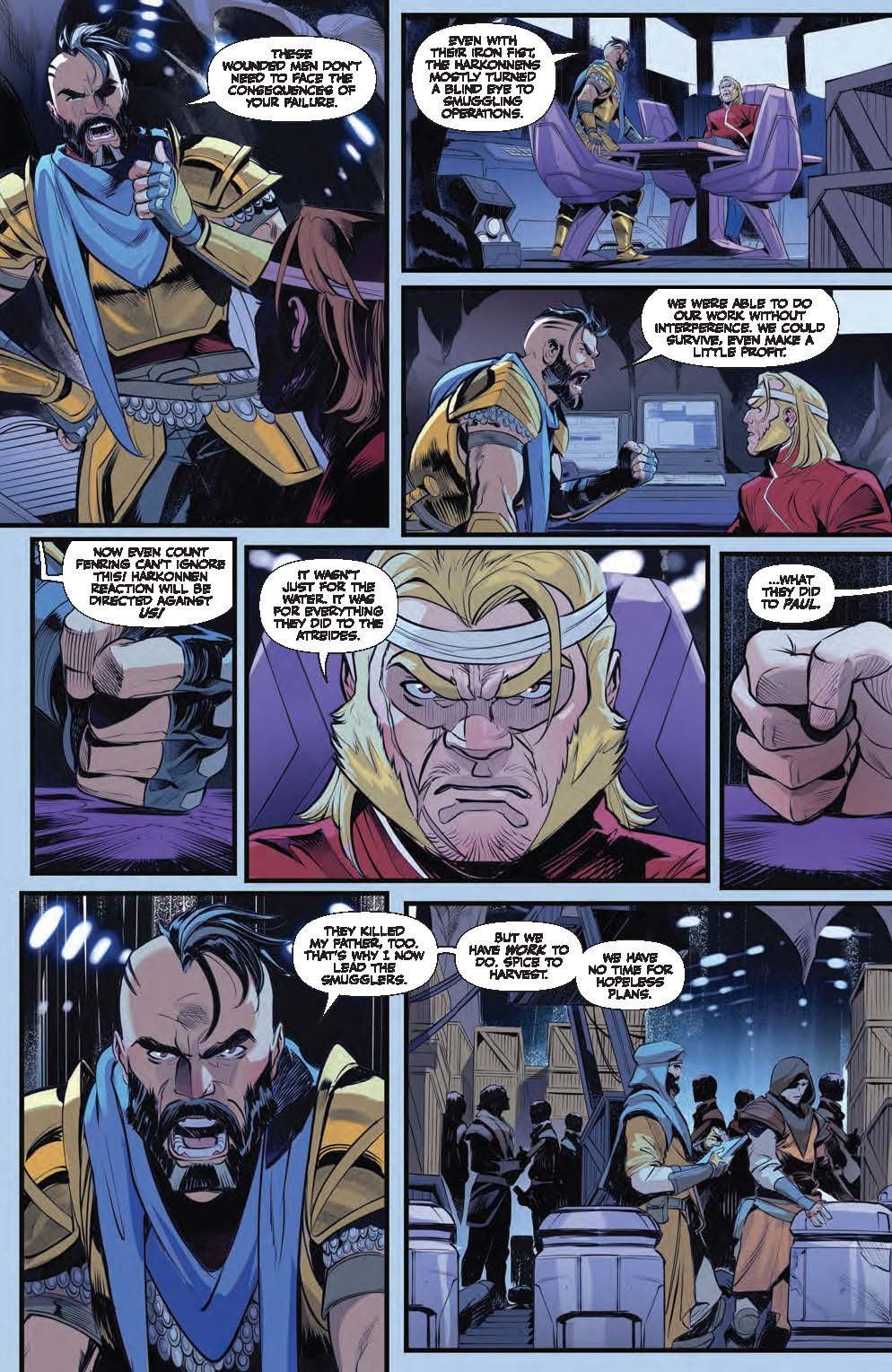 FINAL ISSUE. Gurney and the smugglers have eluded the Harkonnen forces and retreated to Arrakis, but they come back empty-handed and defeated. However, Gurney's secret plan is finally set in motion. Will he finally have his revenge against the Beast? Or will his sacrifices be for nothing?
