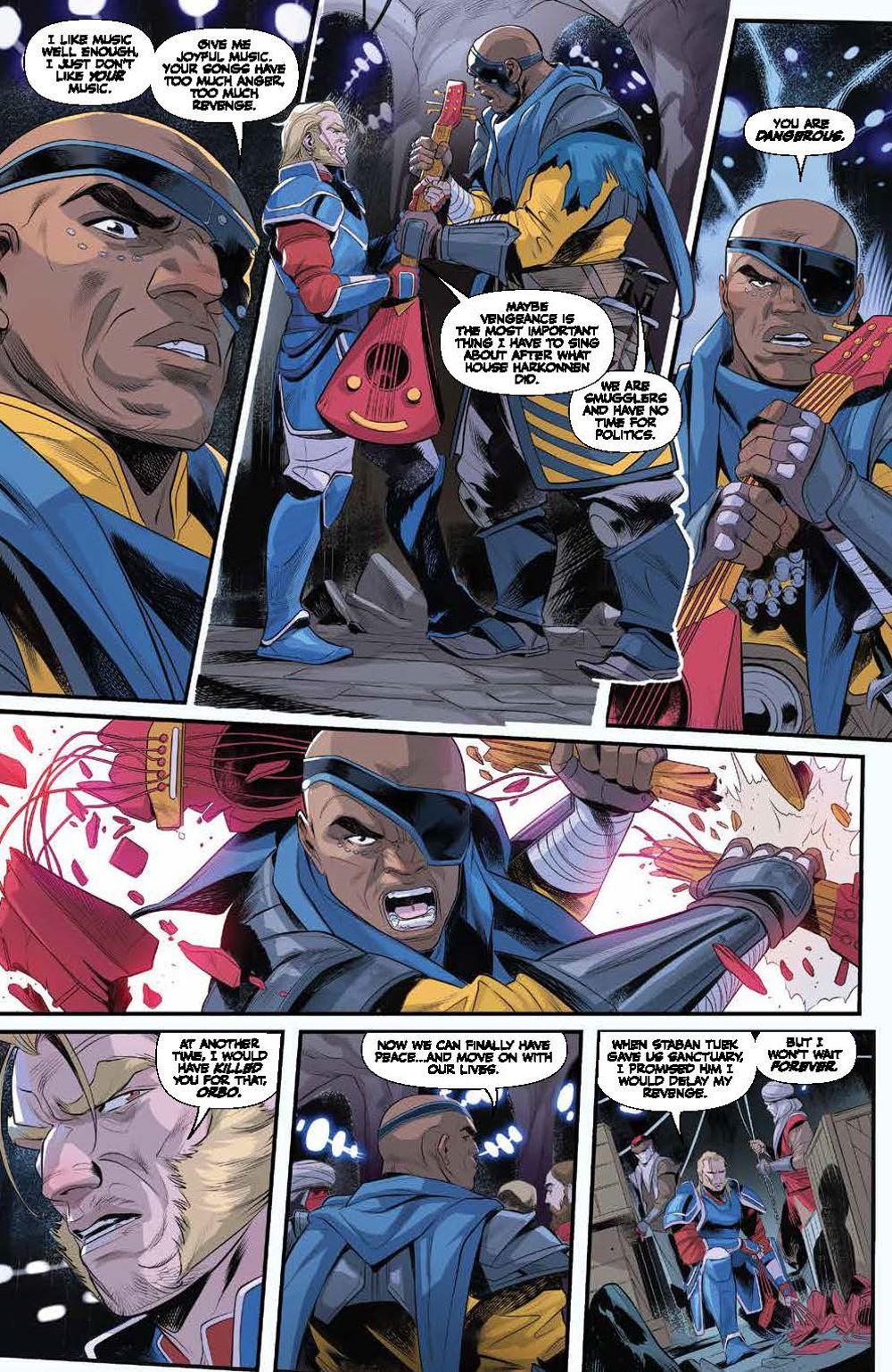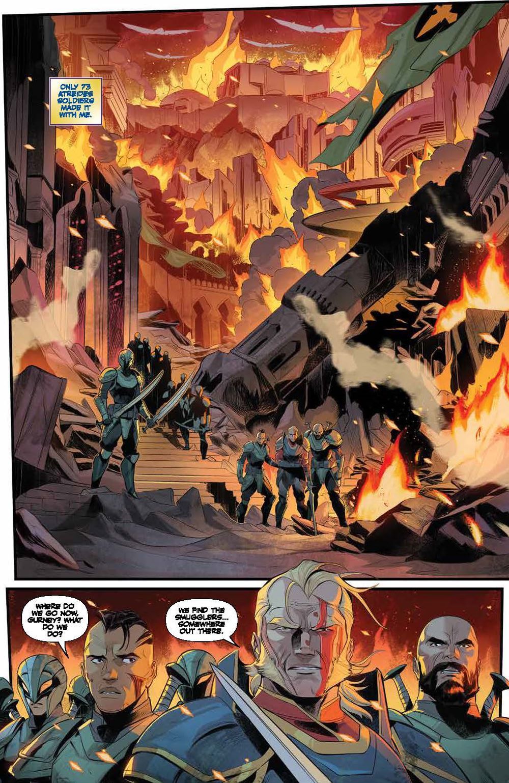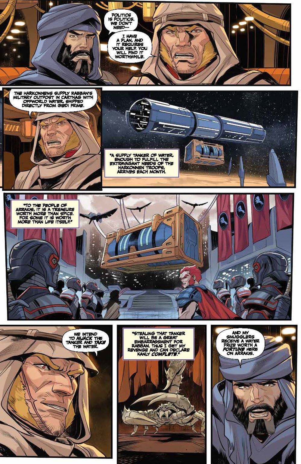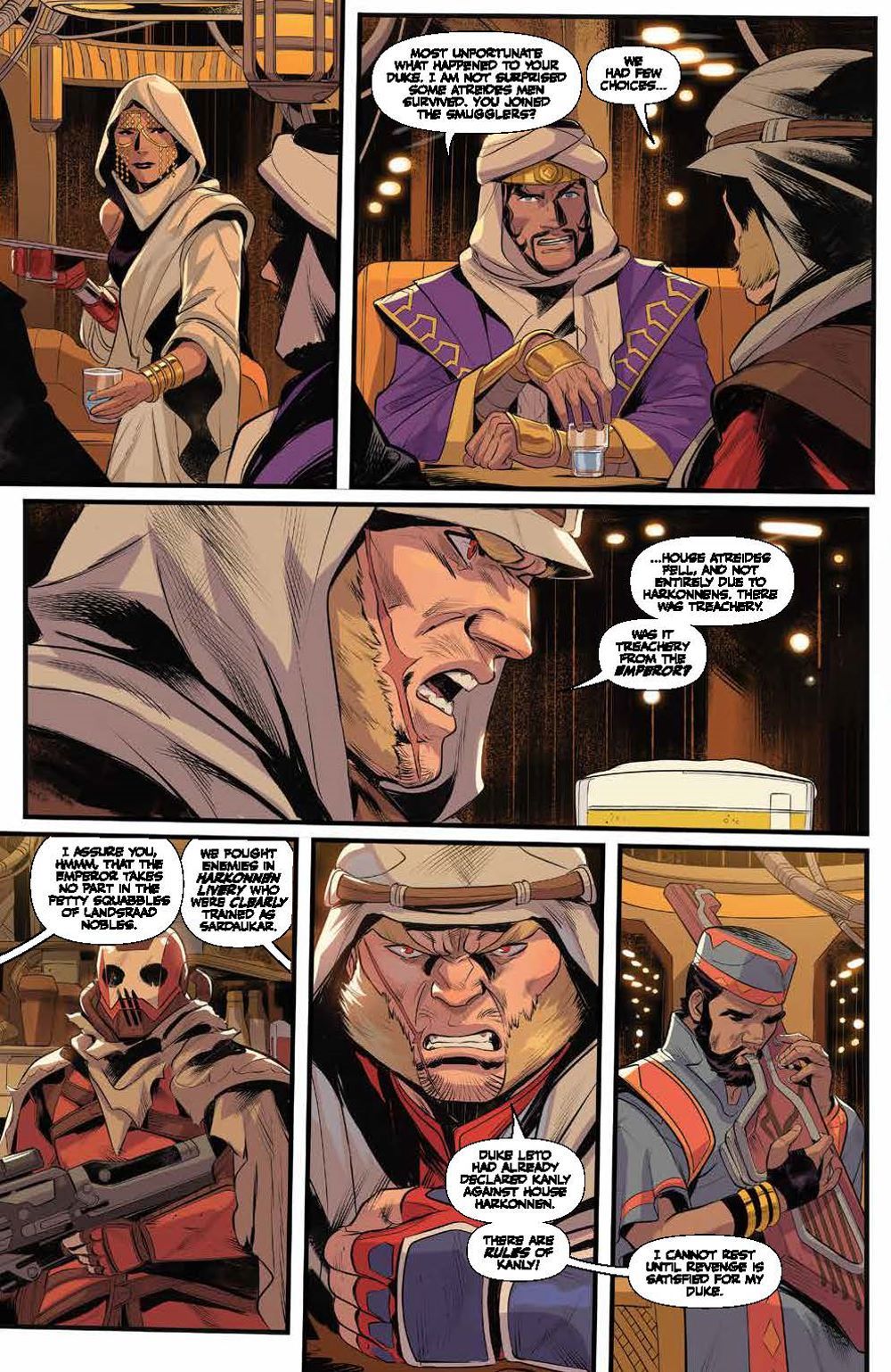 Following the Battle of Arrakeen, House Atreides warmaster Gurney Halleck takes refuge with spice smugglers, vowing revenge against the Harkonnens. His house may be shattered, but it will never be forgotten… To embark on his mission of vengeance, Gurney takes on not only House Harkonnen, but the Spacing Guild itself! There may soon be an opportunity to strike, but at what cost? Will he finally get revenge against the Beast Rabban? Or will they be met with certain death, their sacrifices all for nothing? Artist Francesco Mortarino (Power Rangers) brings the original short story adapted by authors Brian Herbert & Kevin J. Anderson to life in ways that will excite both fans of the novels and the recent hit film alike! Collects Dune: The Waters of Kanly #1-4.
