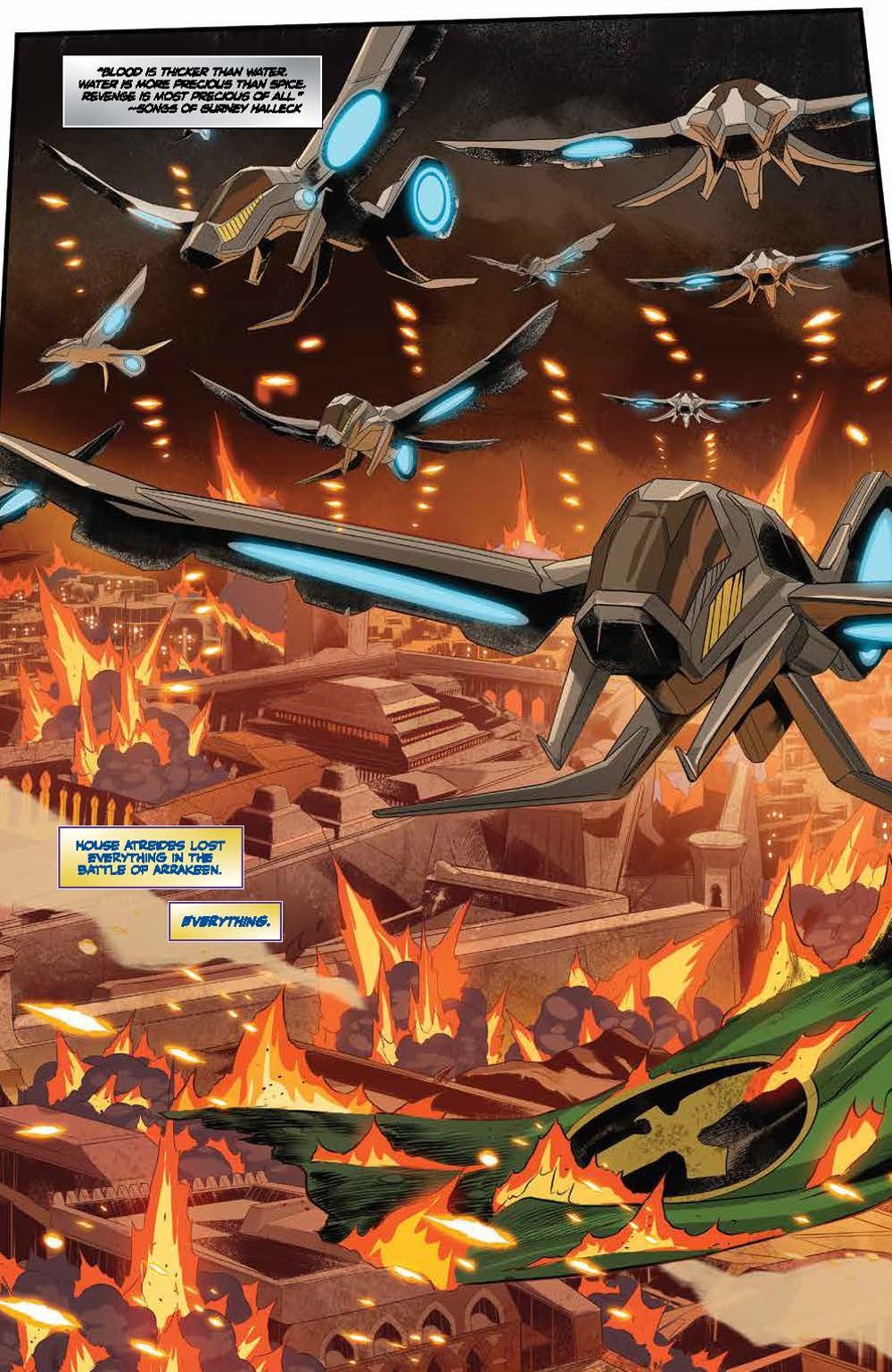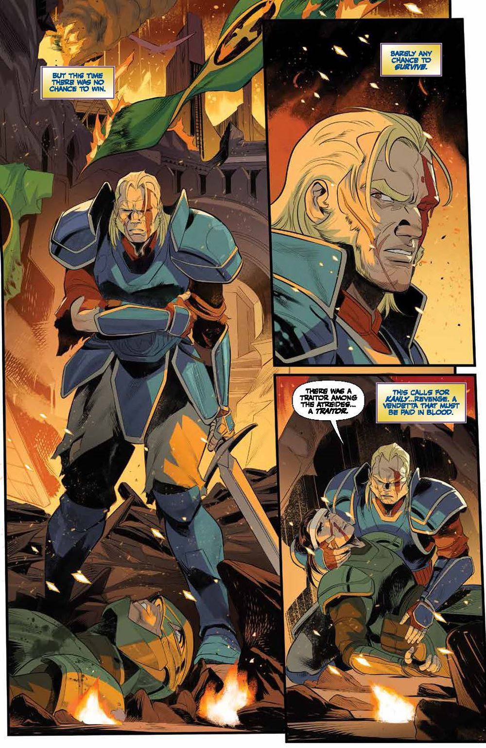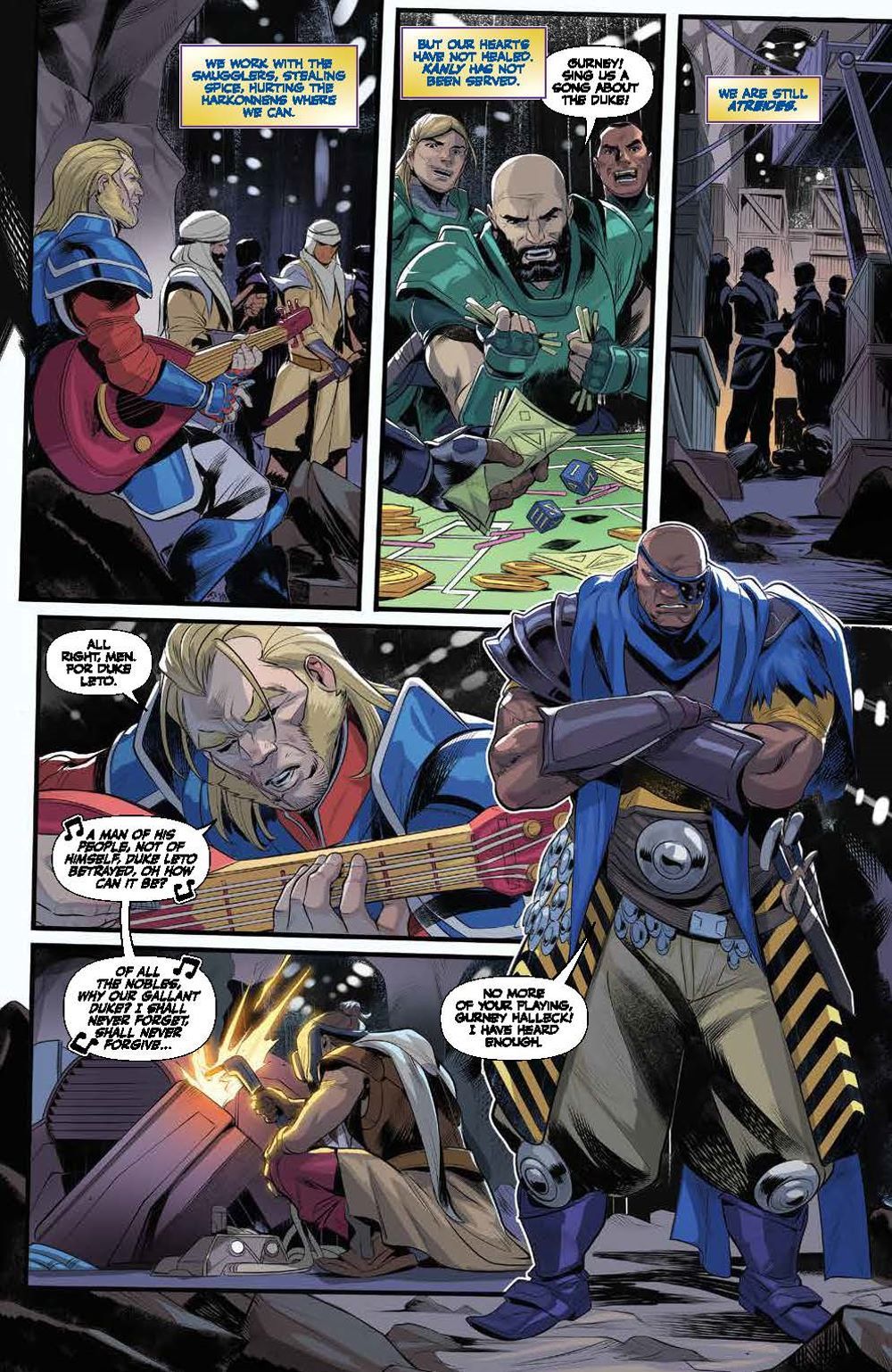 Following the Battle of Arrakeen, House Atreides warmaster Gurney Halleck takes refuge with spice smugglers, vowing revenge against the Harkonnens. His house may be shattered, but it will never be forgotten… To embark on his mission of vengeance, Gurney takes on not only House Harkonnen, but the Spacing Guild itself! There may soon be an opportunity to strike, but at what cost? Will he finally get revenge against the Beast Rabban? Or will they be met with certain death, their sacrifices all for nothing? Artist Francesco Mortarino (Power Rangers) brings the original short story adapted by authors Brian Herbert & Kevin J. Anderson to life in ways that will excite both fans of the novels and the recent hit film alike! Collects Dune: The Waters of Kanly #1-4.