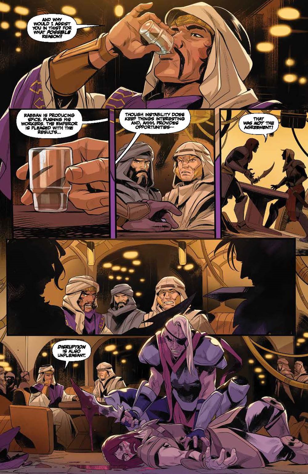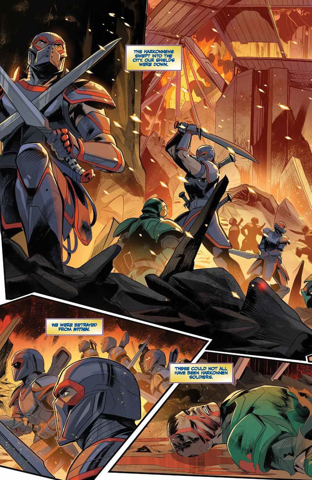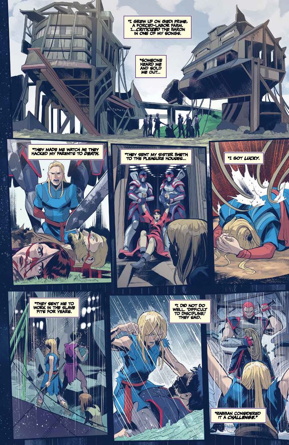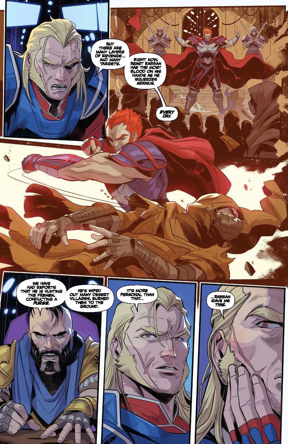 Following the Battle of Arrakeen, House Atreides warmaster Gurney Halleck takes refuge with spice smugglers, vowing revenge against the Harkonnens. His house may be shattered, but it will never be forgotten… To embark on his mission of vengeance, Gurney takes on not only House Harkonnen, but the Spacing Guild itself! There may soon be an opportunity to strike, but at what cost? Will he finally get revenge against the Beast Rabban? Or will they be met with certain death, their sacrifices all for nothing? Artist Francesco Mortarino (Power Rangers) brings the original short story adapted by authors Brian Herbert & Kevin J. Anderson to life in ways that will excite both fans of the novels and the recent hit film alike! Collects Dune: The Waters of Kanly #1-4.